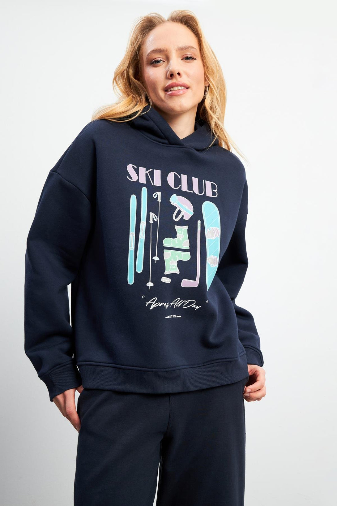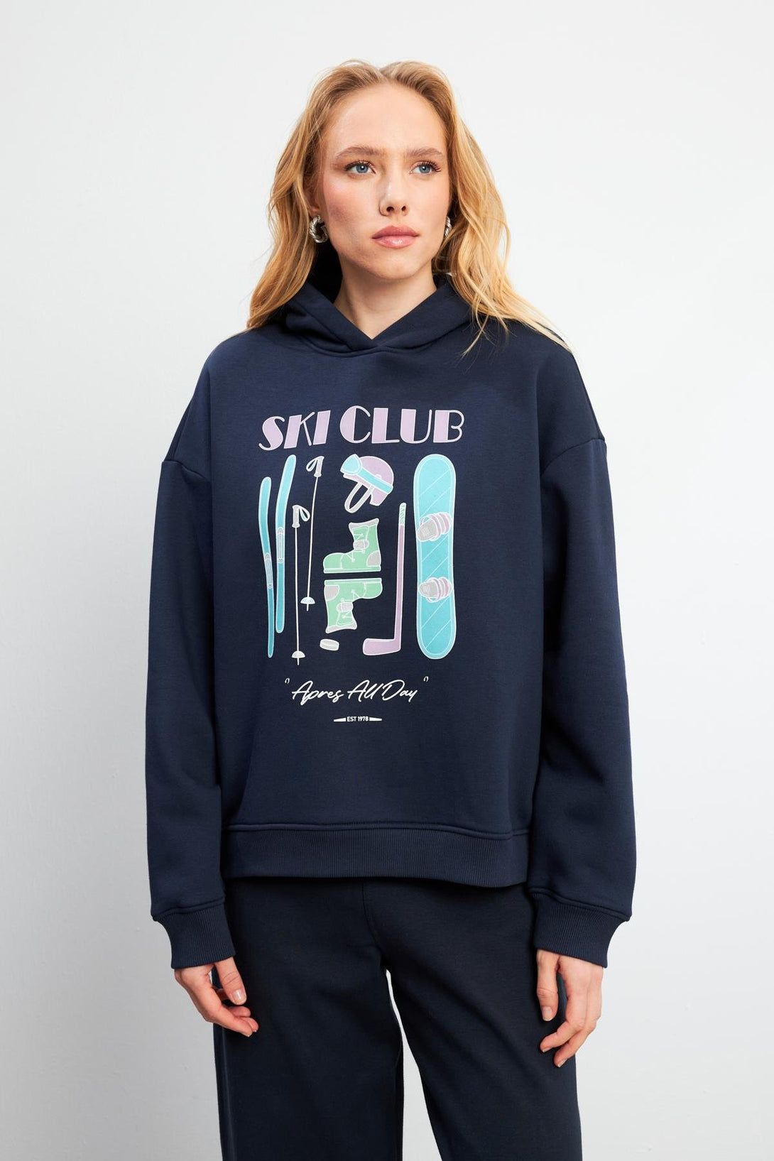 Kadın Club Lacivert Baskılı Sweatshirt