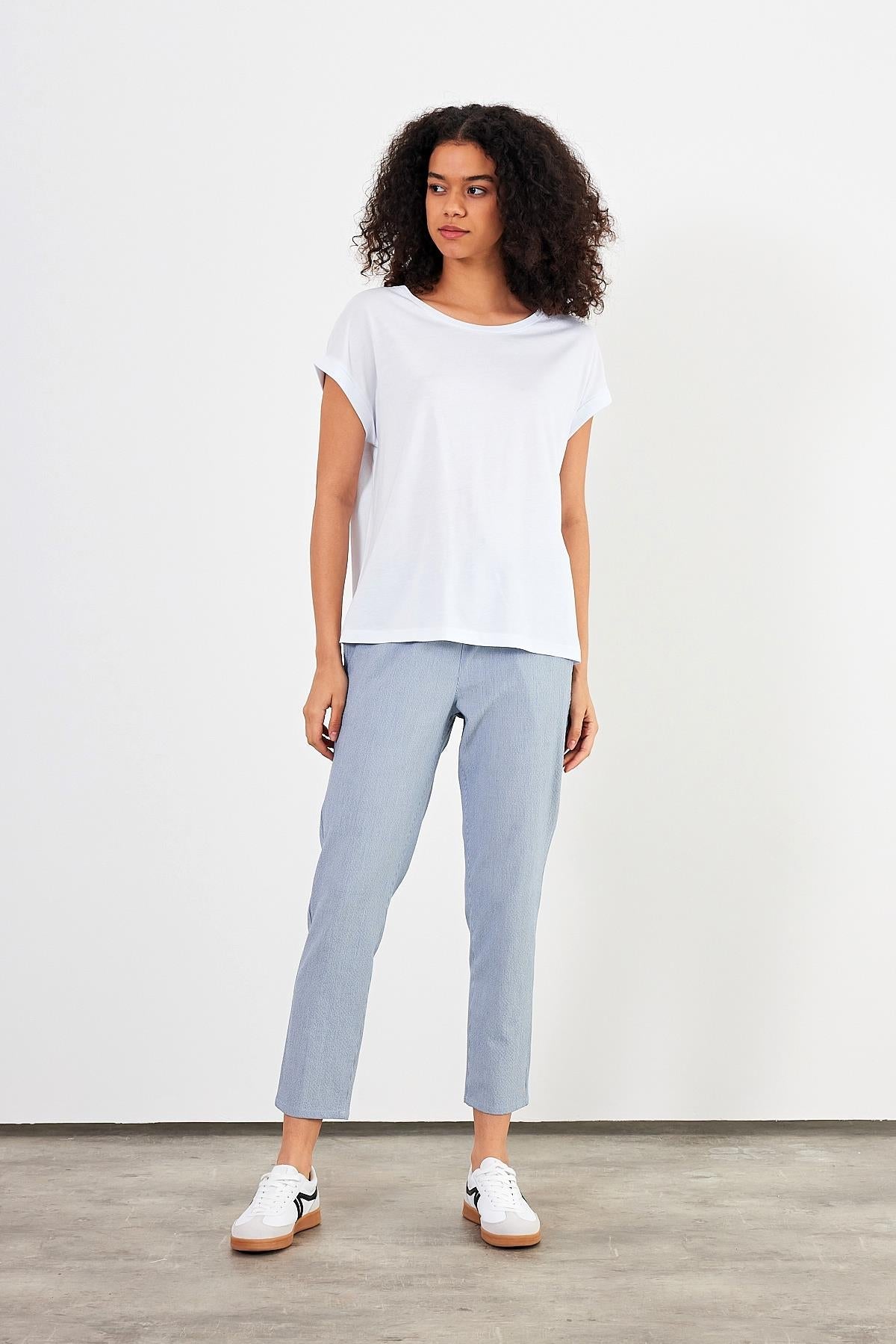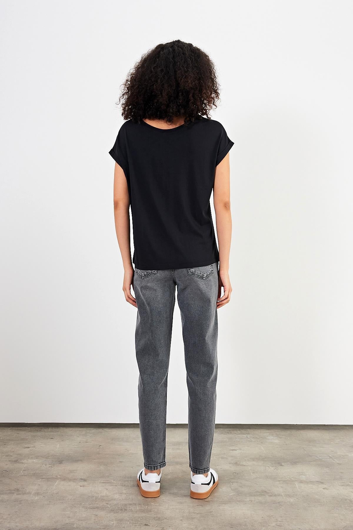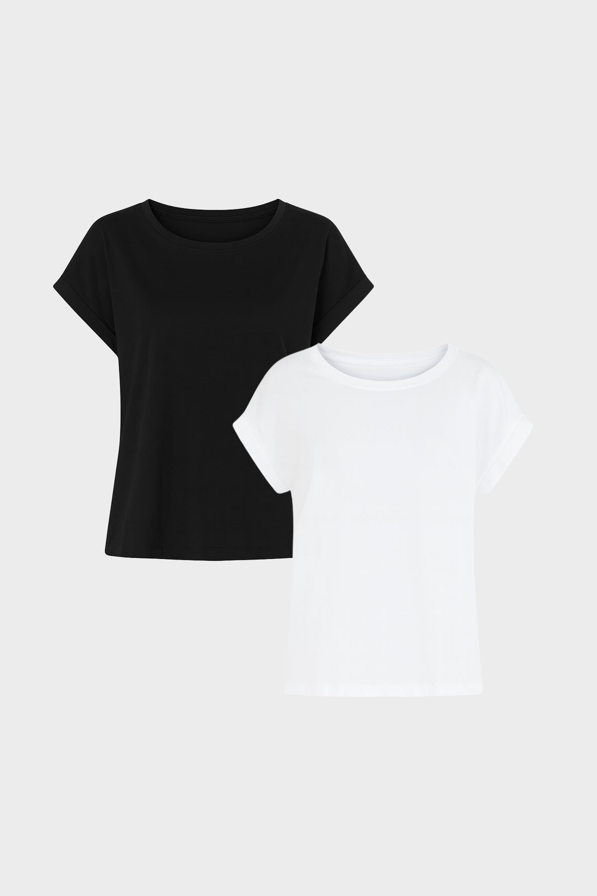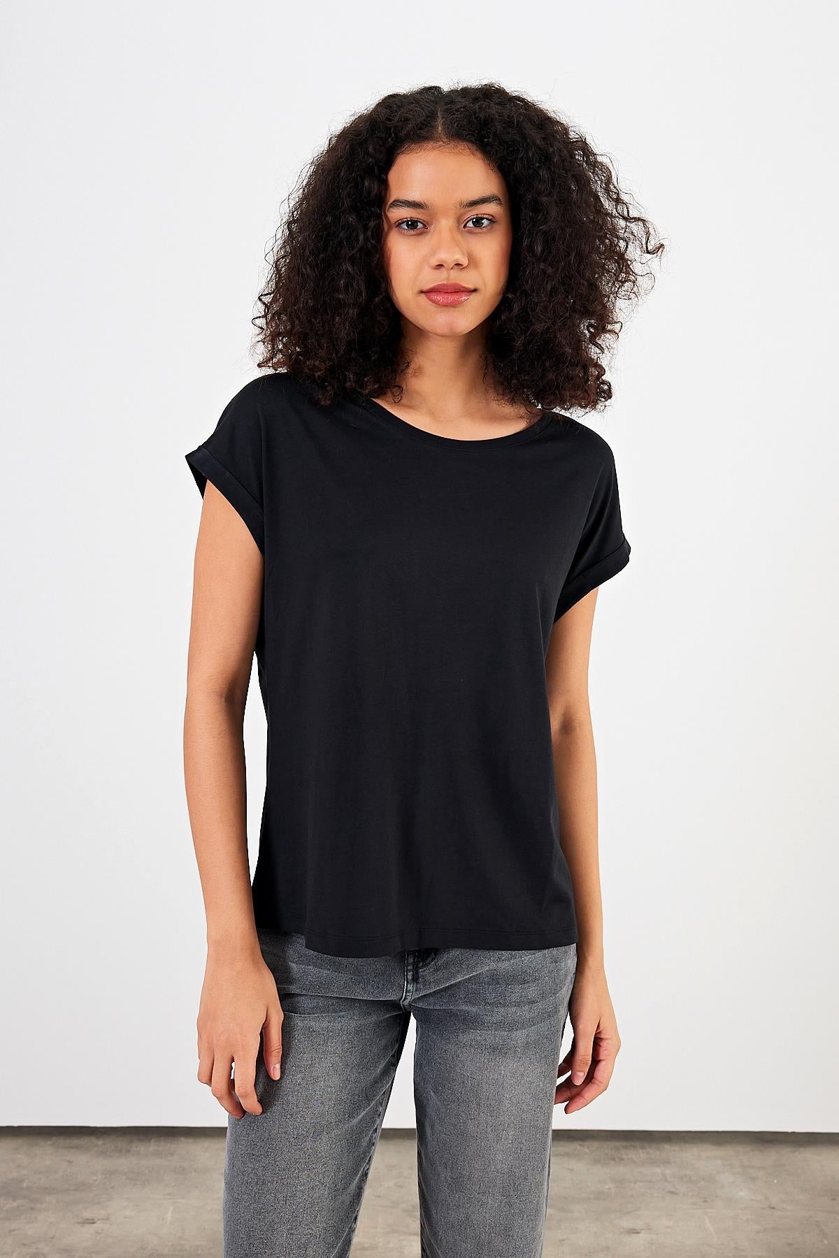 2li Siyah Beyaz Kadın Cindy Bisiklet Yaka Regular Fit Basic Modal Tişört (TENCEL)™