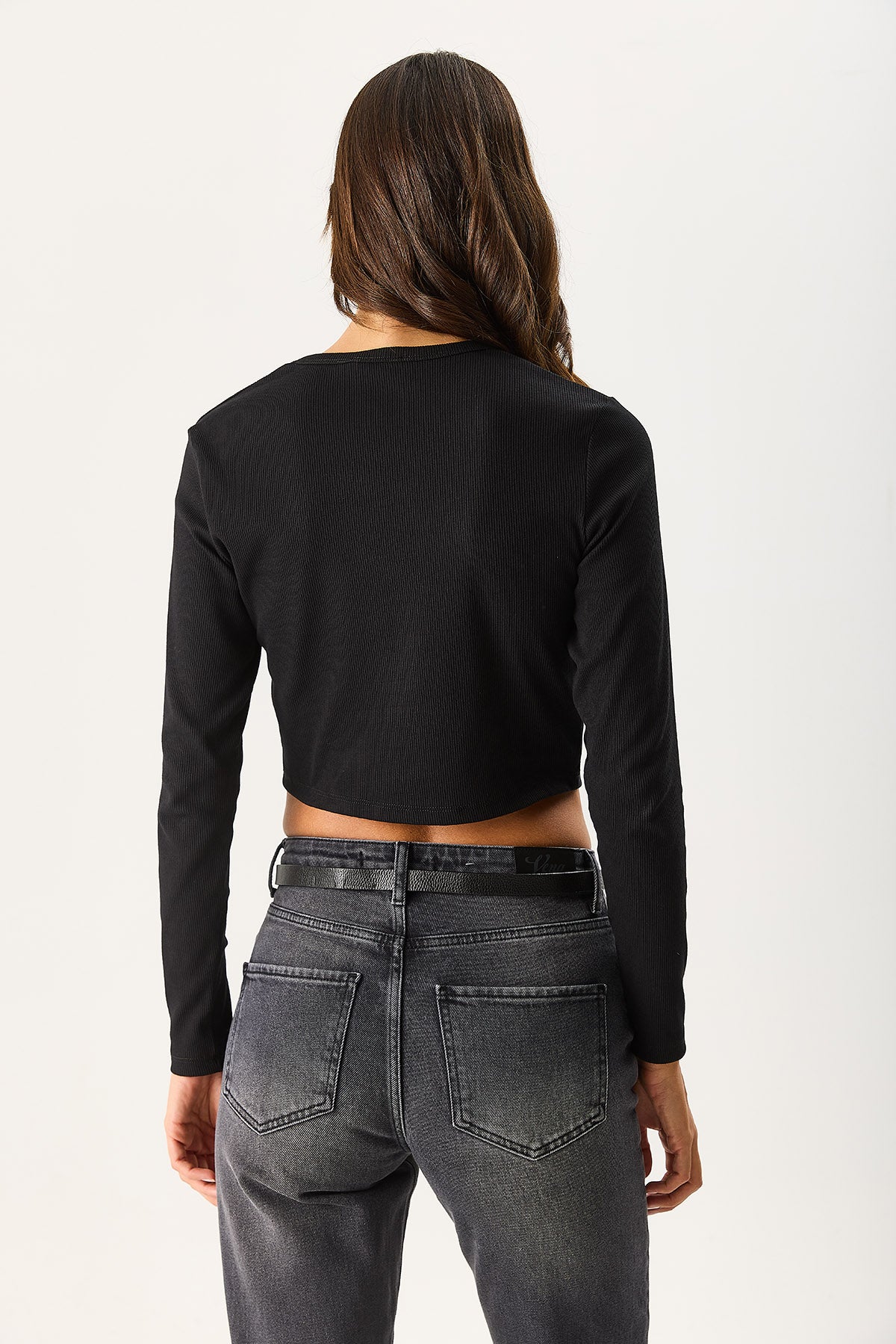 Kadın Maria Uzun Kollu Crop Tişört - Siyah (Beden) XS