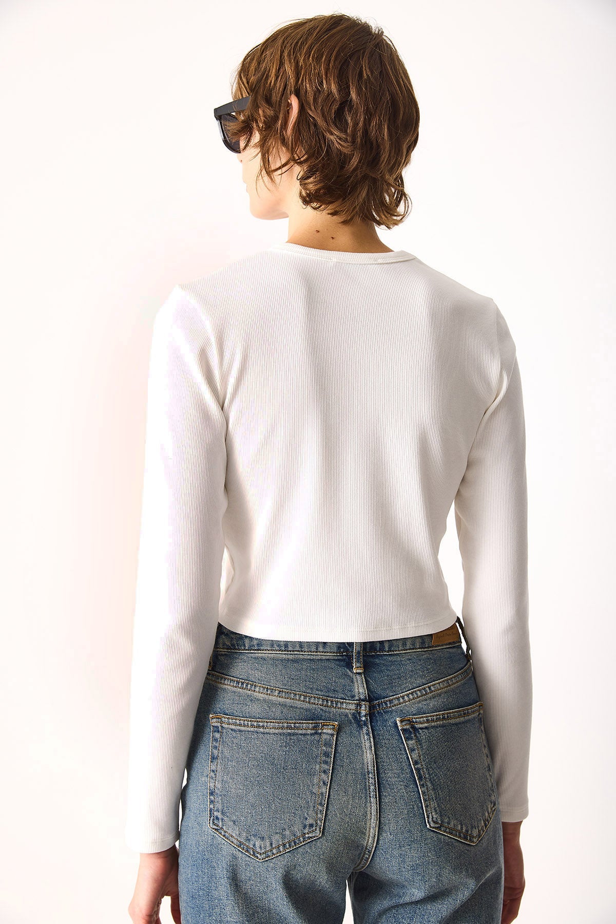 Kadın Maria Uzun Kollu Crop Tişört - Fildişi (Beden) XS
