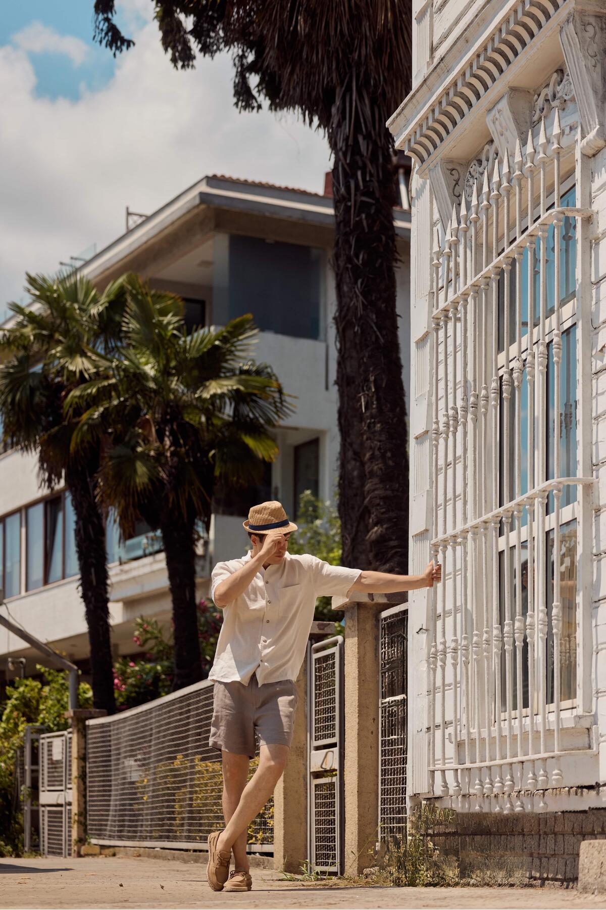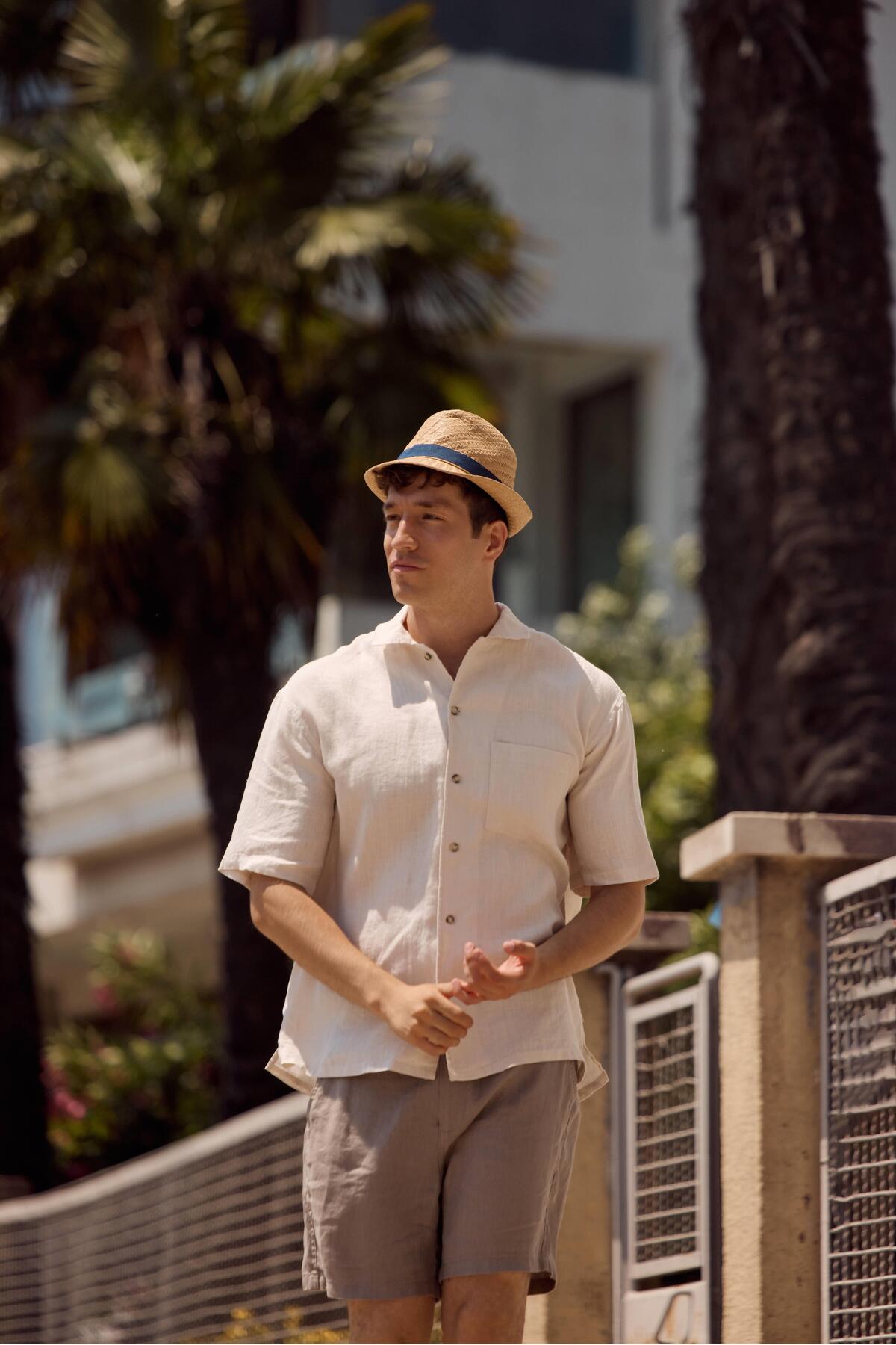 Erkek Alex Beli Lastikli Şort %100 Keten - Haki