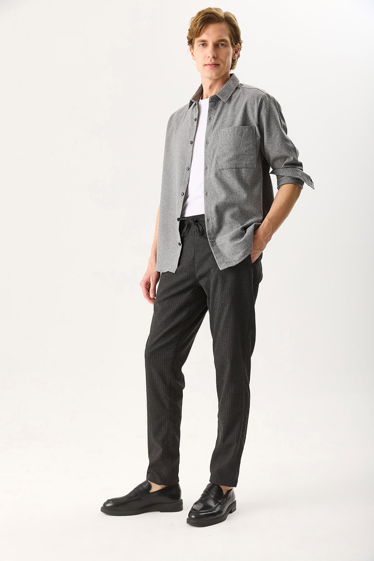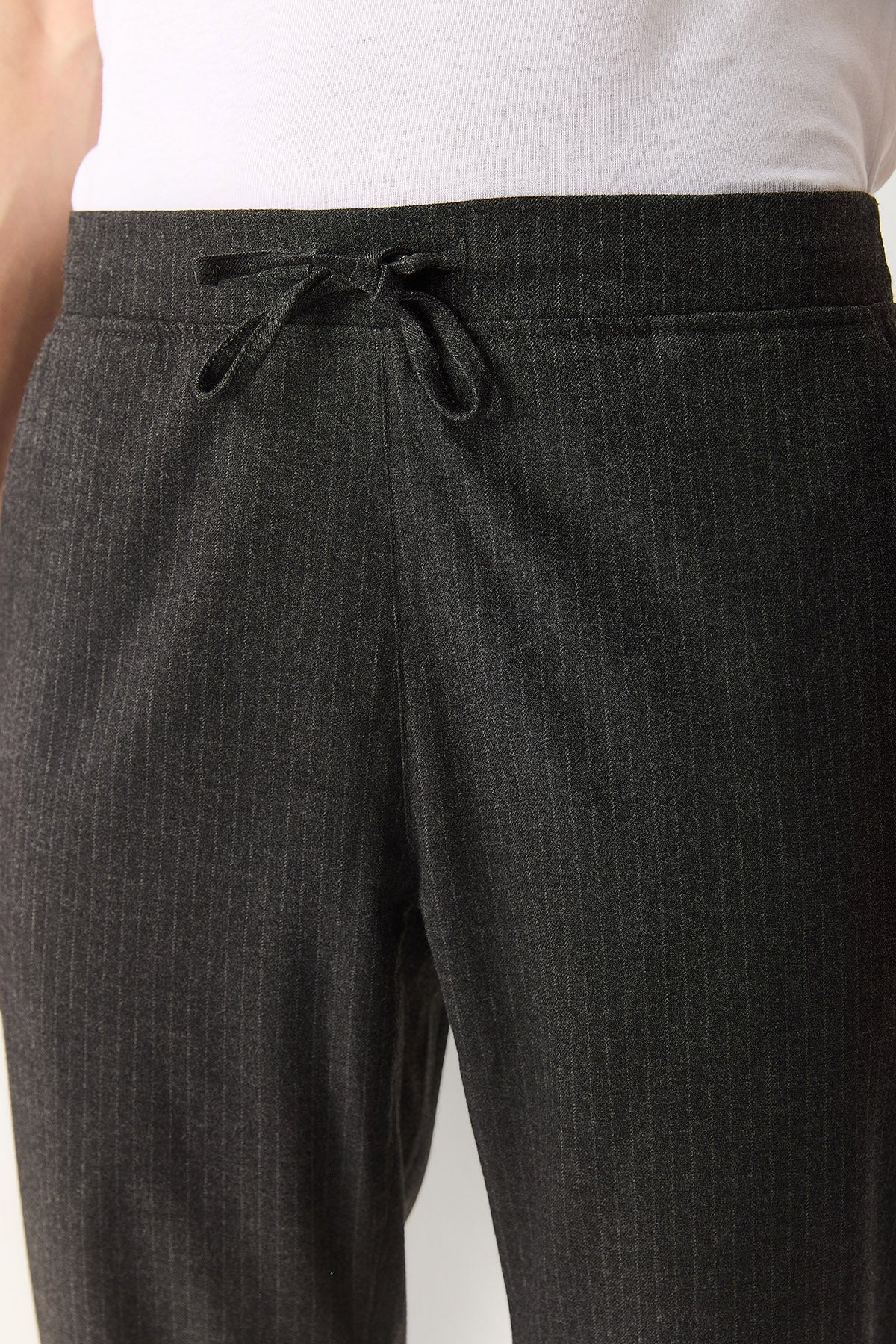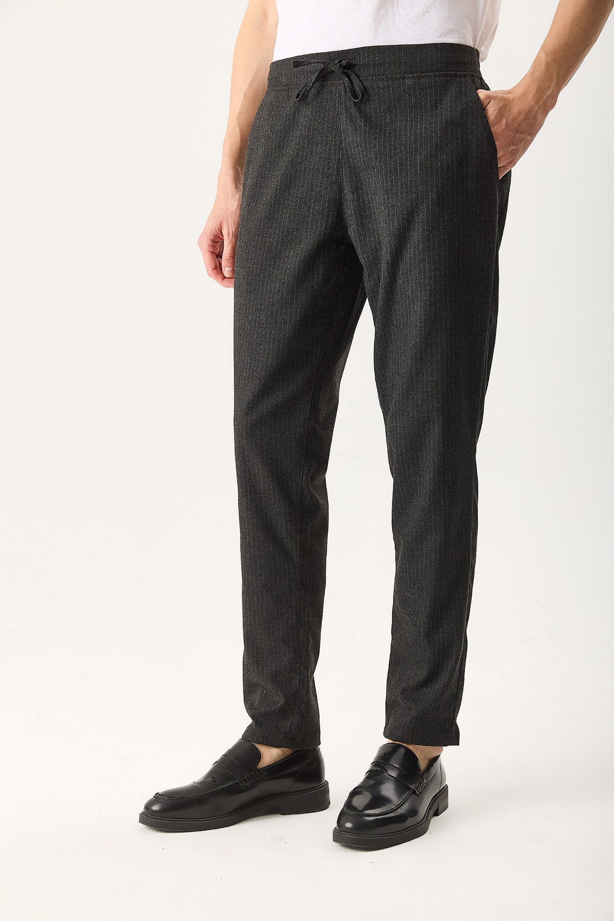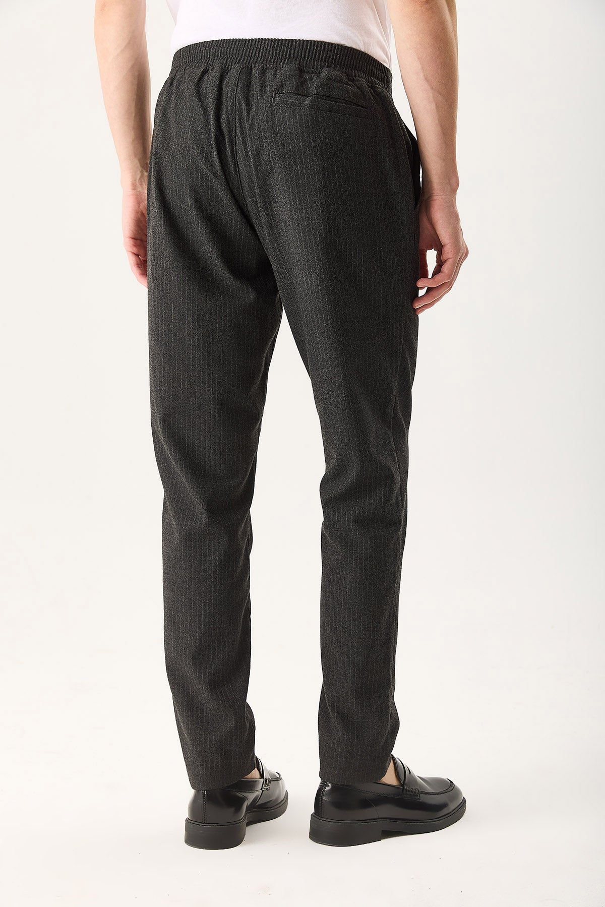 Erkek Alfred Beli Lastikli Çizgili Kaşe Pantolon - Gri Çizgili