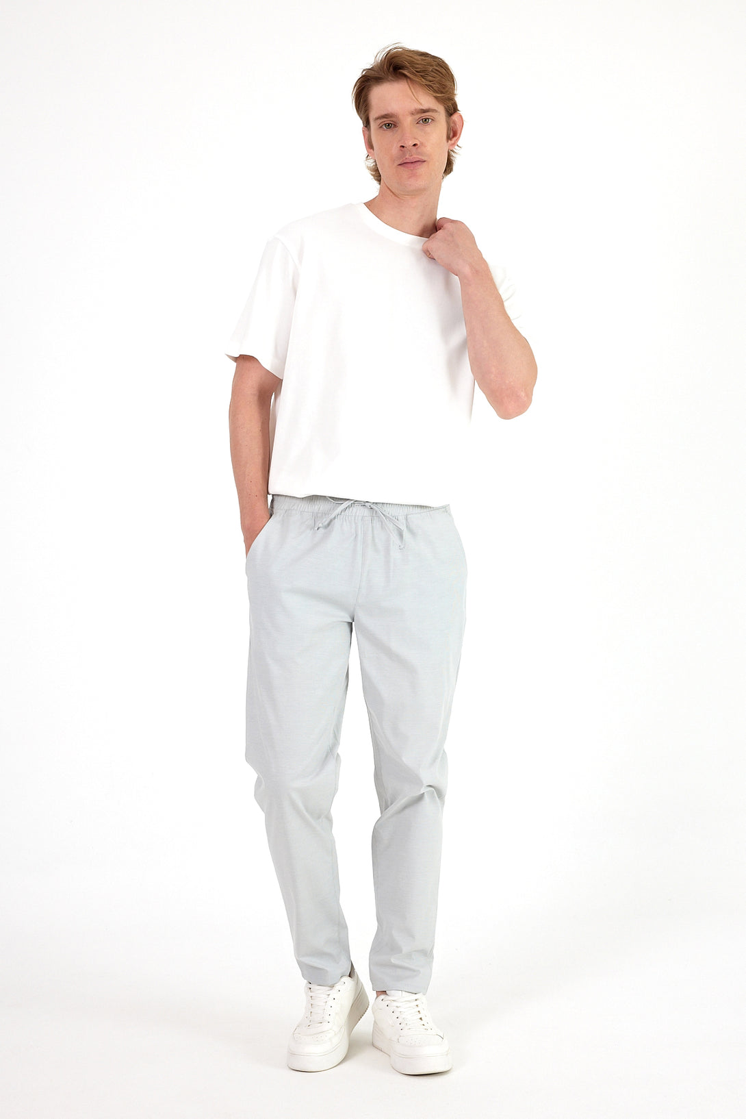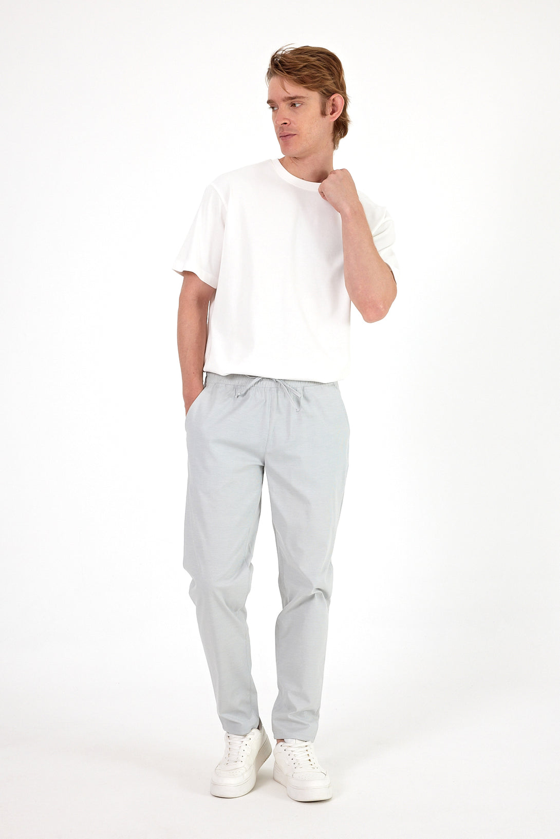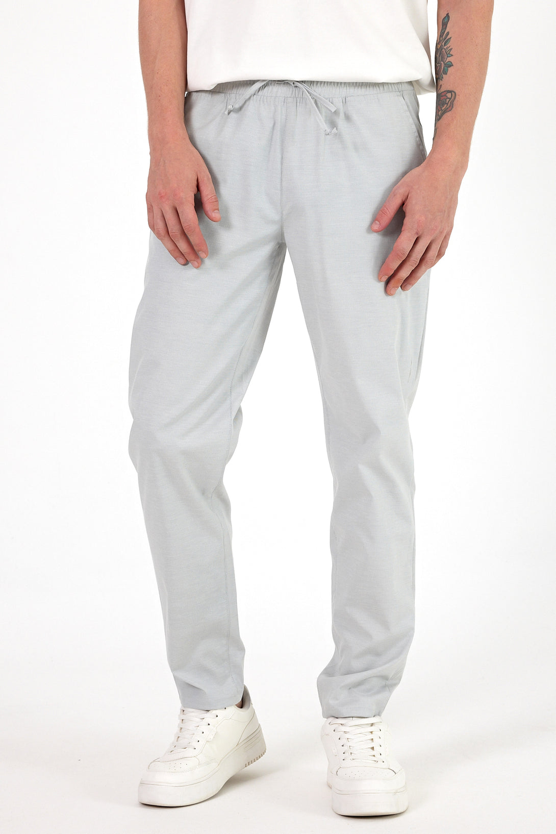 Alfred Beli Lastikli Çizgili Summer Gabardin Pantolon - BUZ GRİ