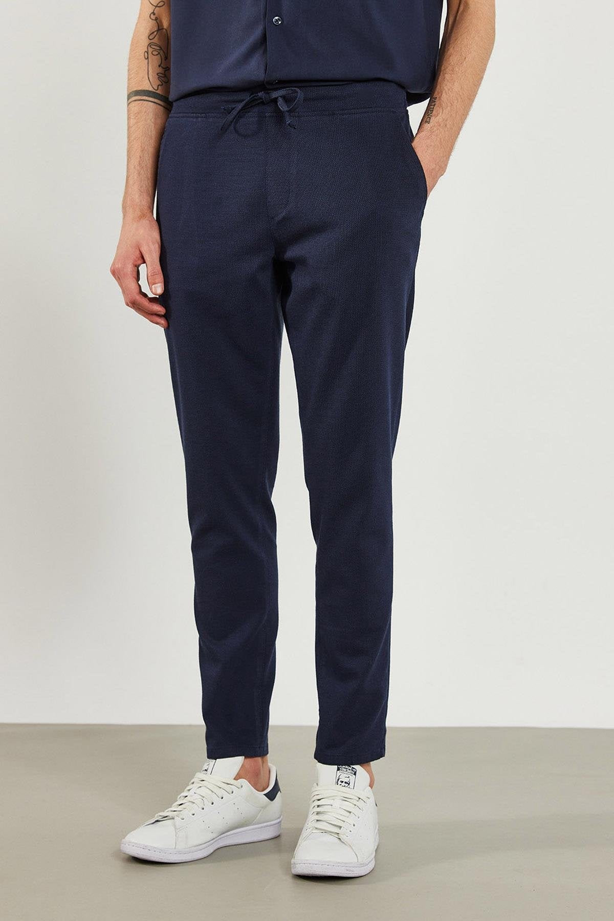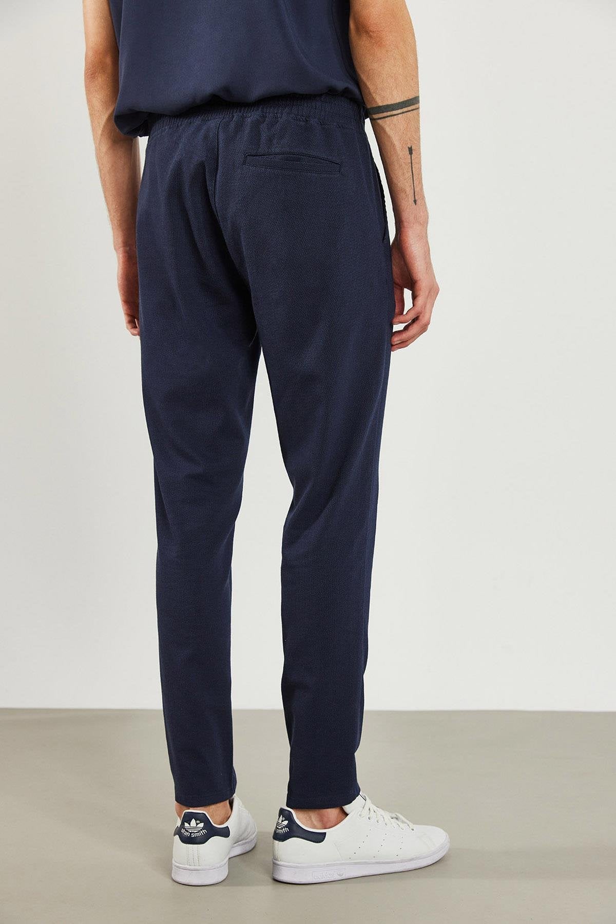 Erkek Alfred Beli Lastikli Dokulu Pantolon - Lacivert