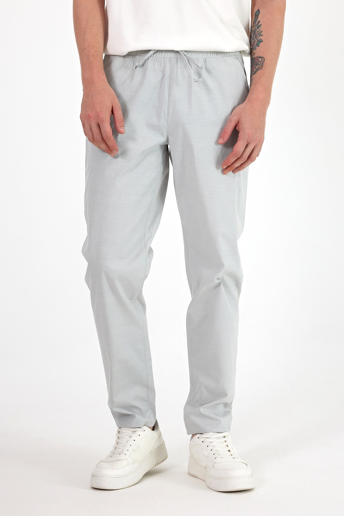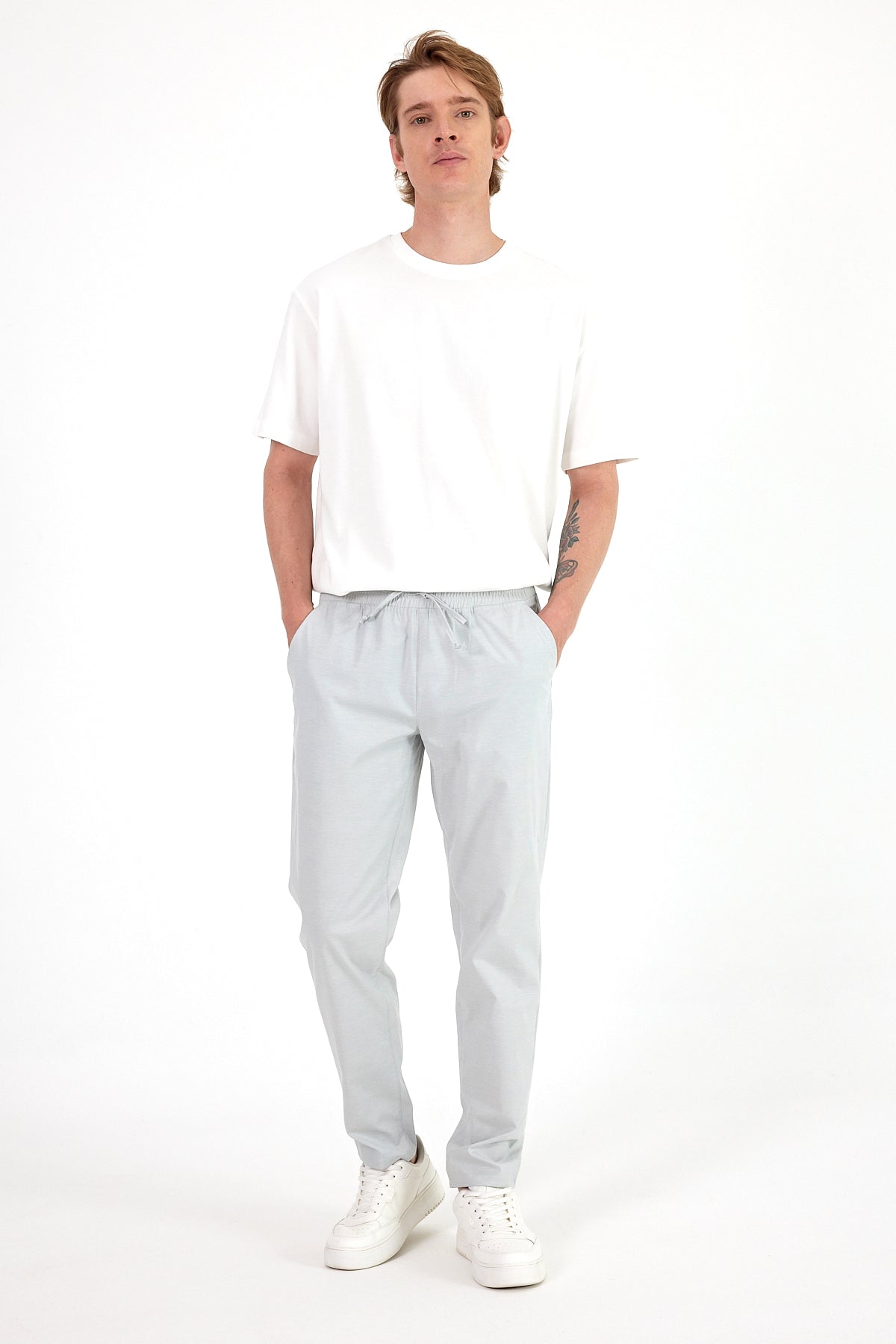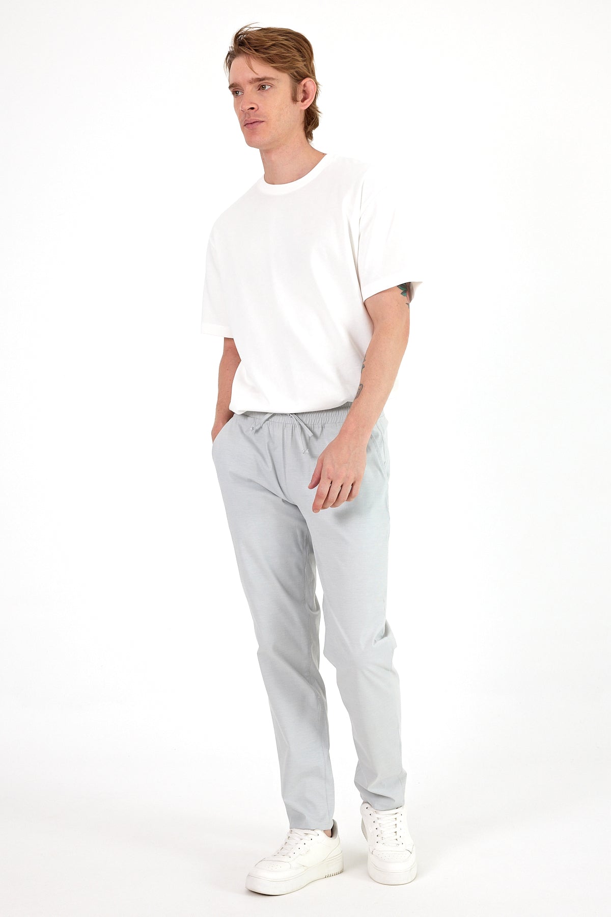 Erkek Alfred Beli Lastikli Gabardin Pantolon - Buz Gri