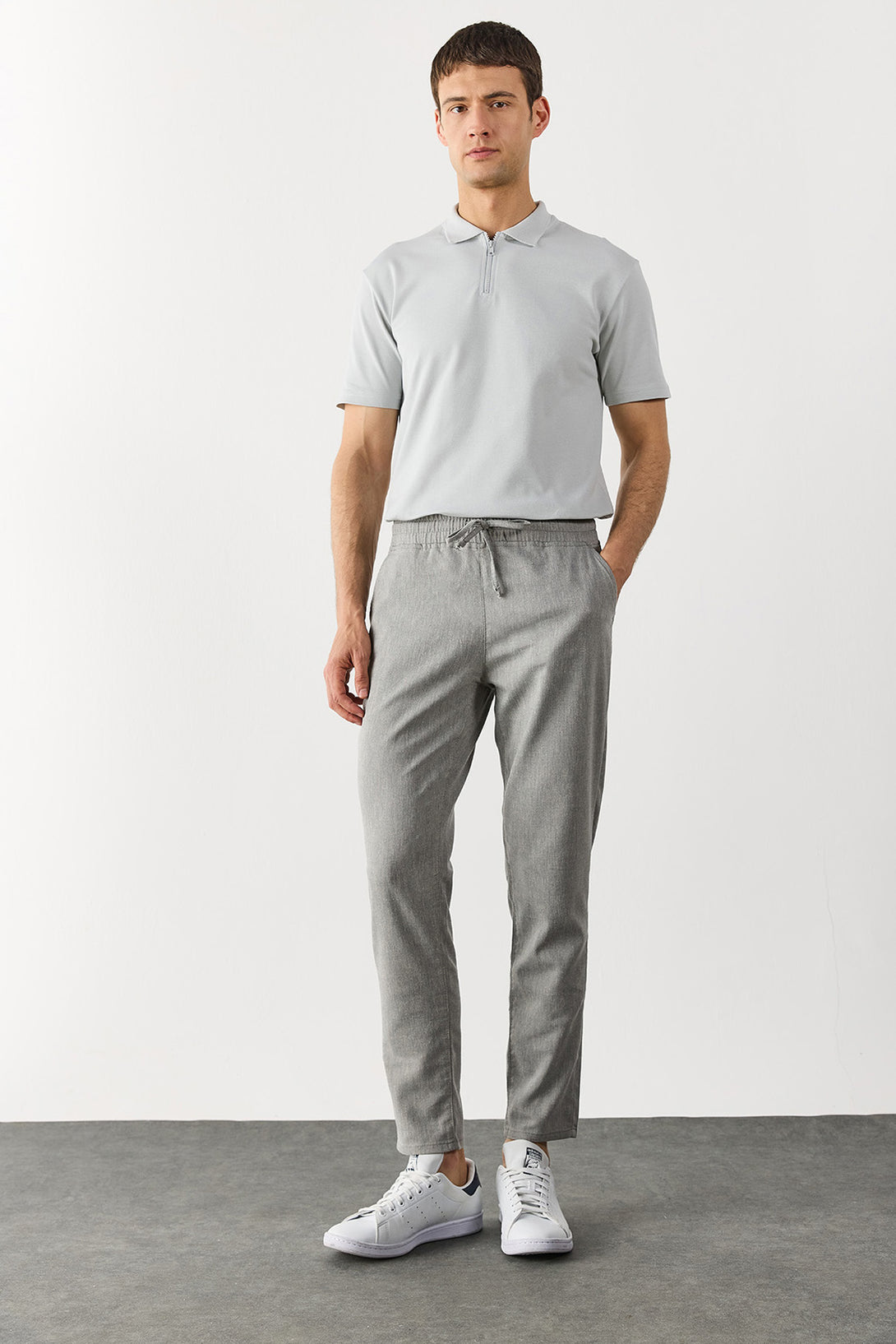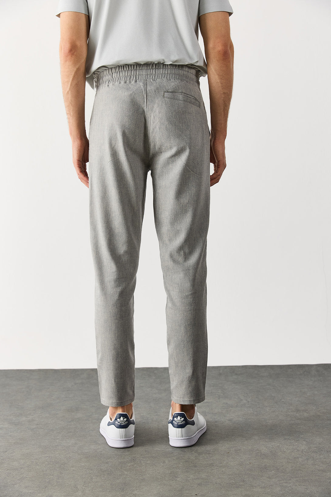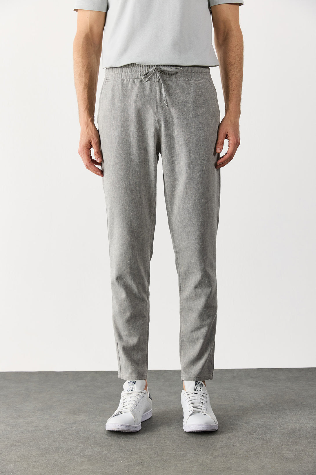 Erkek Alfred Beli Lastikli Pamuk Keten Pantolon - Gri
