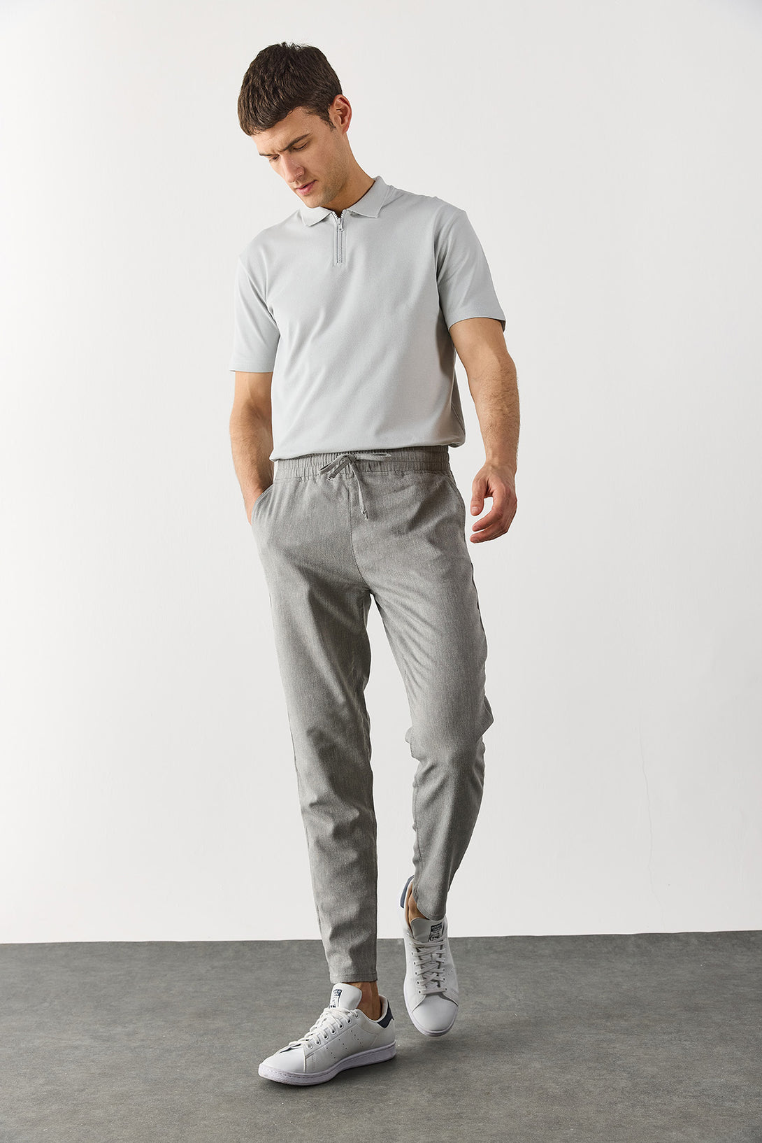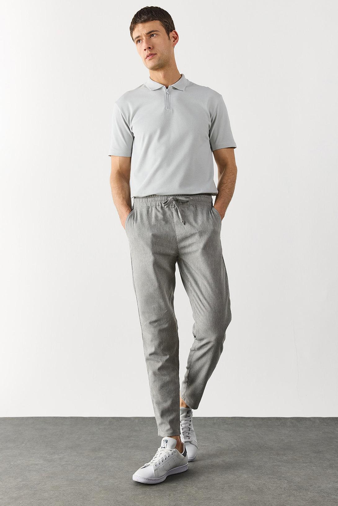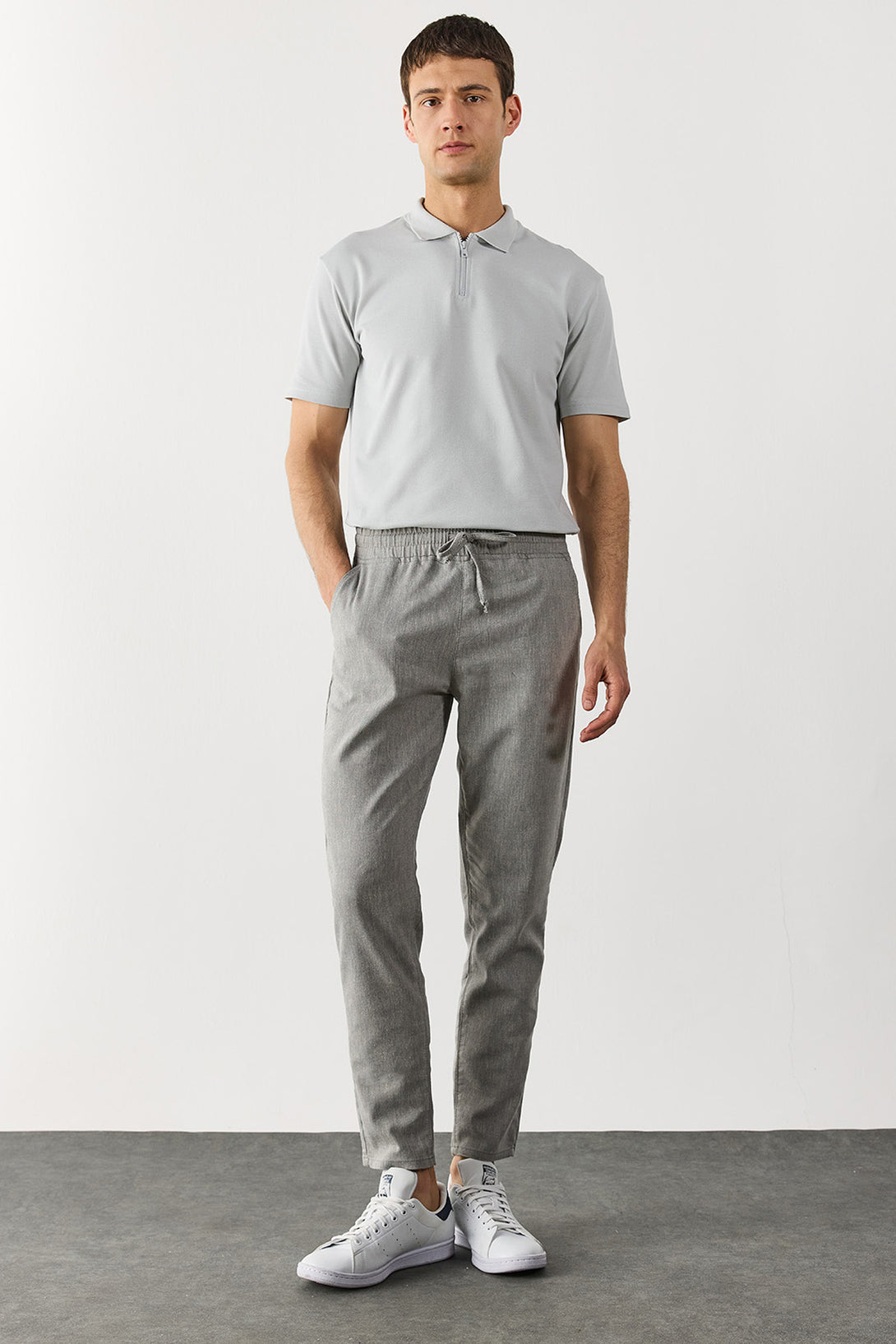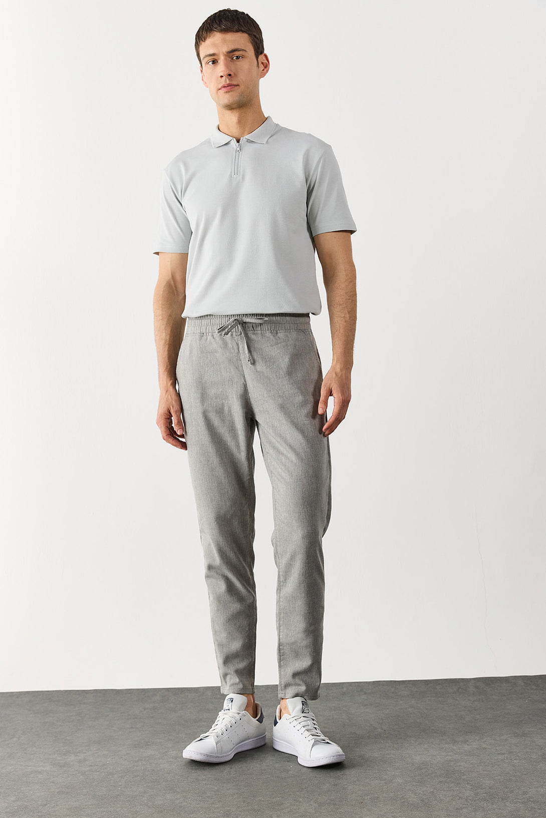 Erkek Alfred Beli Lastikli Pamuk Keten Pantolon - Gri