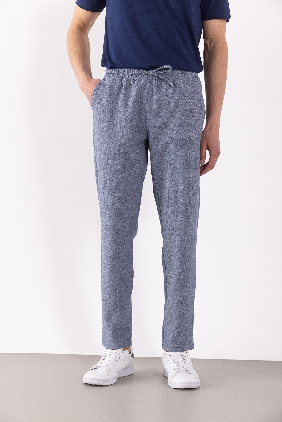 Erkek Alfred Beli Lastikli Pötikare Gofre Pantolon - Mavi