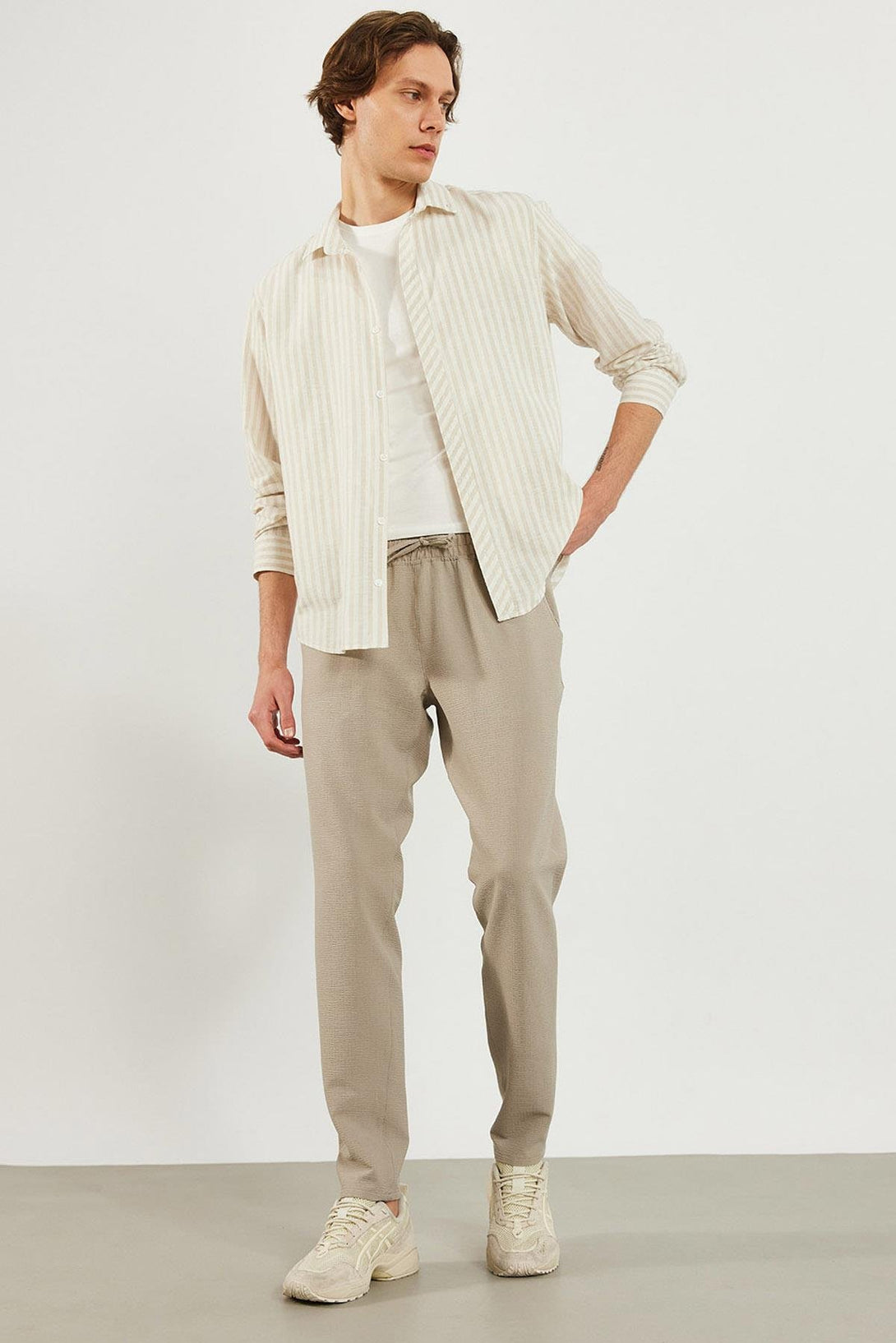 Erkek Alfred Beli Lastikli Slim Straight Gofre Pantolon - Gri