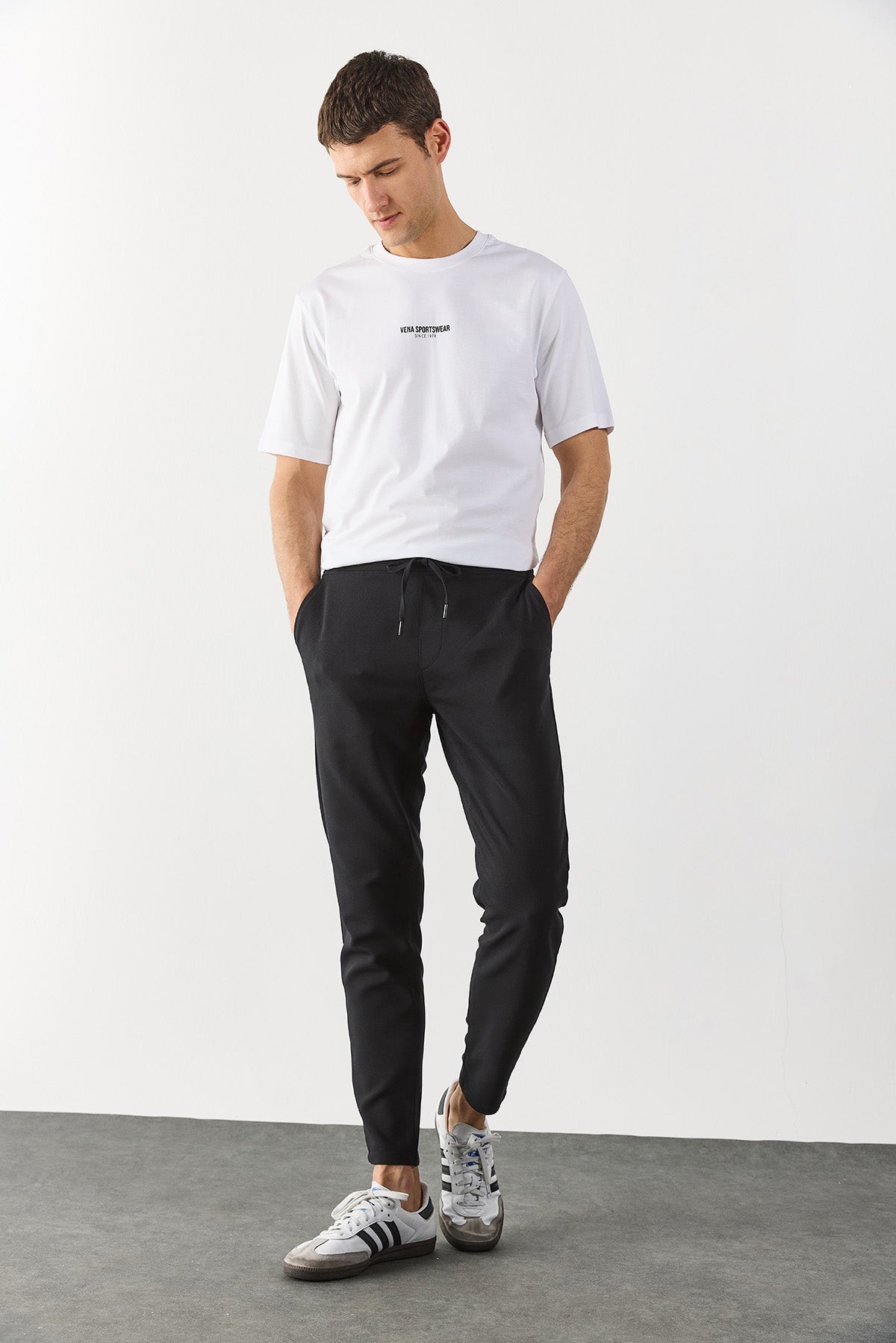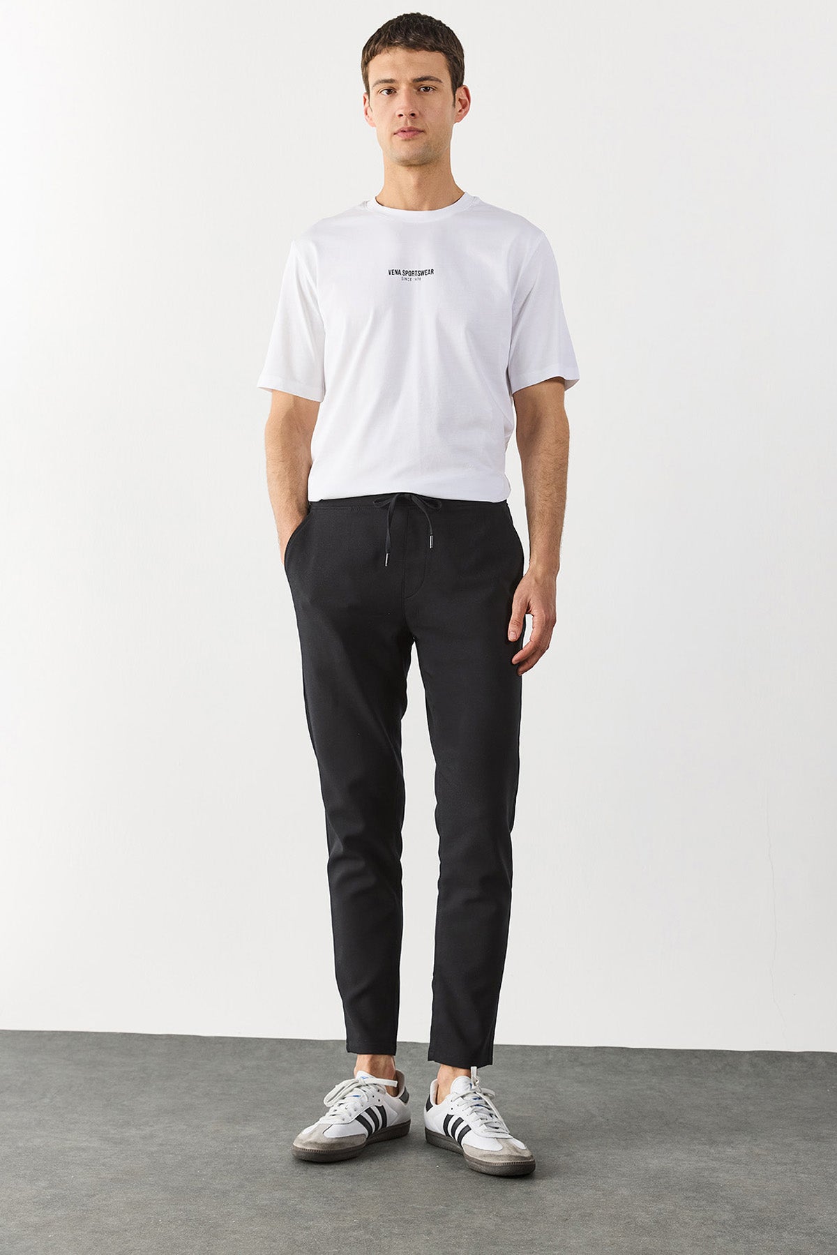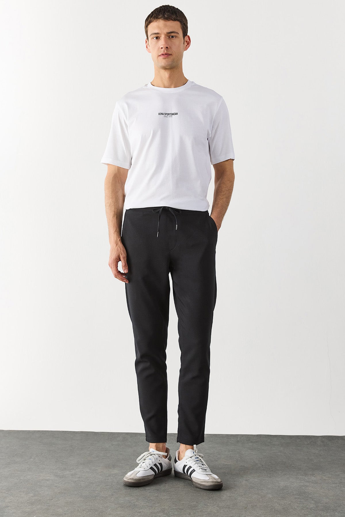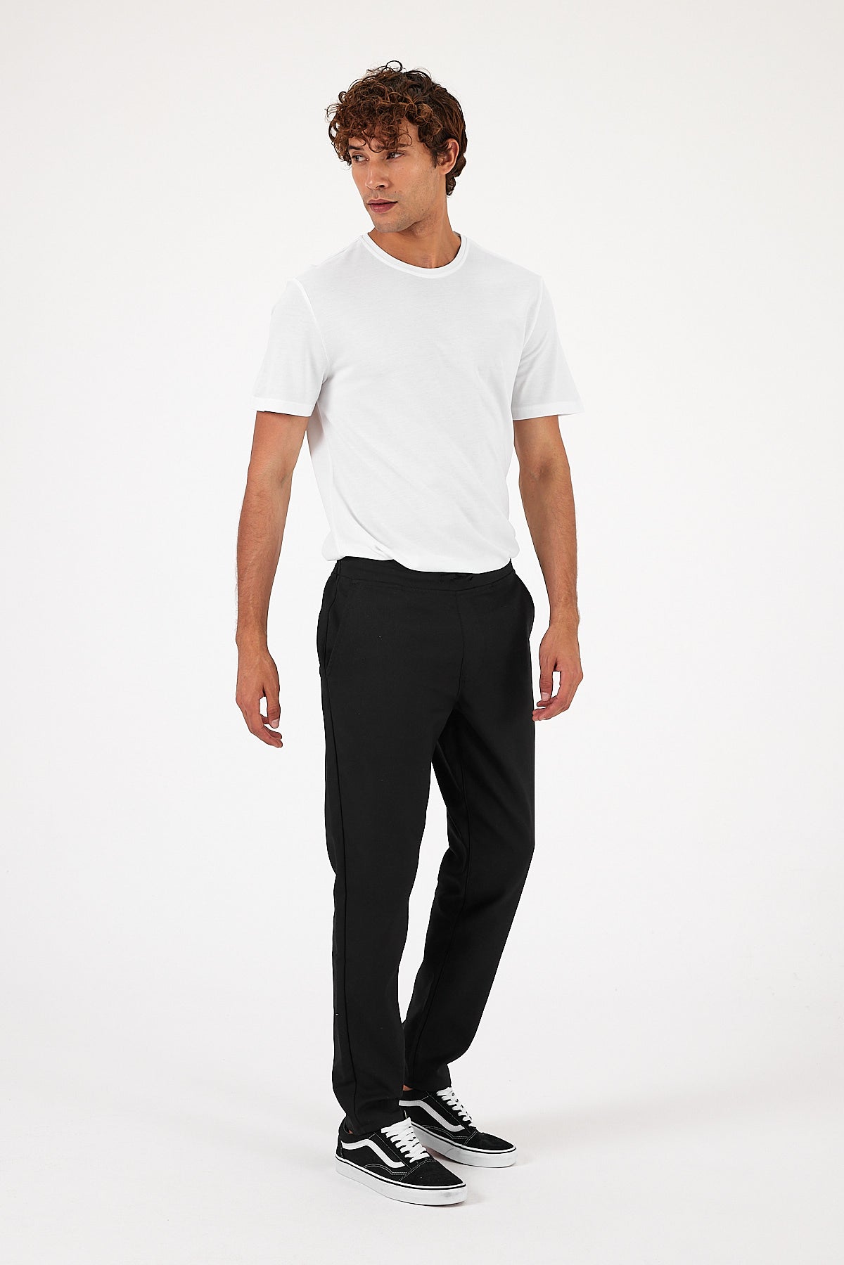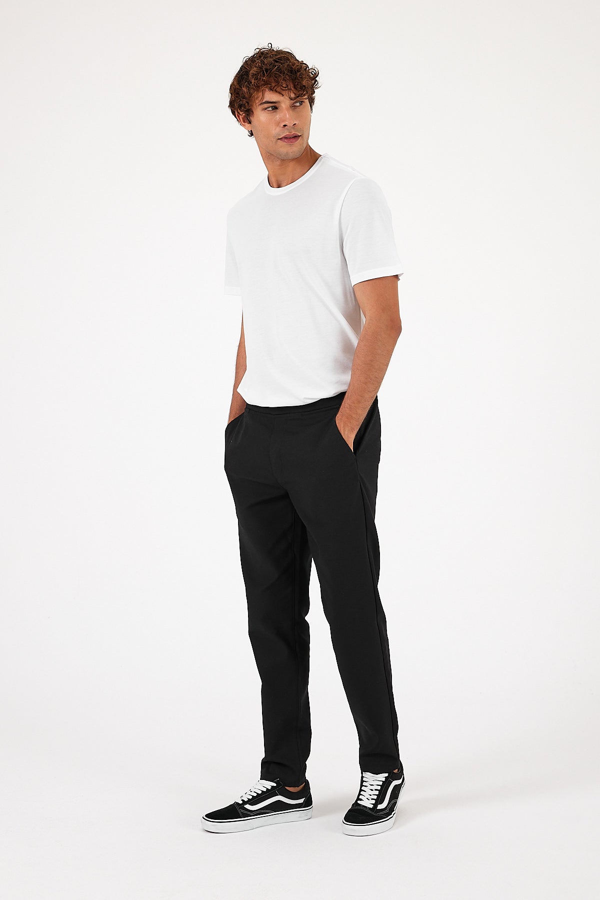 Erkek Alfred Beli Lastikli Smart Pantolon - Siyah