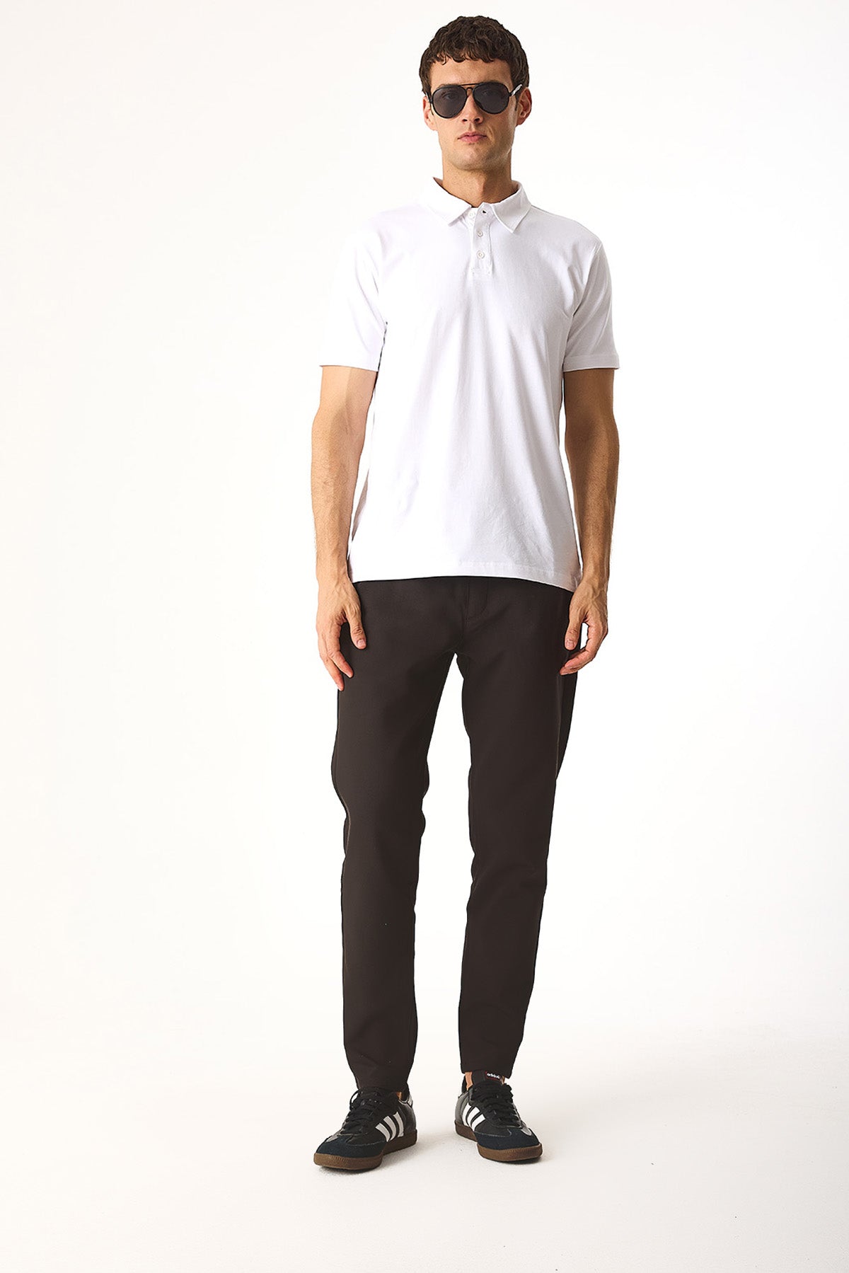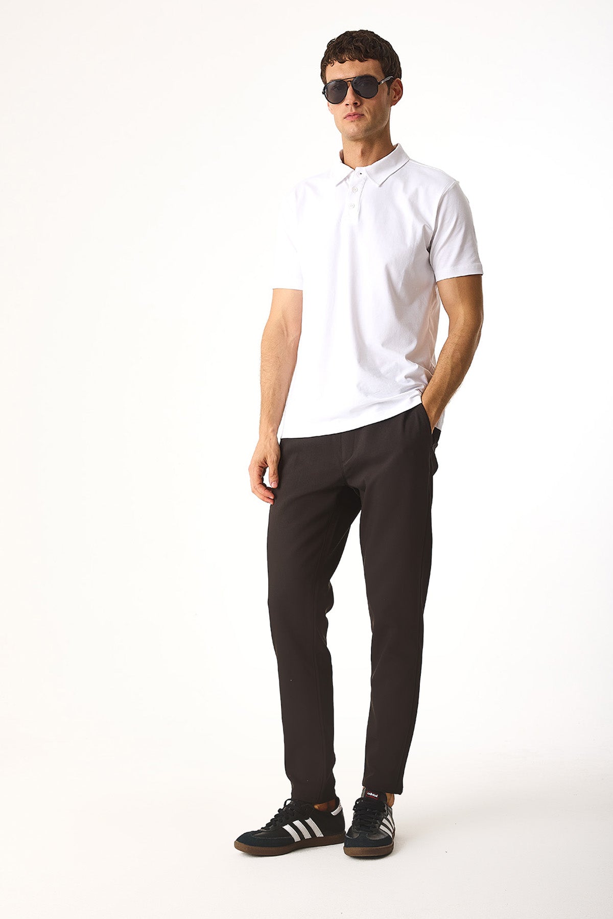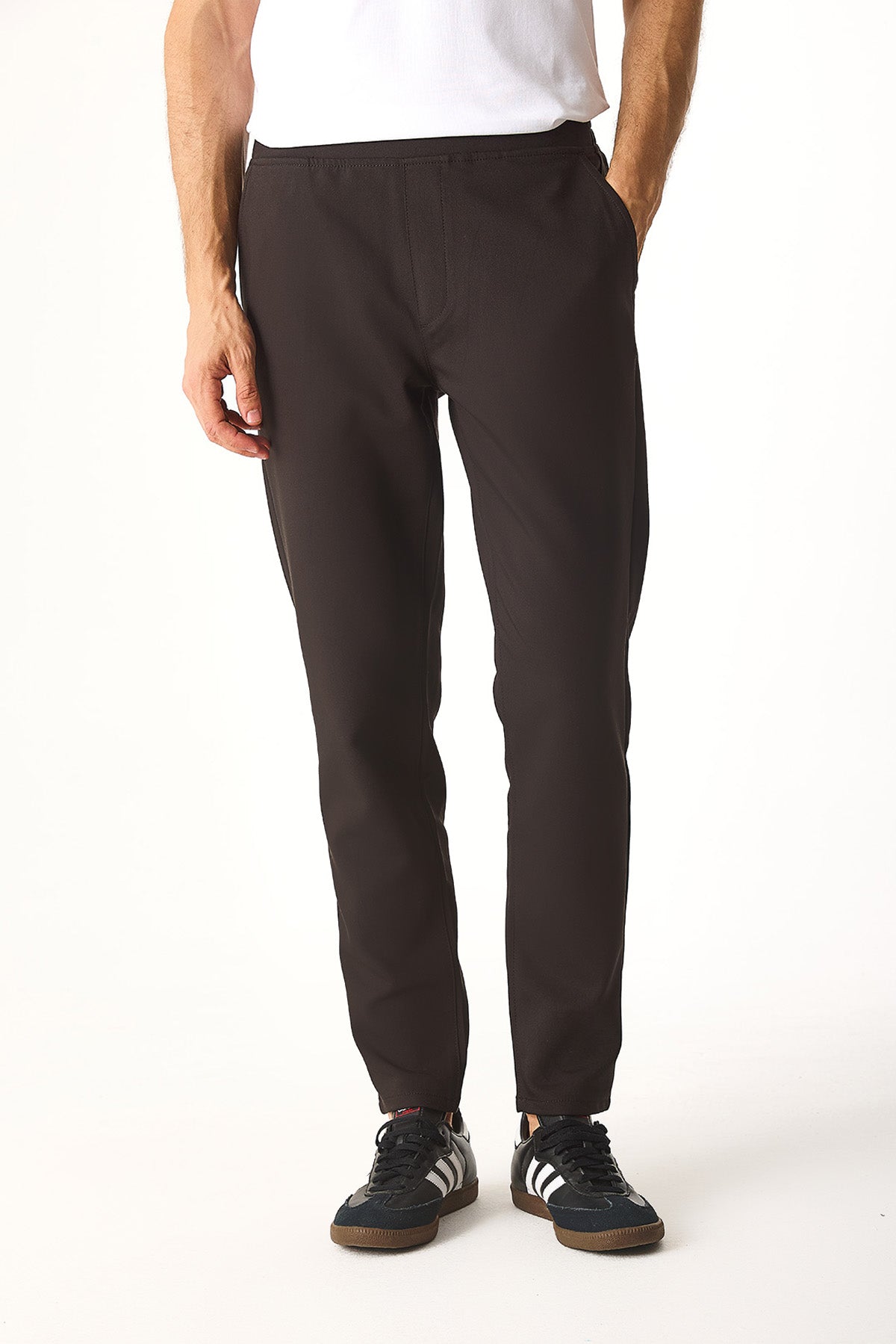 Erkek Alfred Beli Lastikli Smart Pantolon - Kahverengi