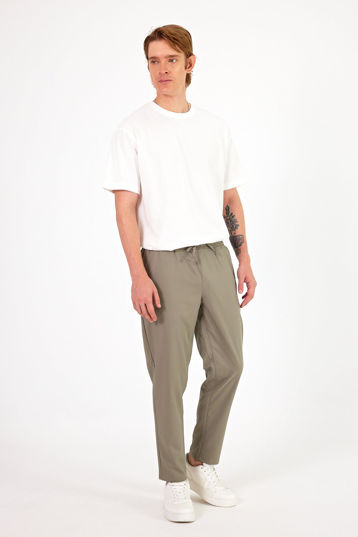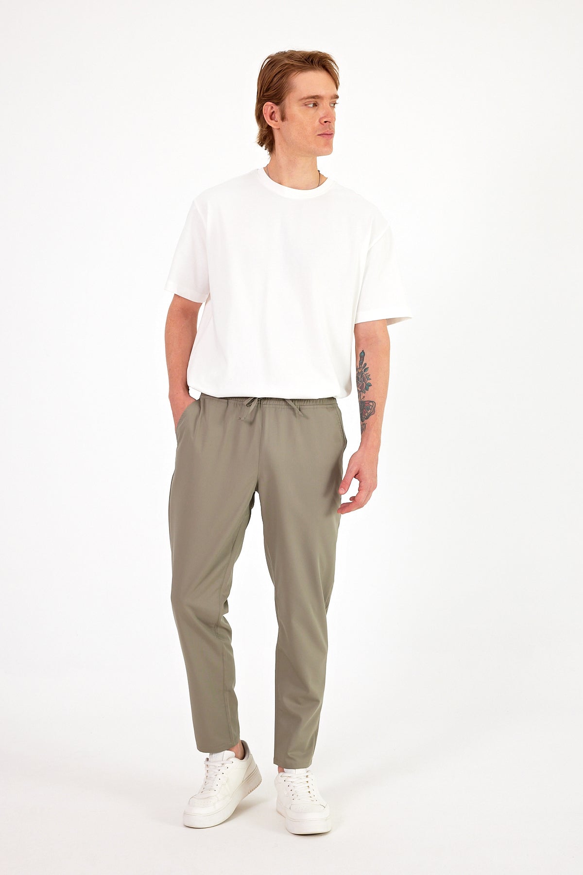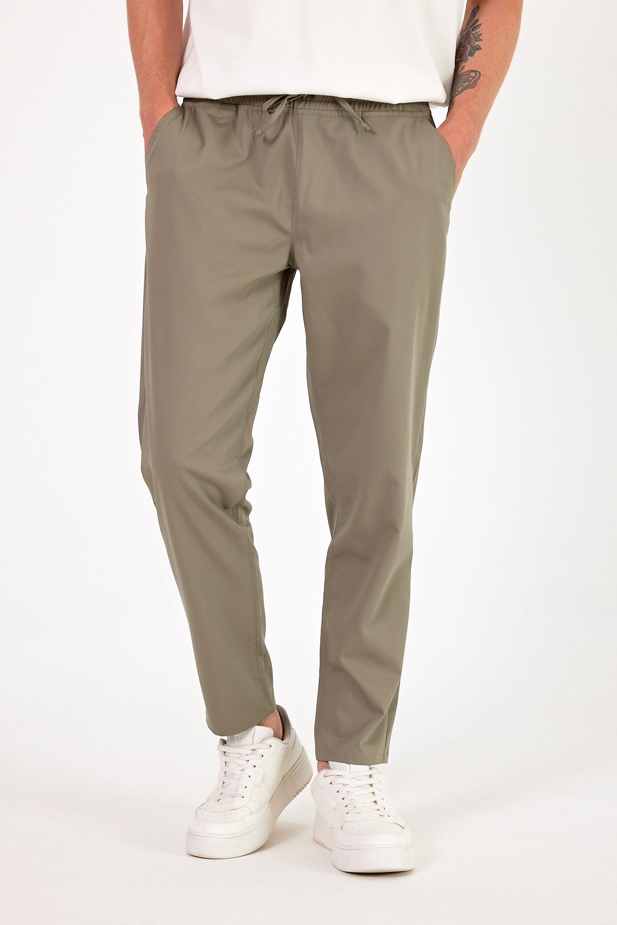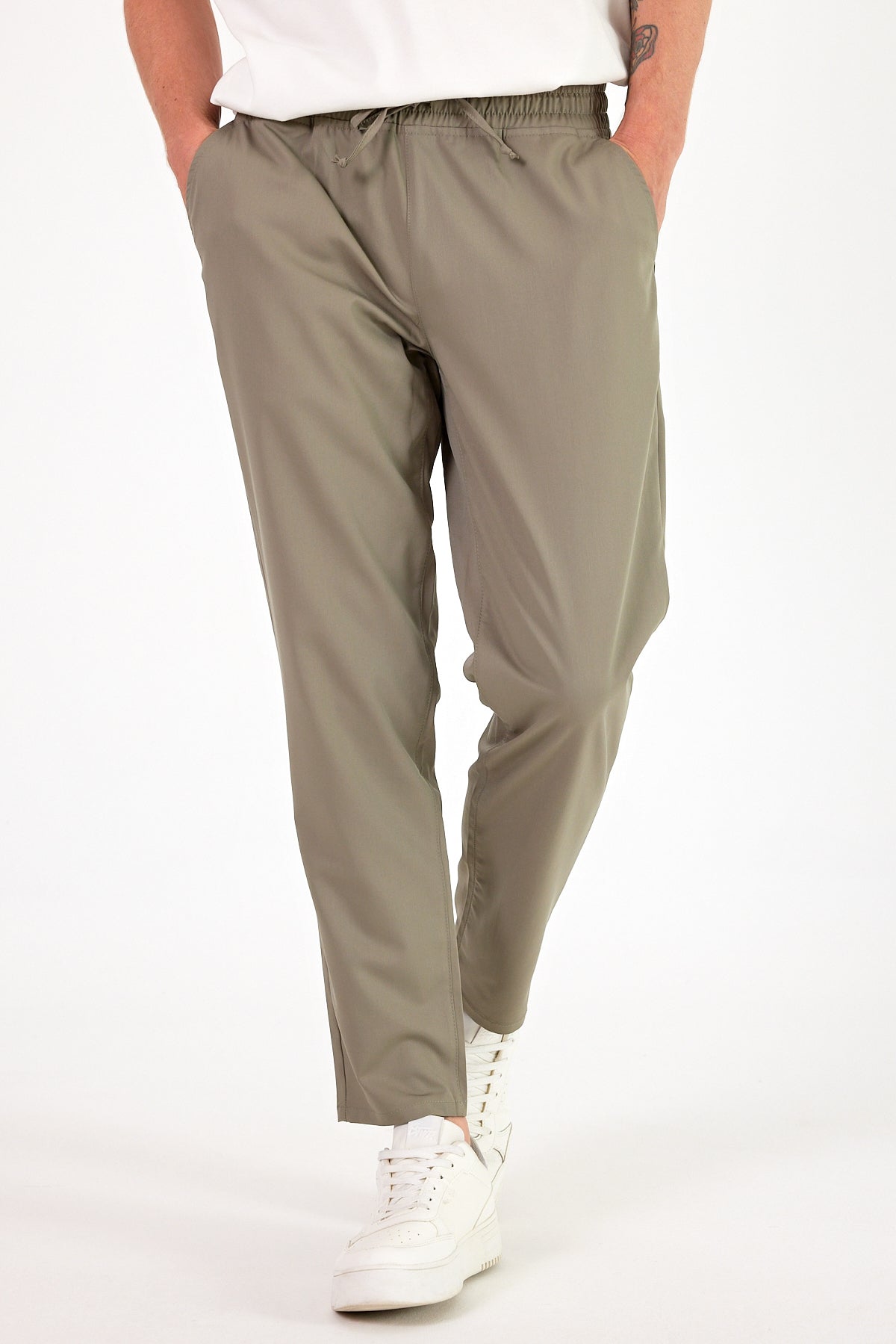 Erkek Alfred Beli Lastikli Summer Gabardin Pantolon - Haki