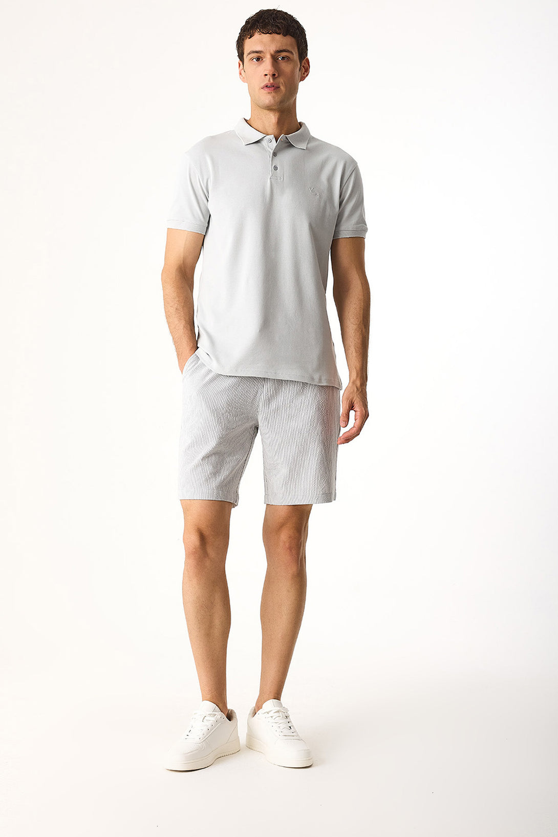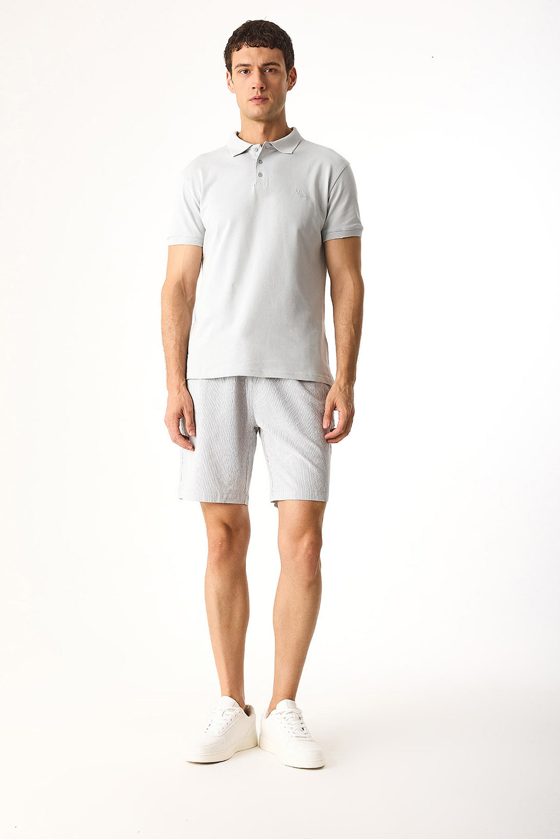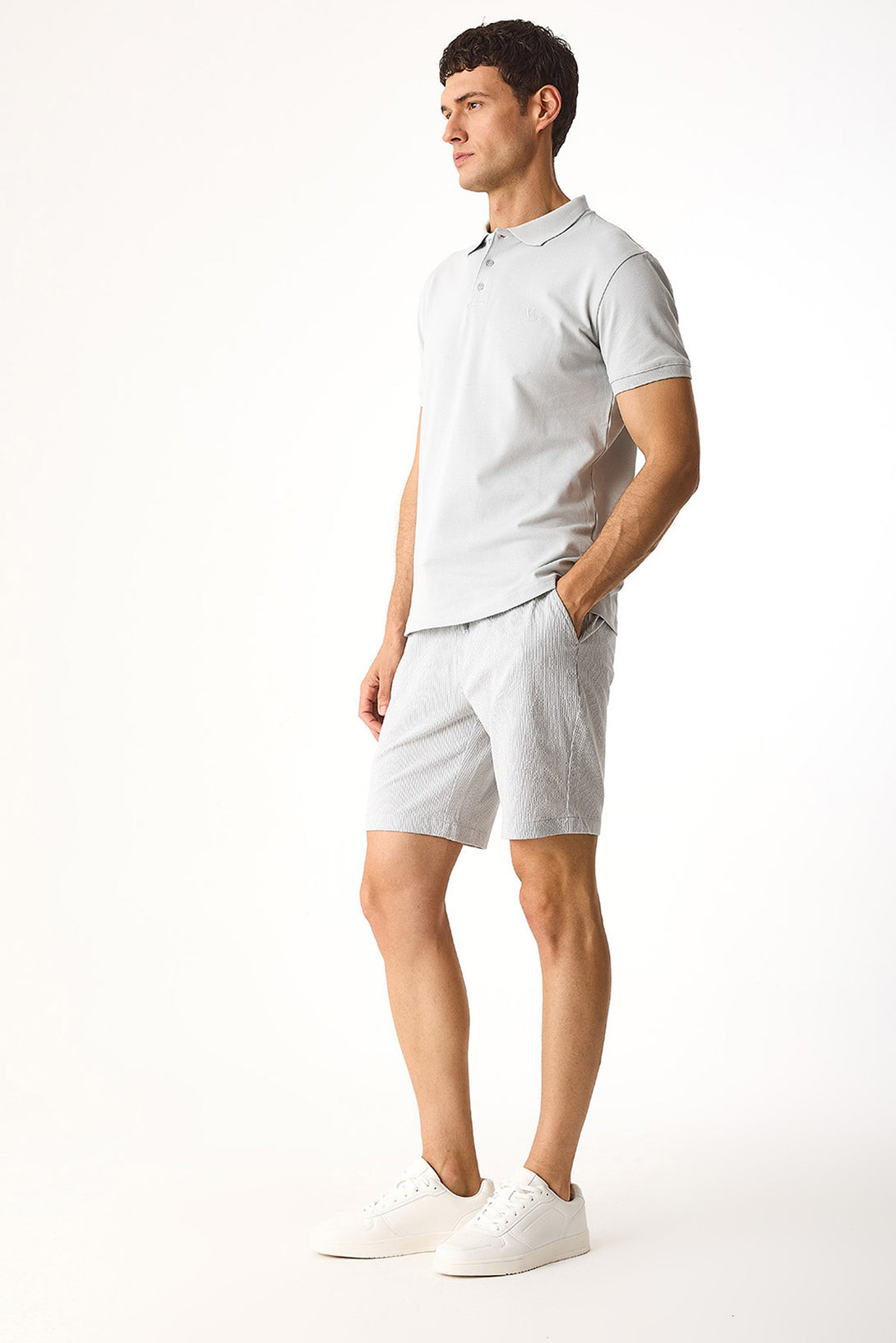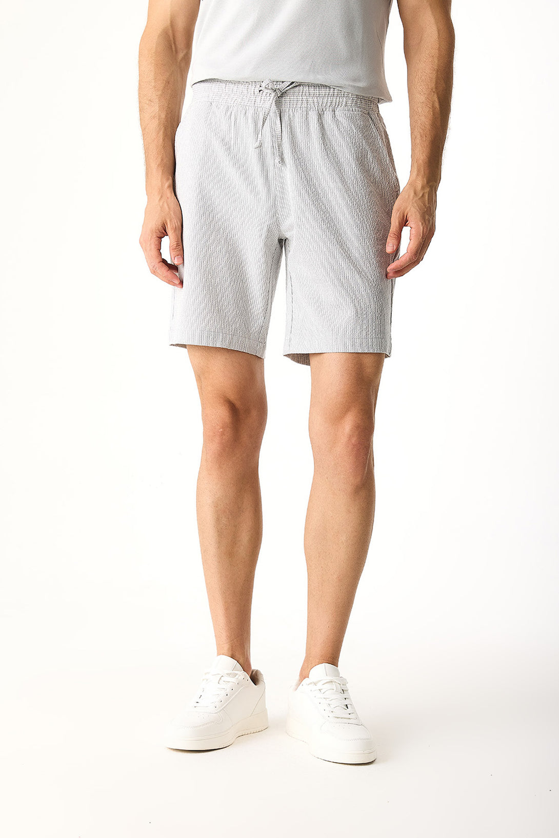 Erkek Alfred Gofre Çizgili Şort - Gri Çizgili