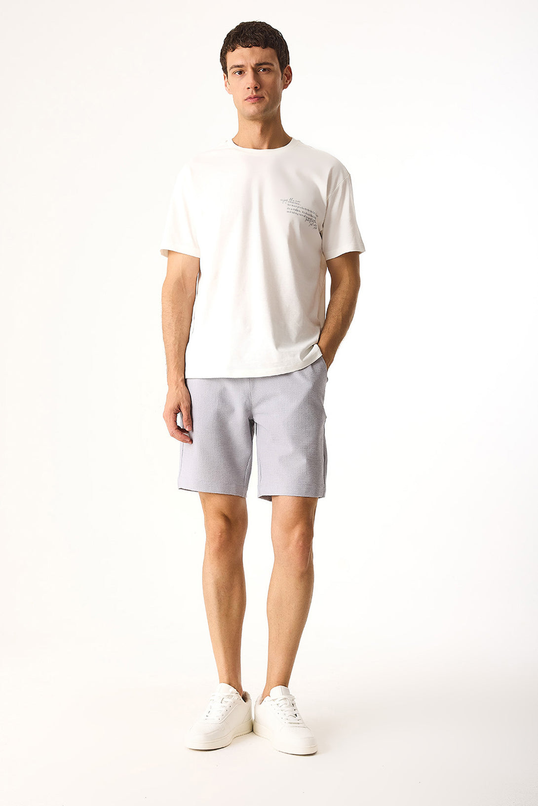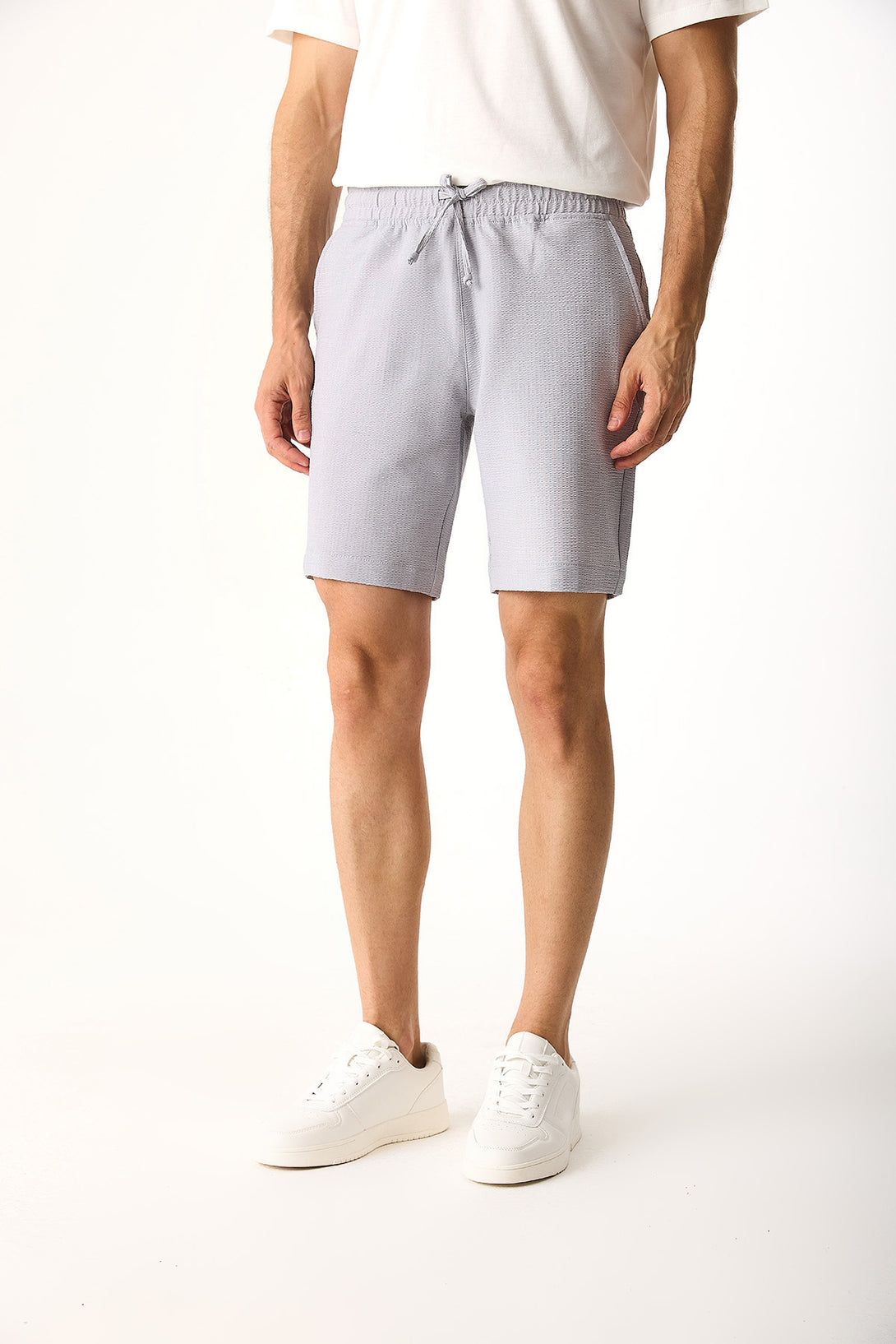 Erkek Alfred Gofre Şort - Buz Gri