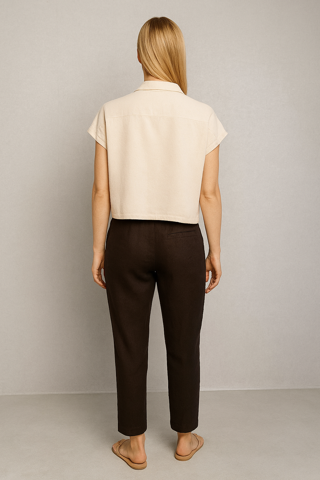 Alian Beli Lastikli %100 Keten Beach Pantolon - KAHVERENGİ