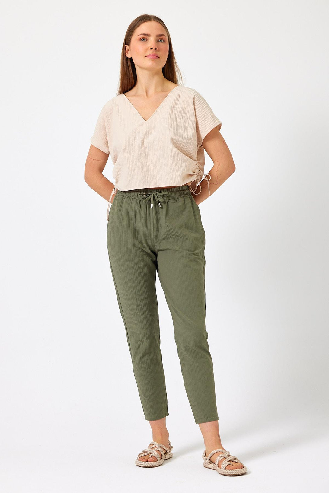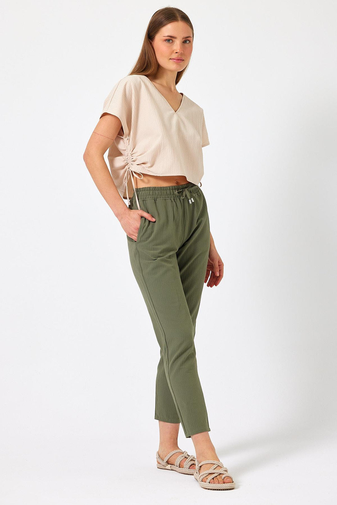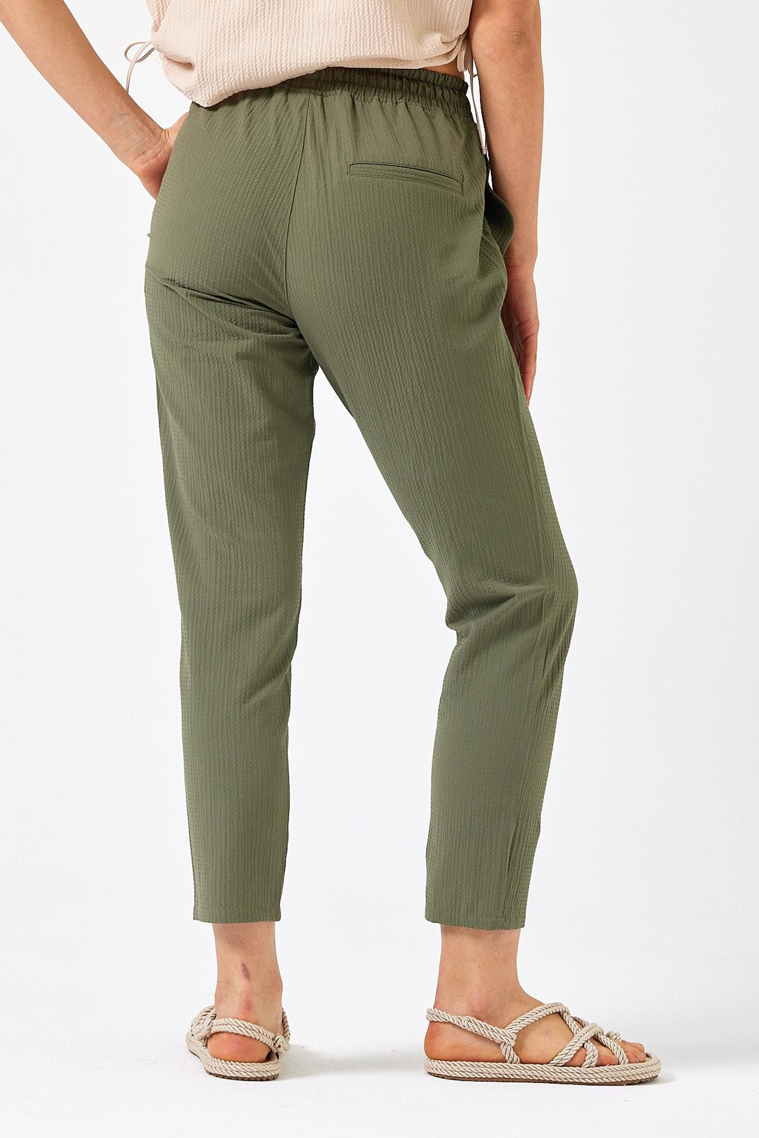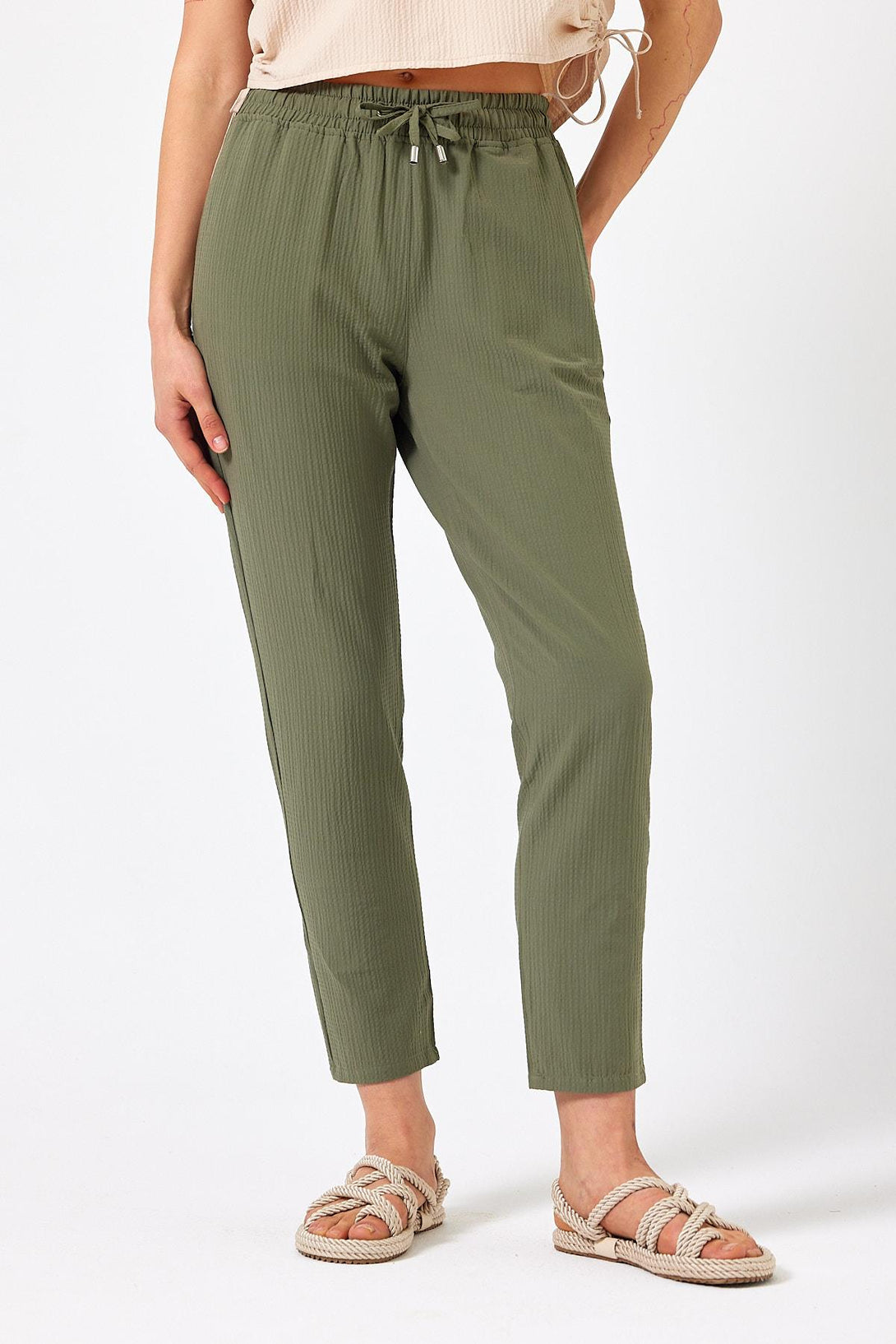 Kadın Alian Beli Lastikli Armürlü Beach Pantolon - Haki