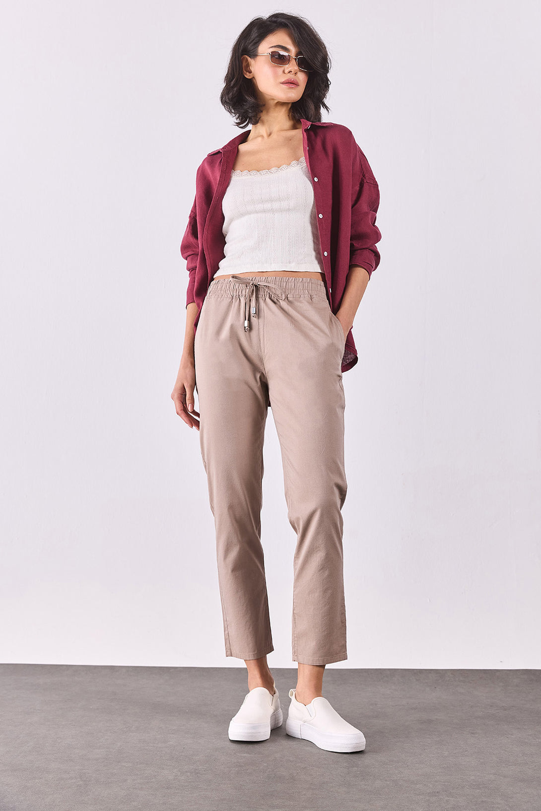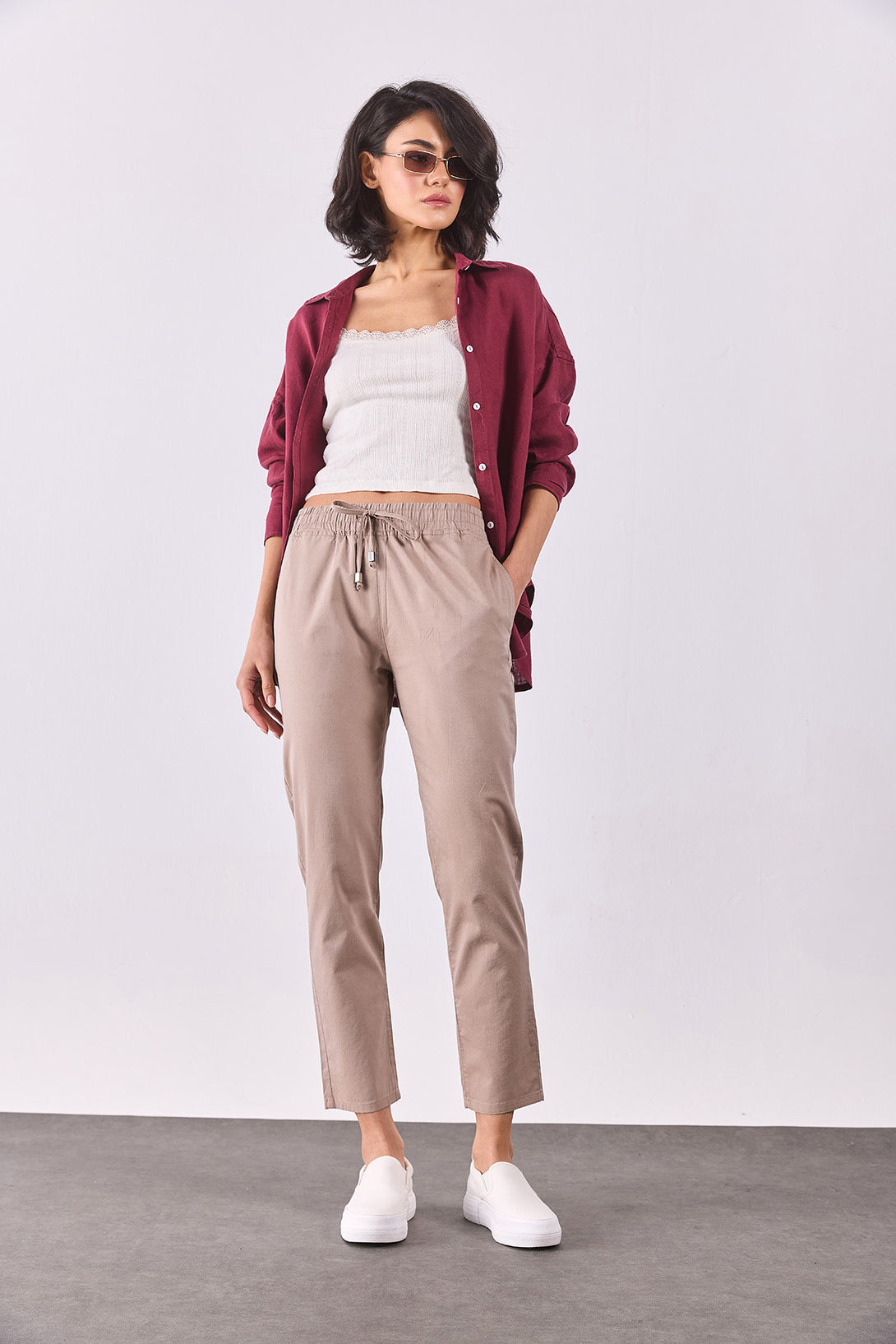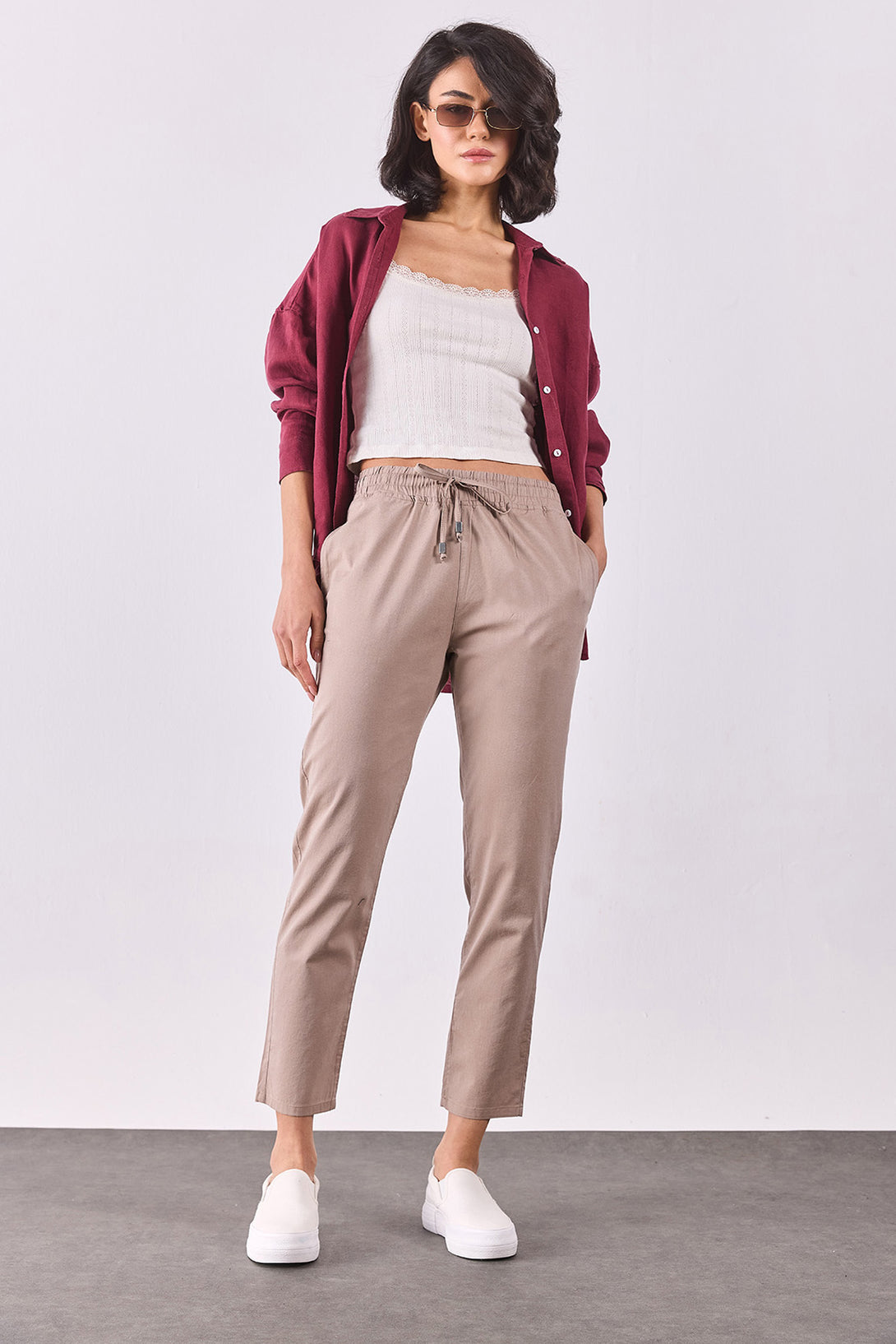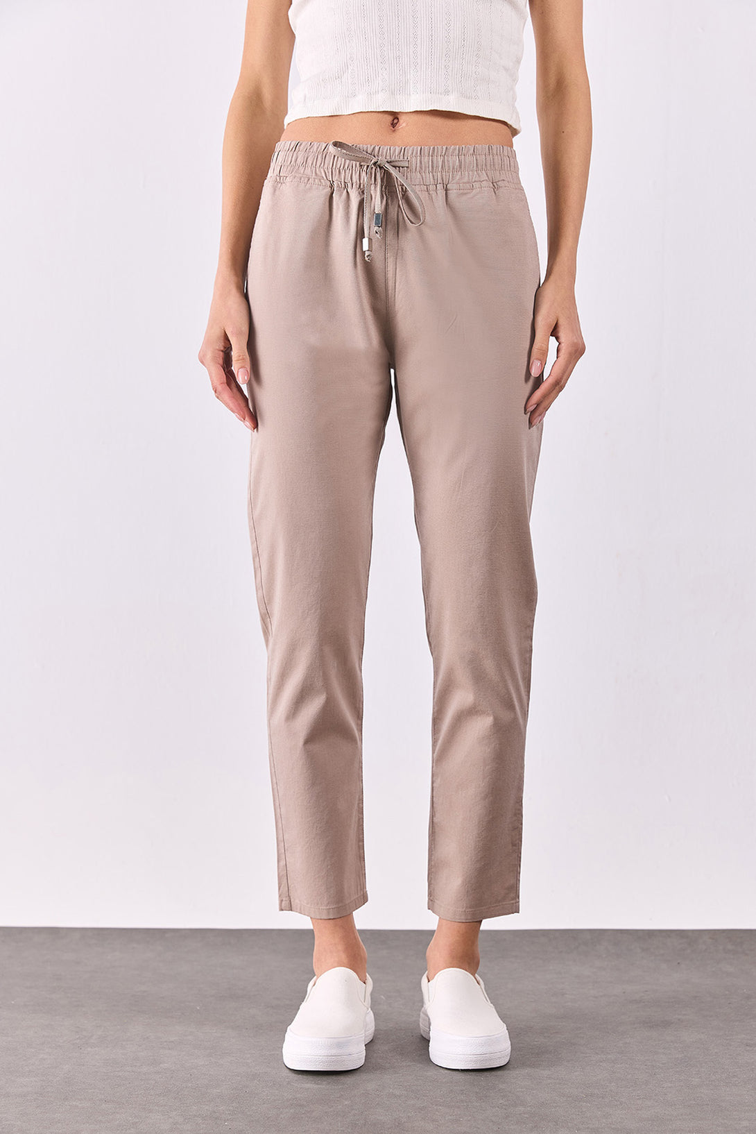 Kadın Alian Beli Lastikli Beach Pantolon - Kahverengi