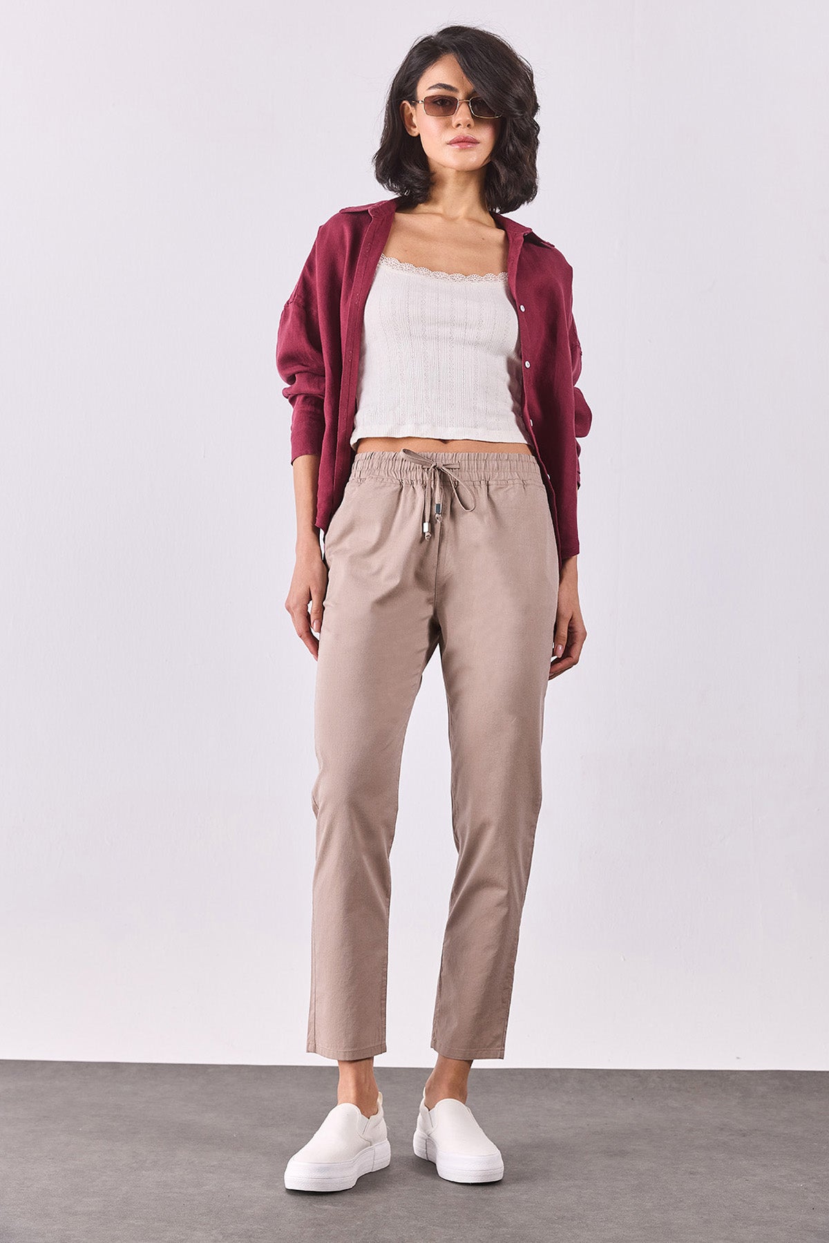 Kadın Alian Beli Lastikli Beach Pantolon - Kahverengi