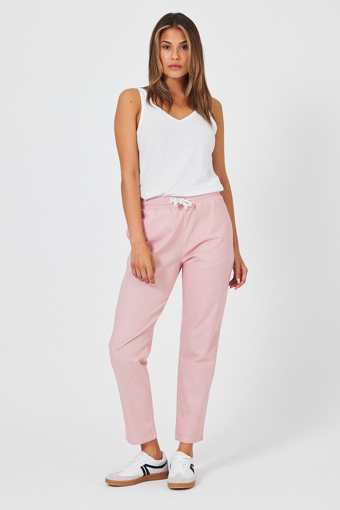 Kadın Alian Beli Lastikli Çizgili Gabardin Pantolon - Kırmızı Çizgili