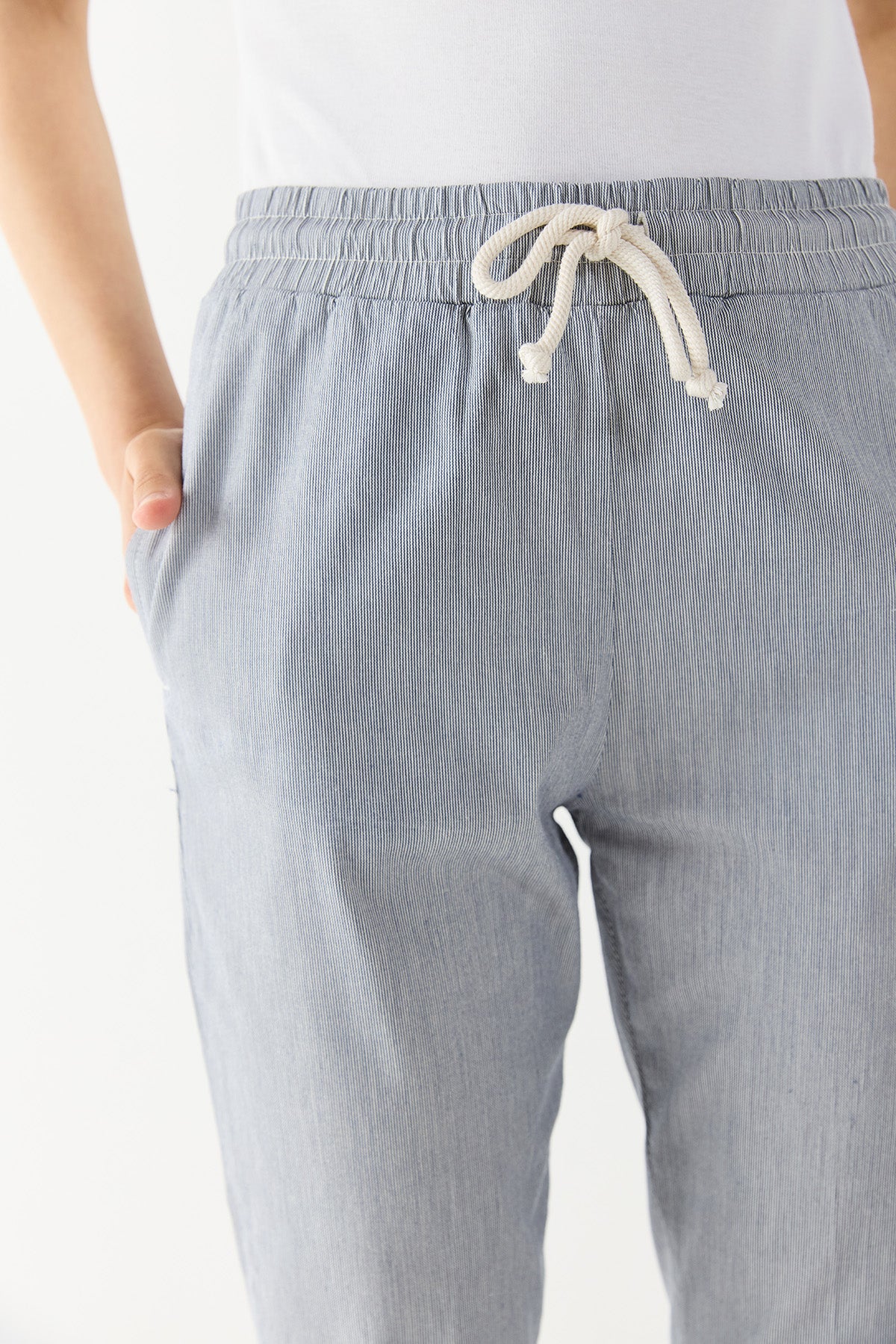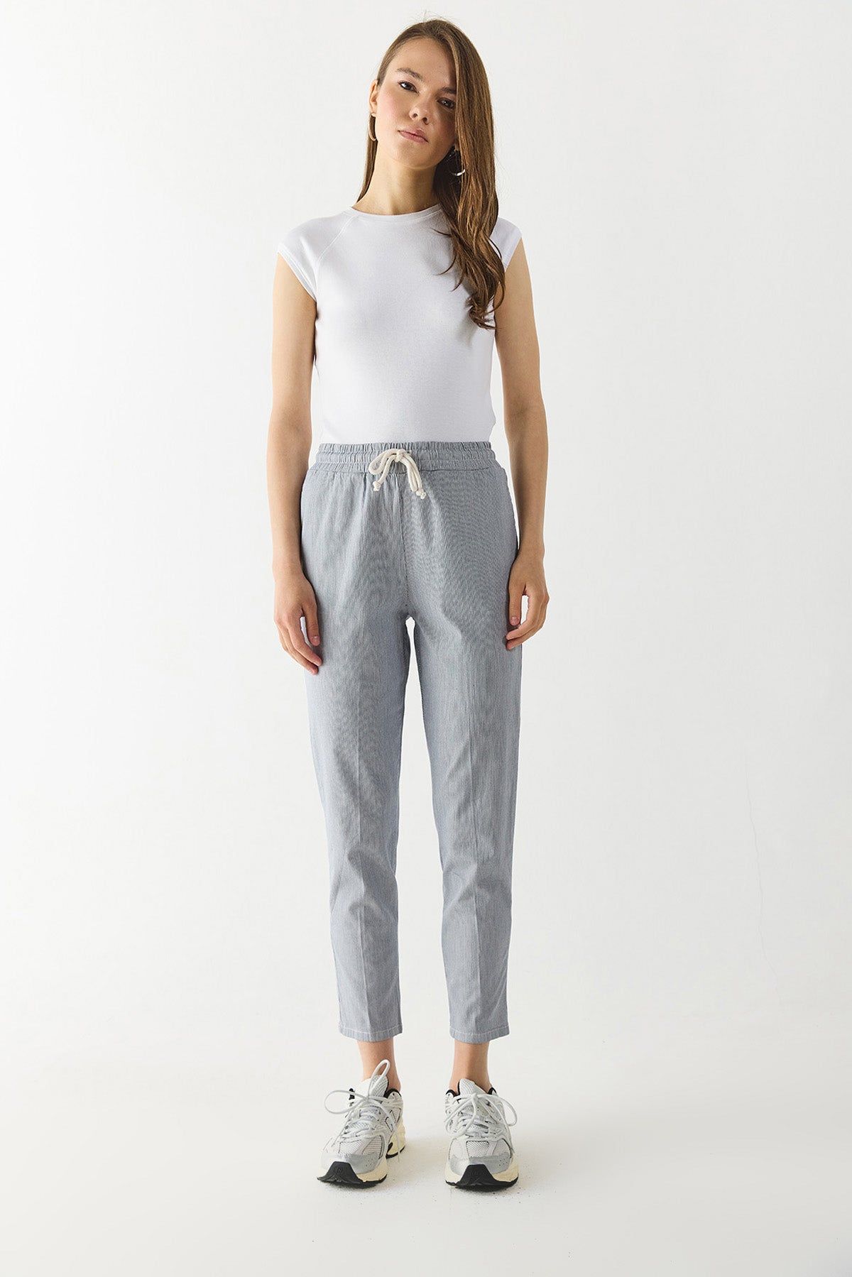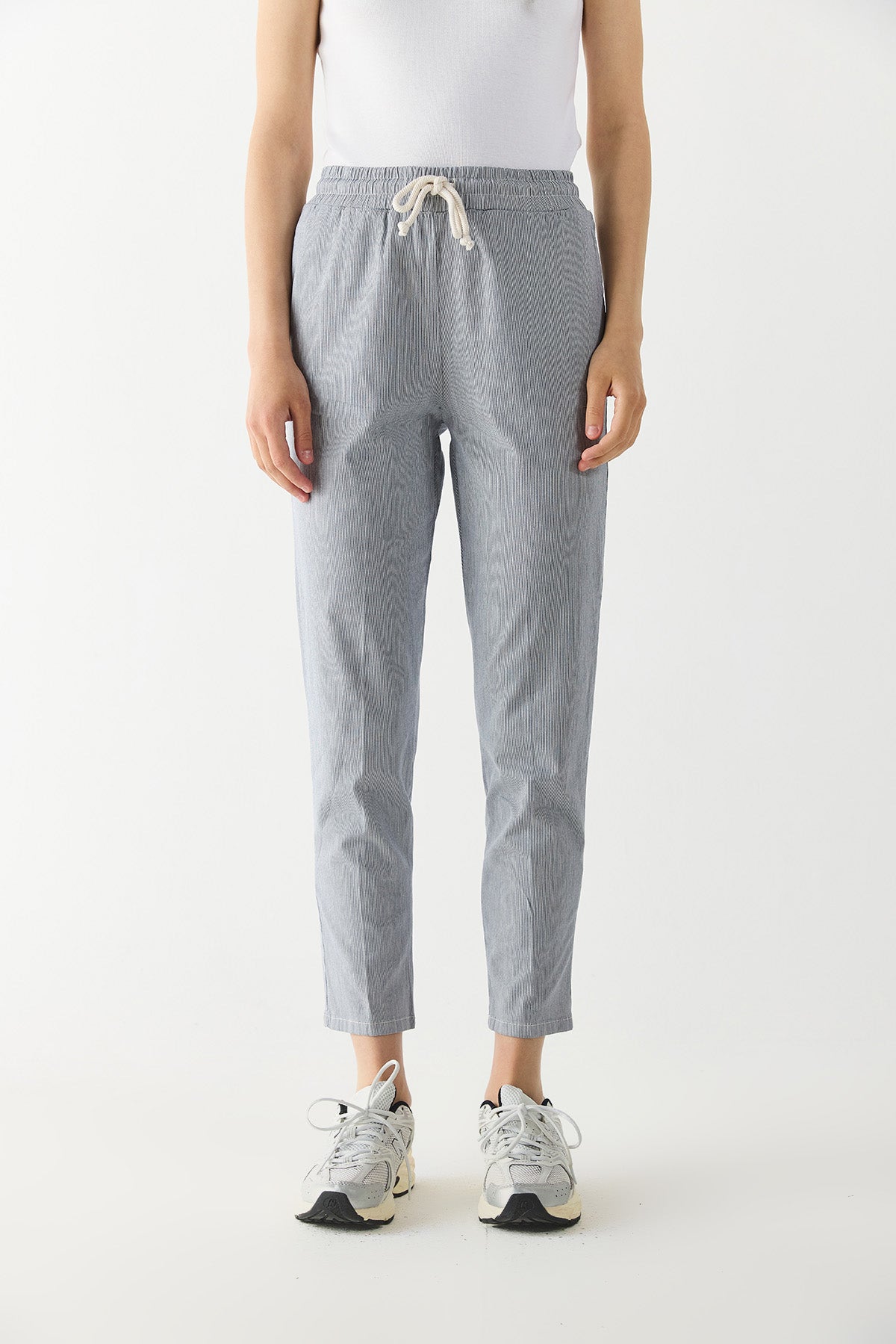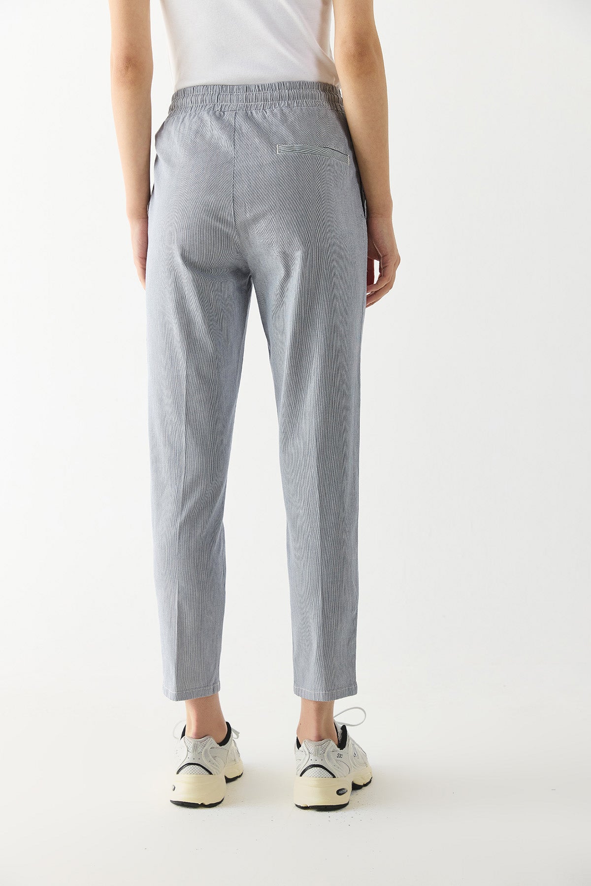 Kadın Alian Beli Lastikli Çizgili Gabardin Pantolon - Lacivert Çizgili