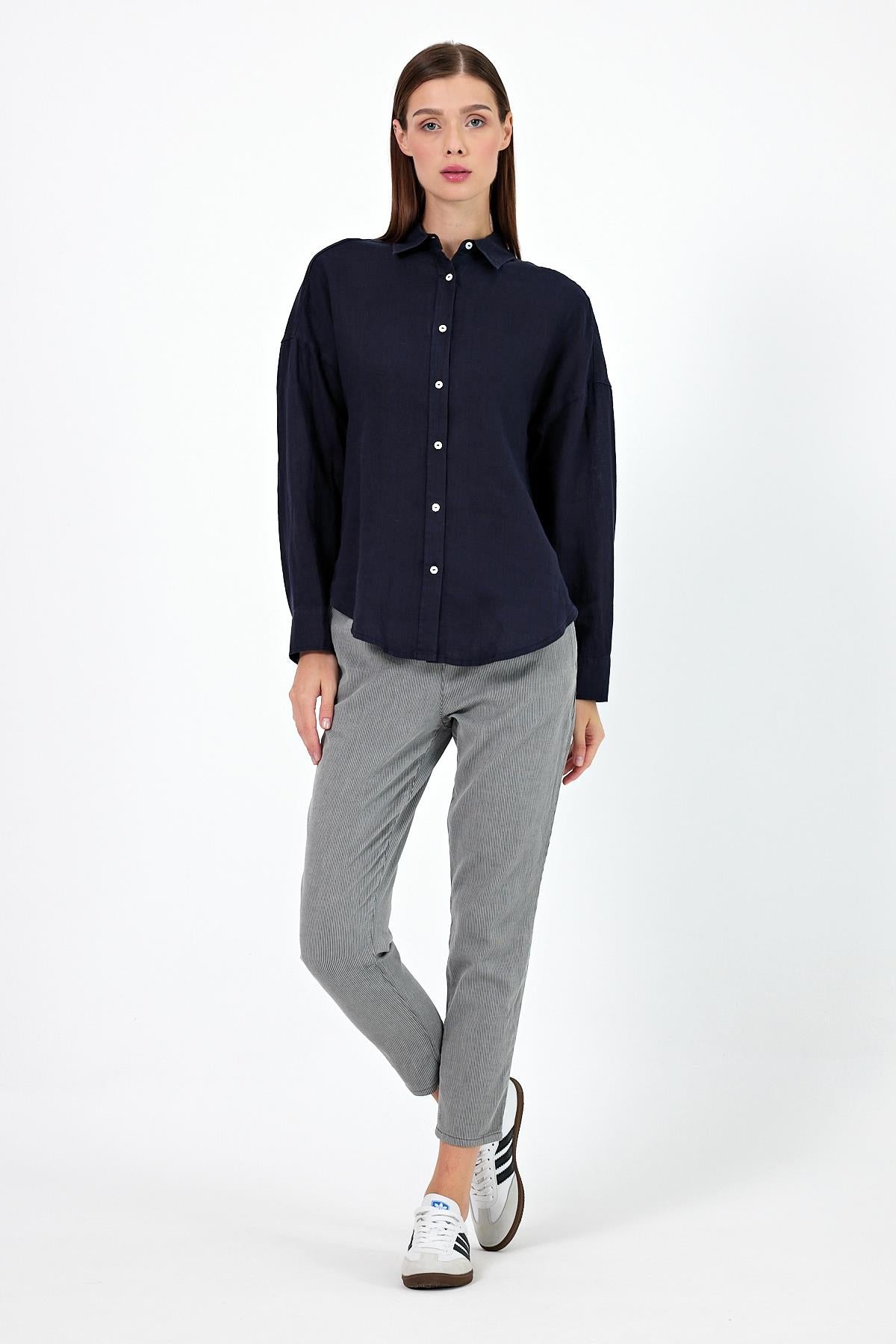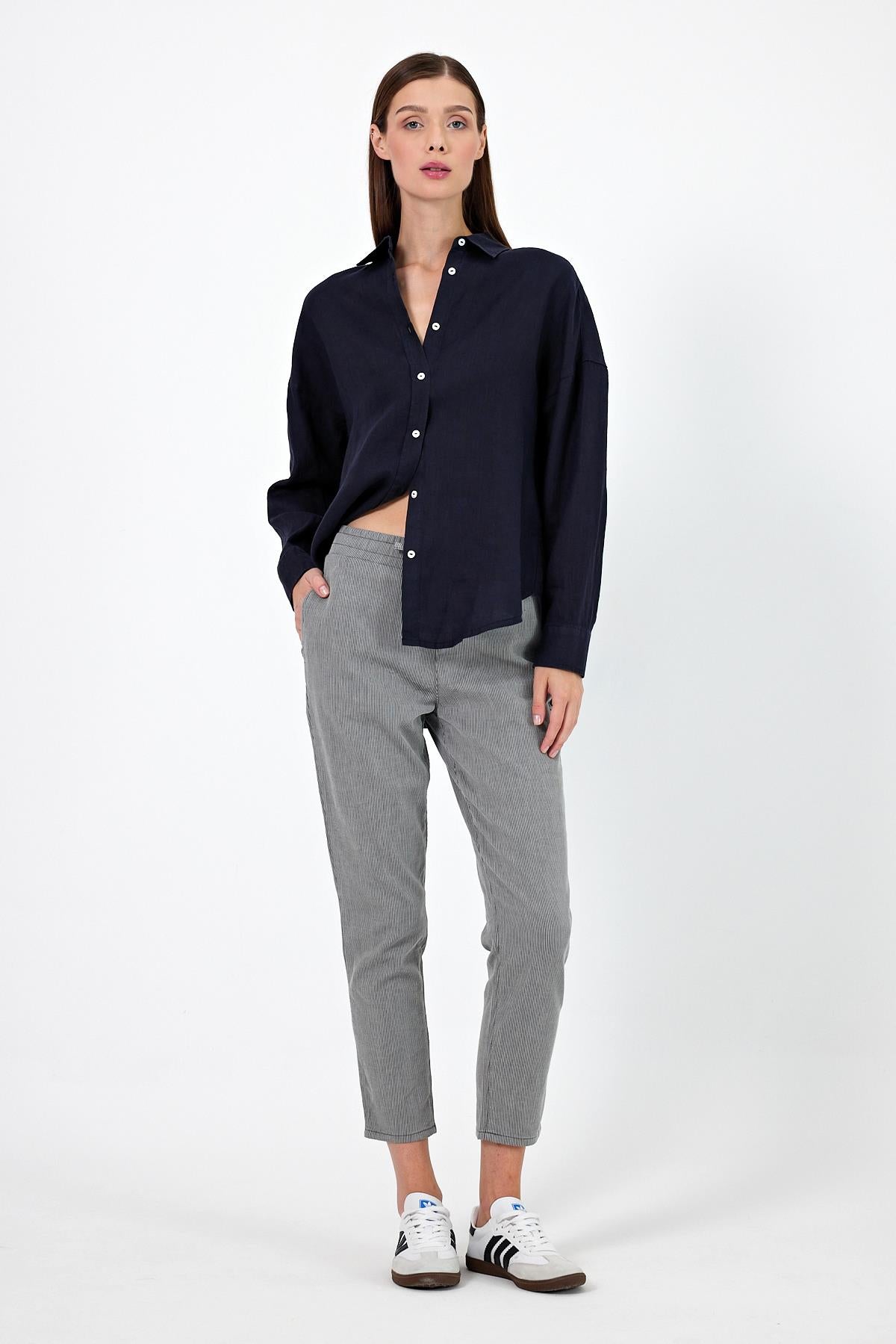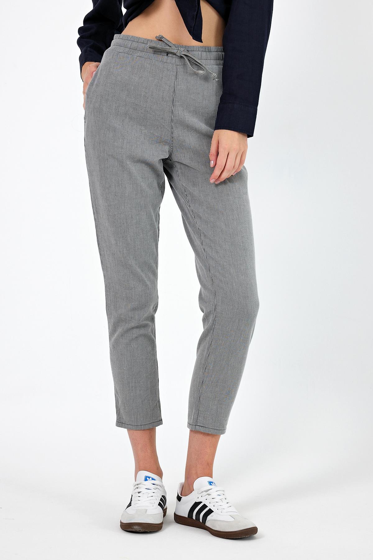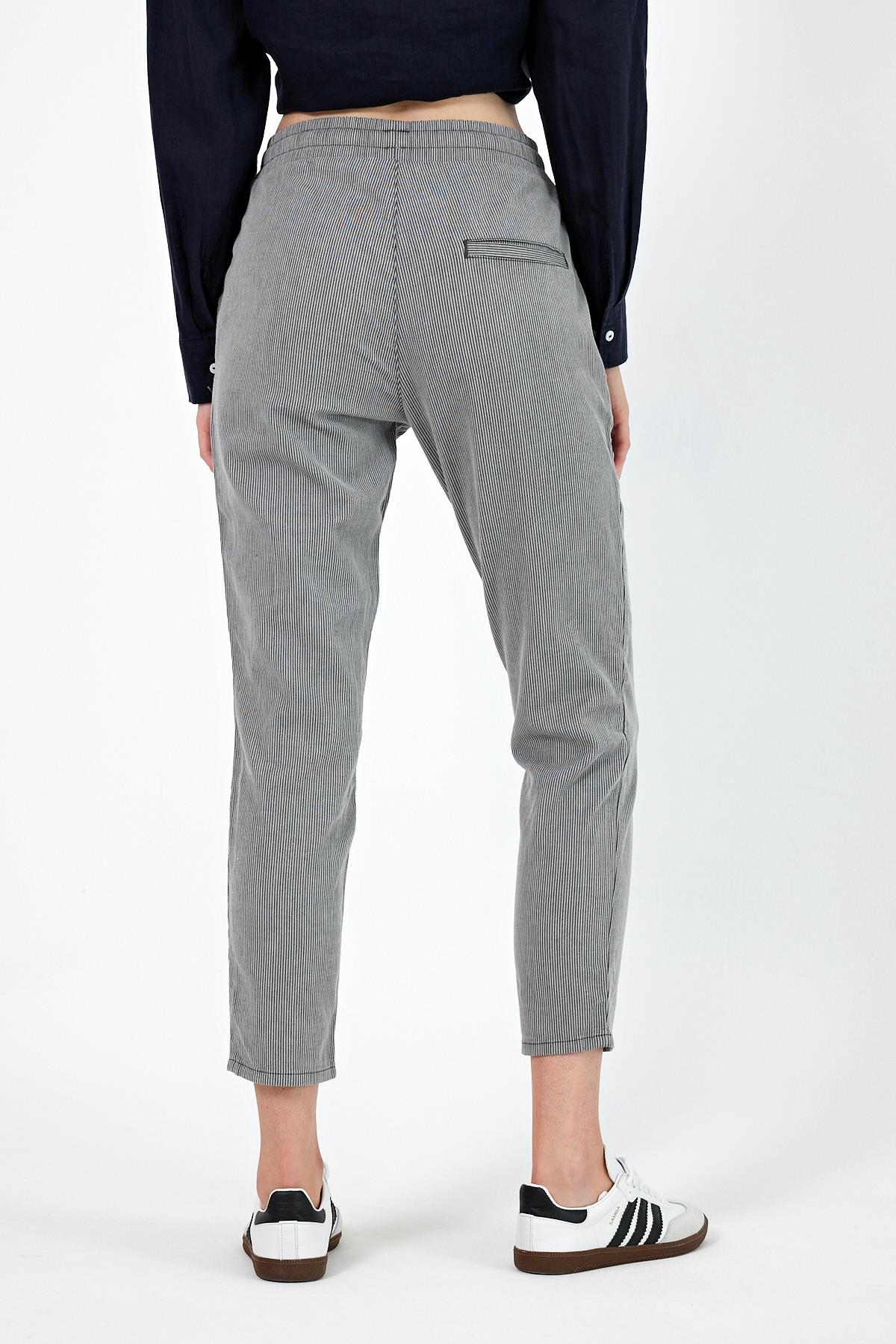 Kadın Alian Beli Lastikli Çizgili Pantolon - Siyah Çizgili