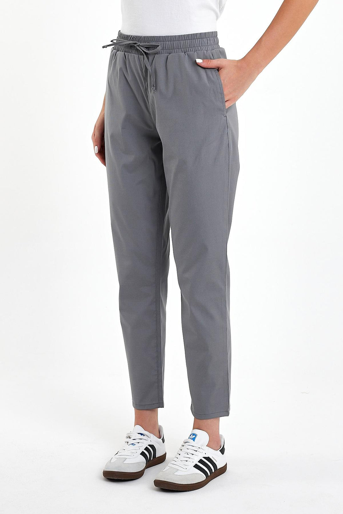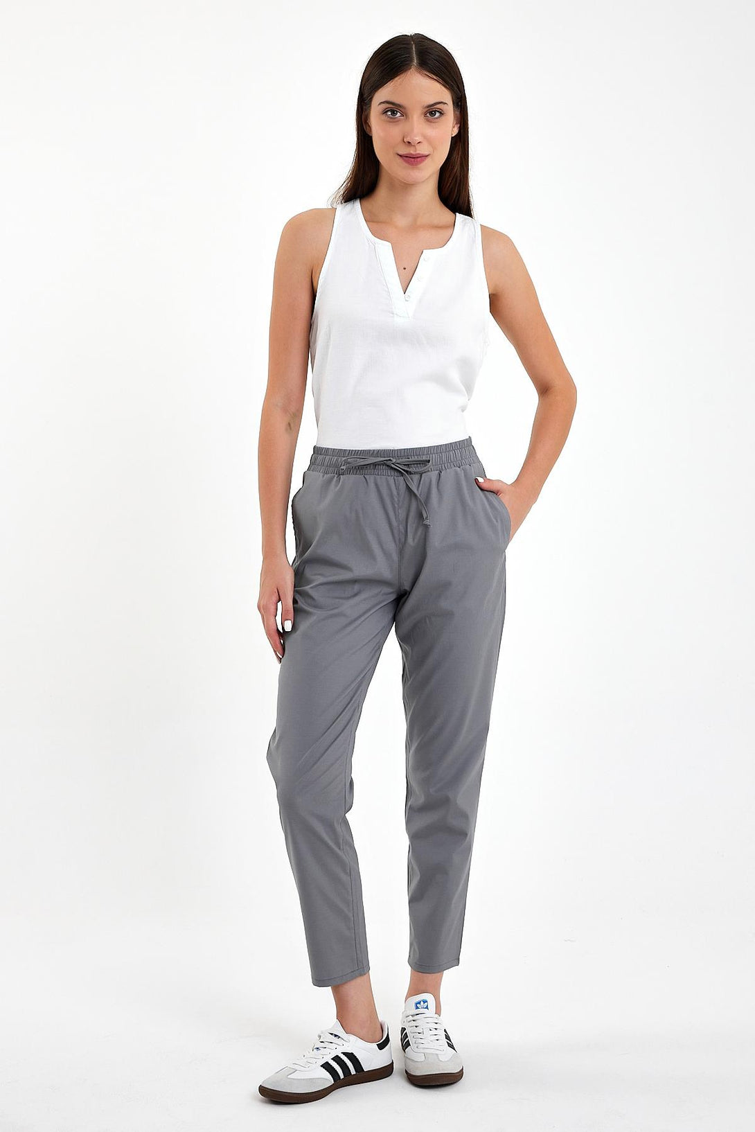 Kadın Alian Beli Lastikli Füme Çizgili Summer Gabardin Pantolon