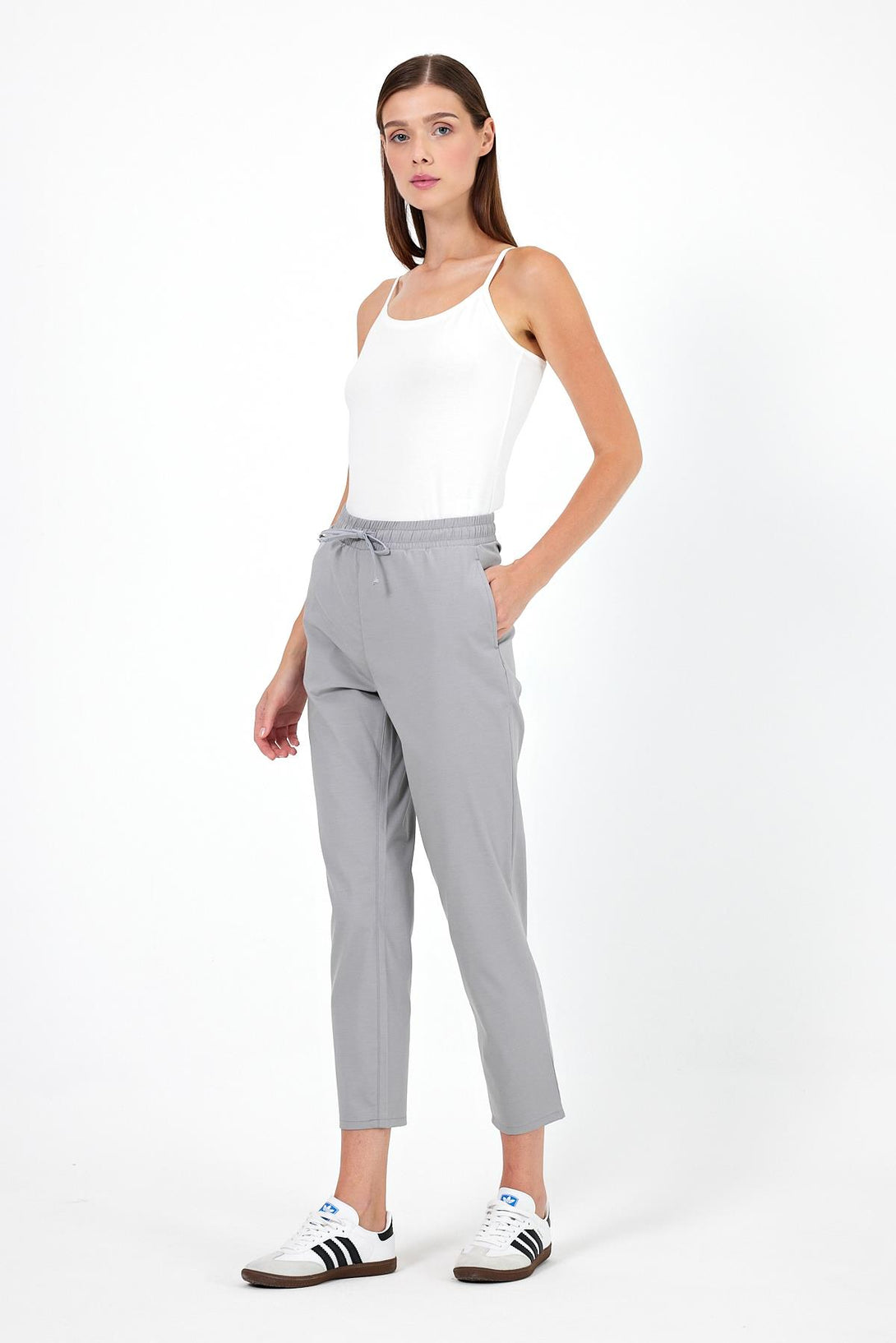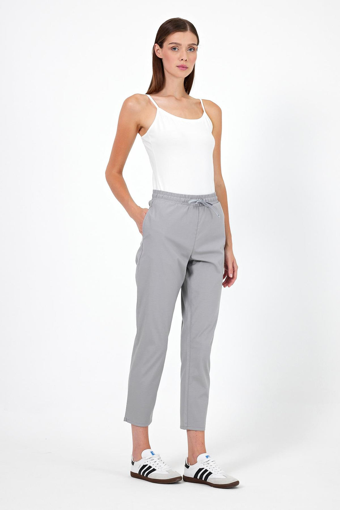 Alian Beli Lastikli Çizgili Summer Gabardin Pantolon