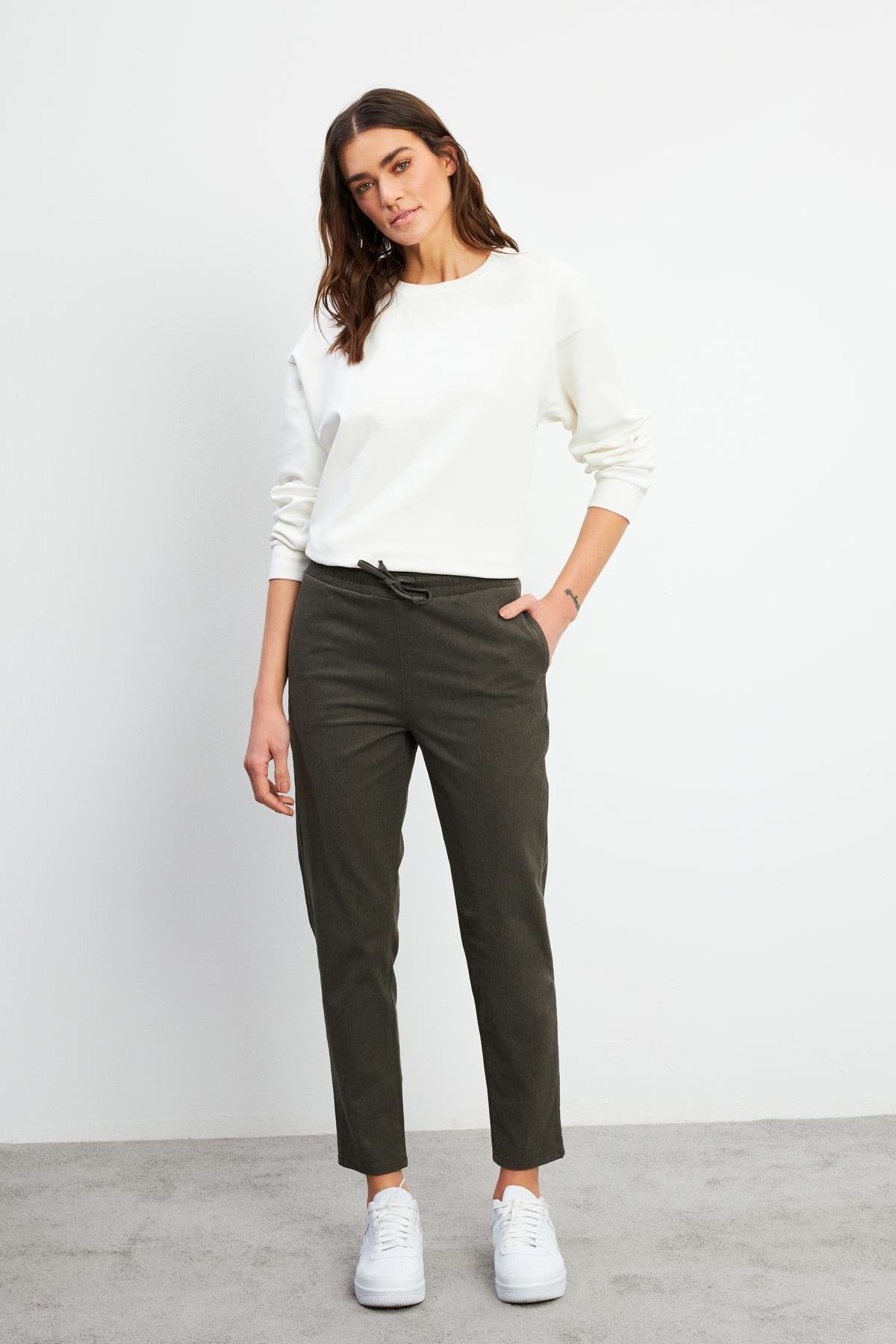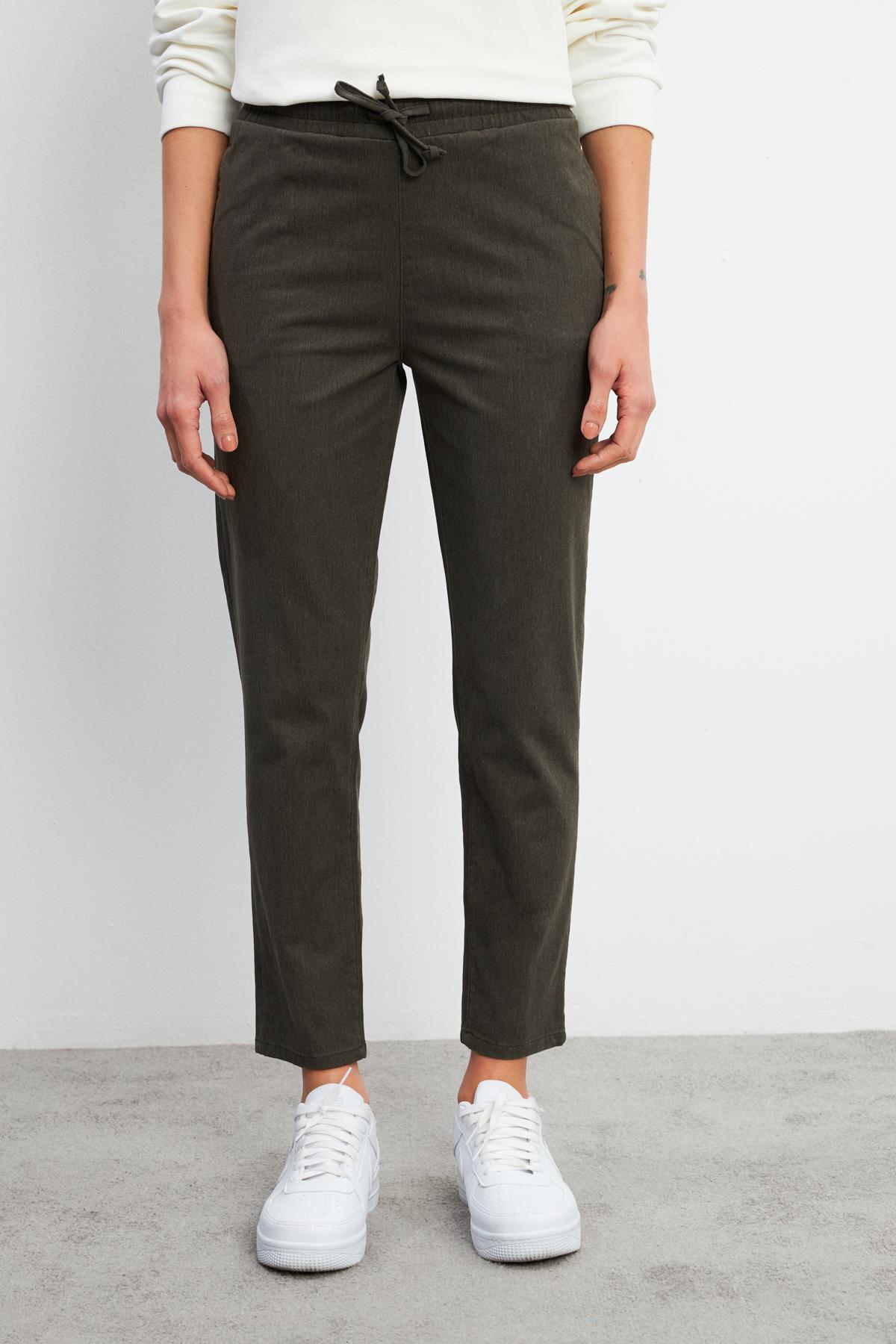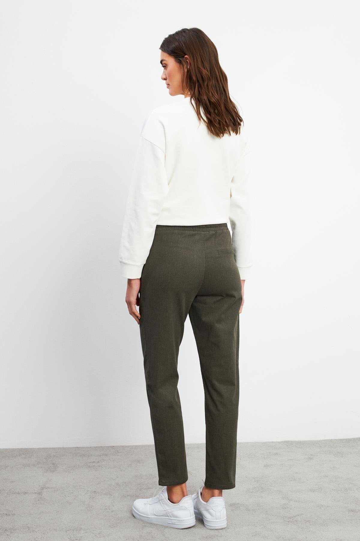 Kadın Alian Beli Lastikli Formal Yumuşak Dokulu Pantolon - Haki