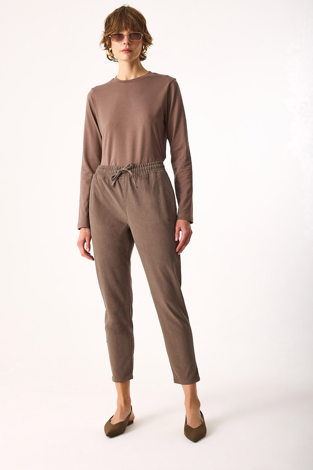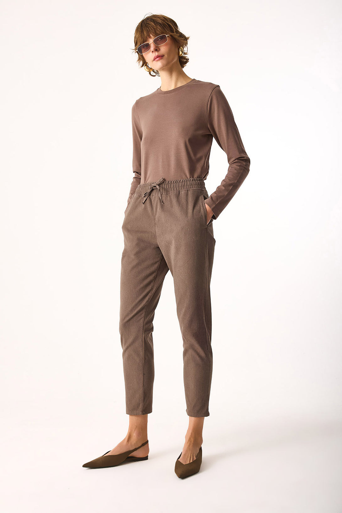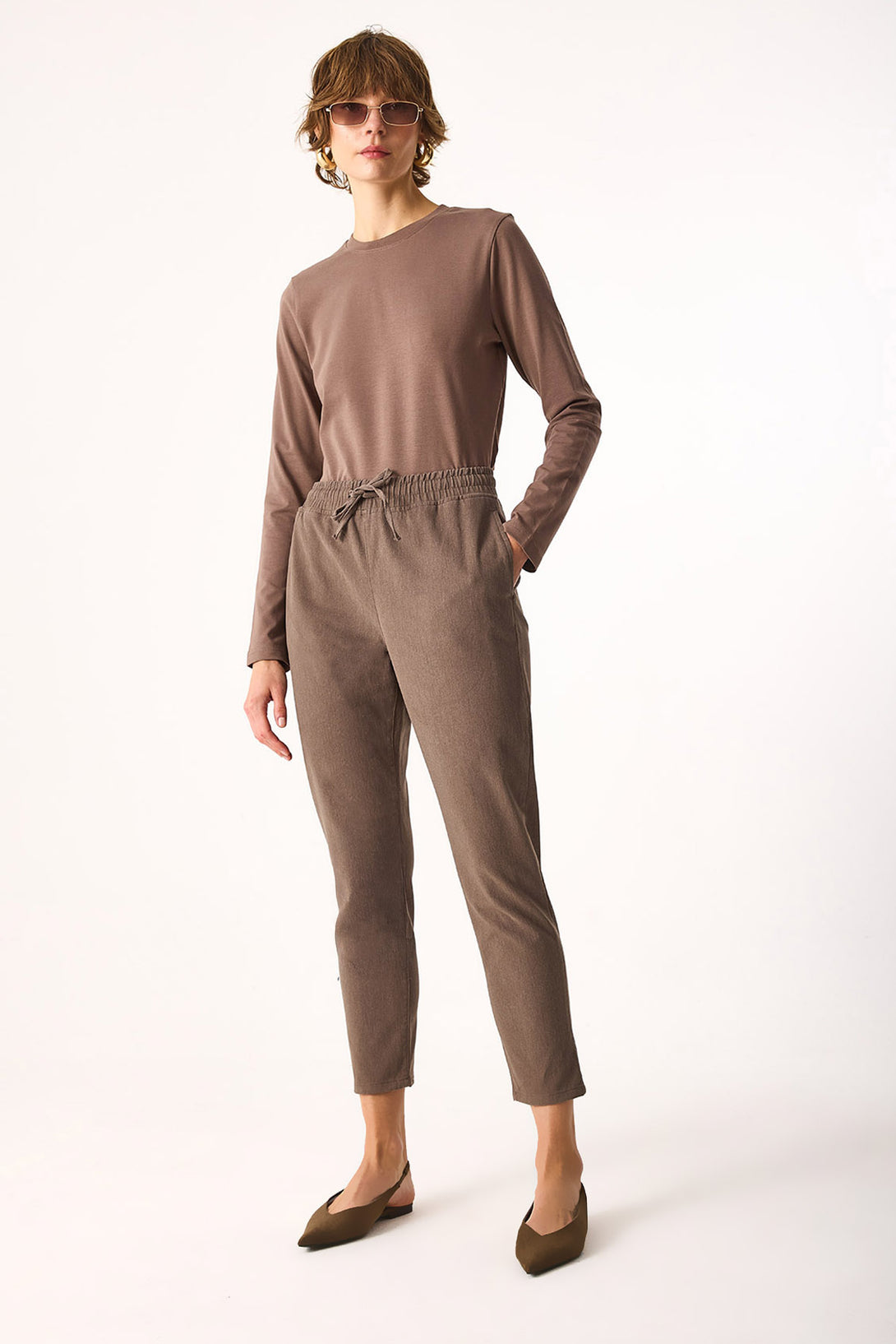 Alian Beli Lastikli Formal Yumuşak Dokulu Pantolon-VİZON
