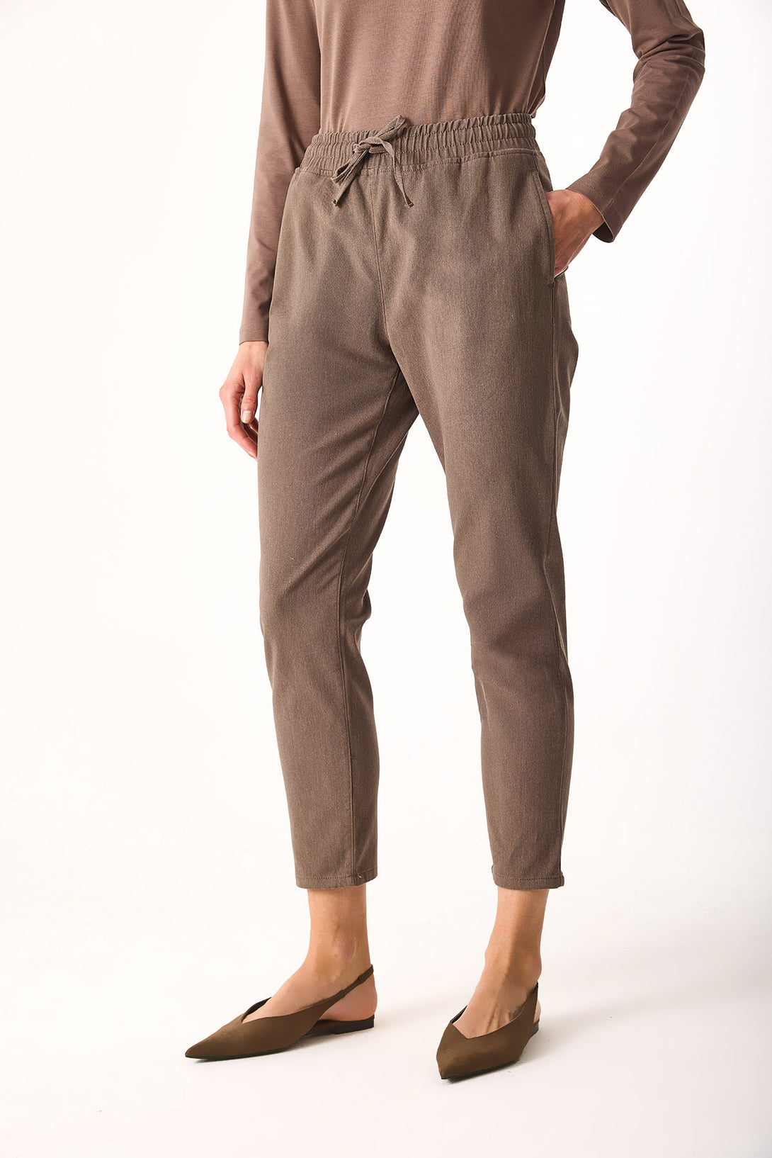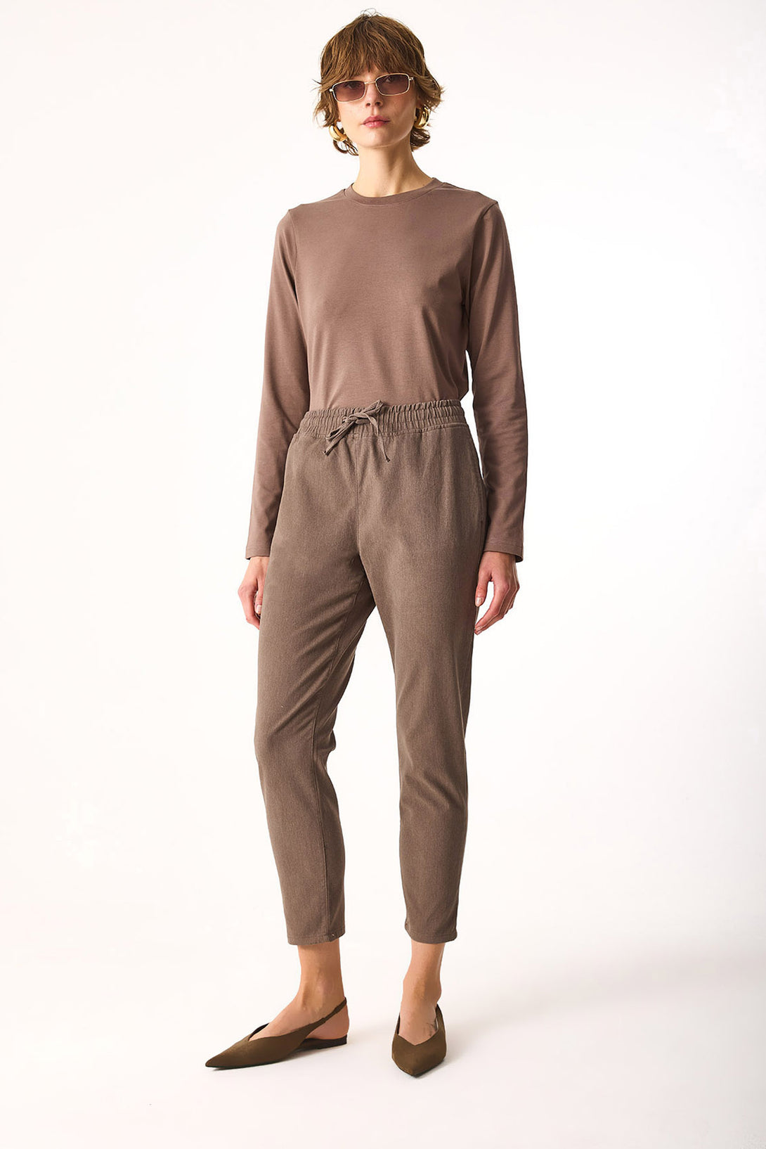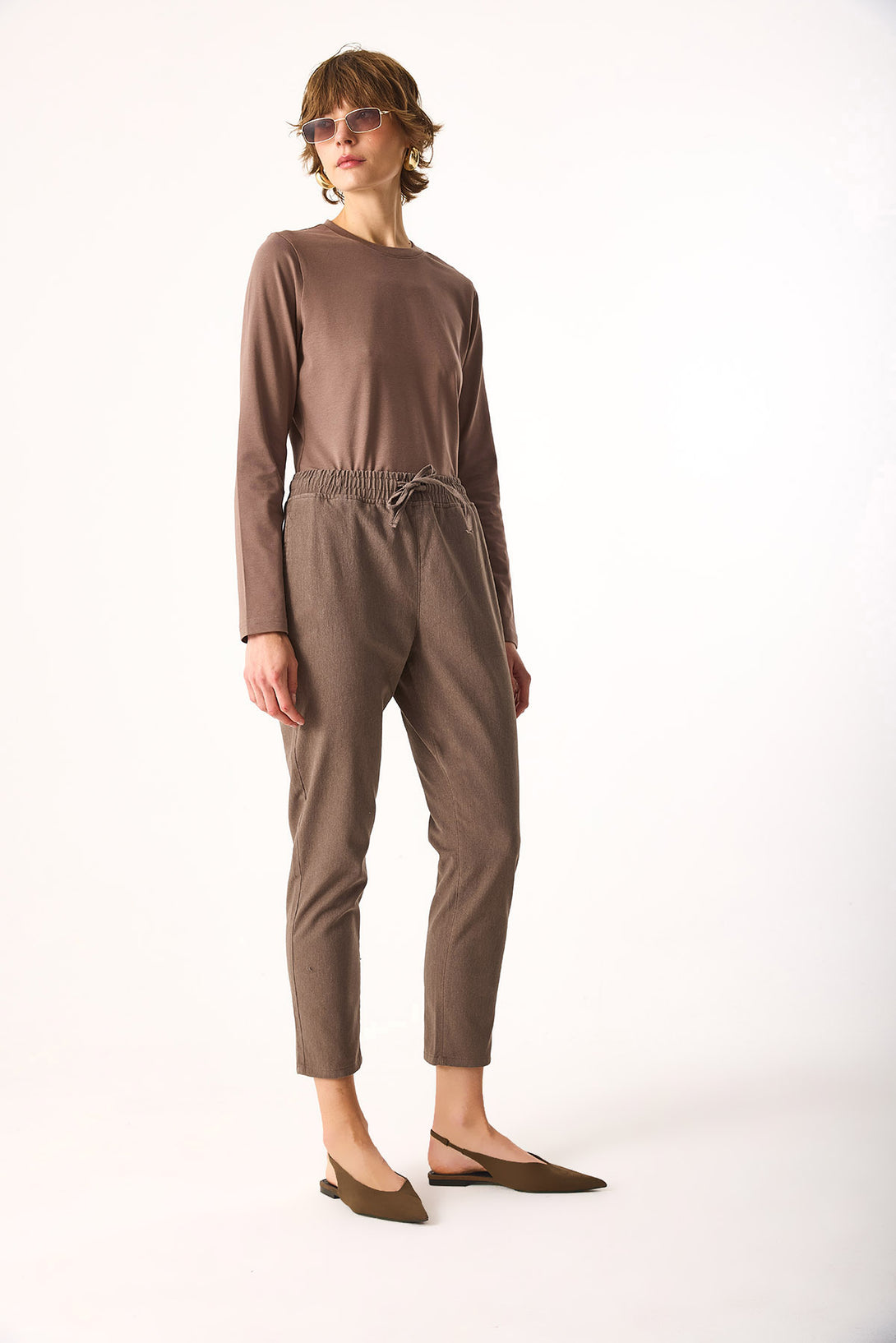 Alian Beli Lastikli Formal Yumuşak Dokulu Pantolon-VİZON