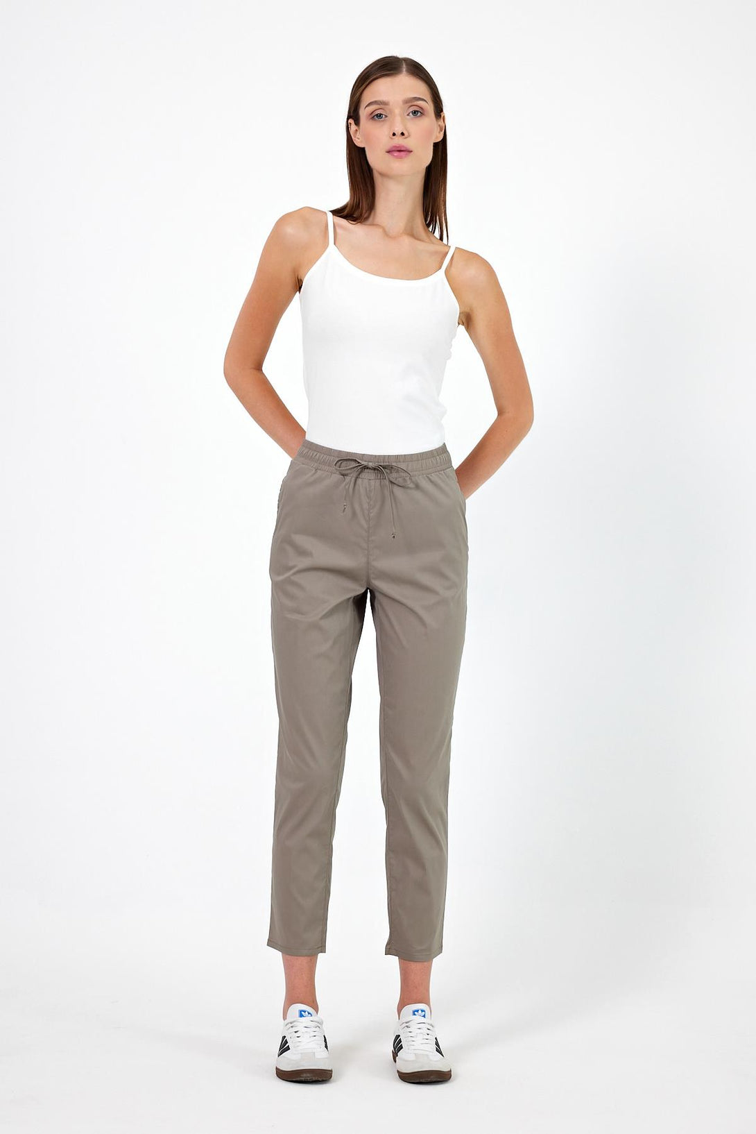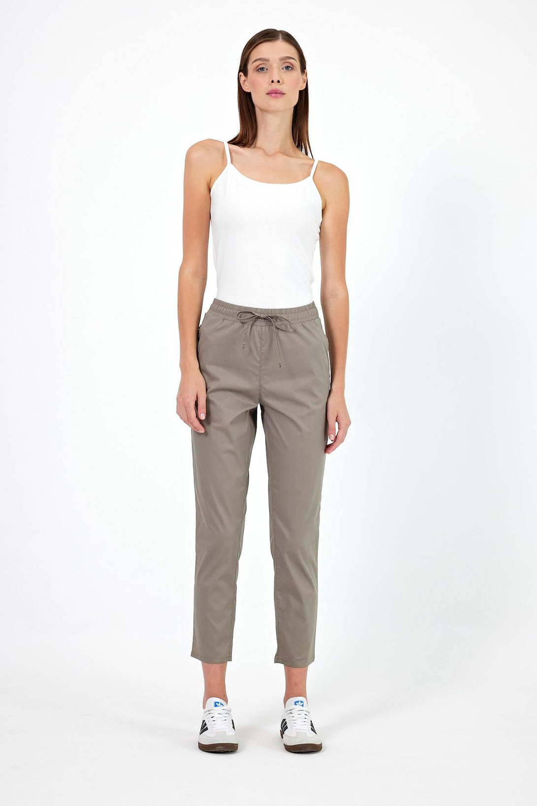 Kadın Alian Haki Beli Lastikli Gabardin Pantolon