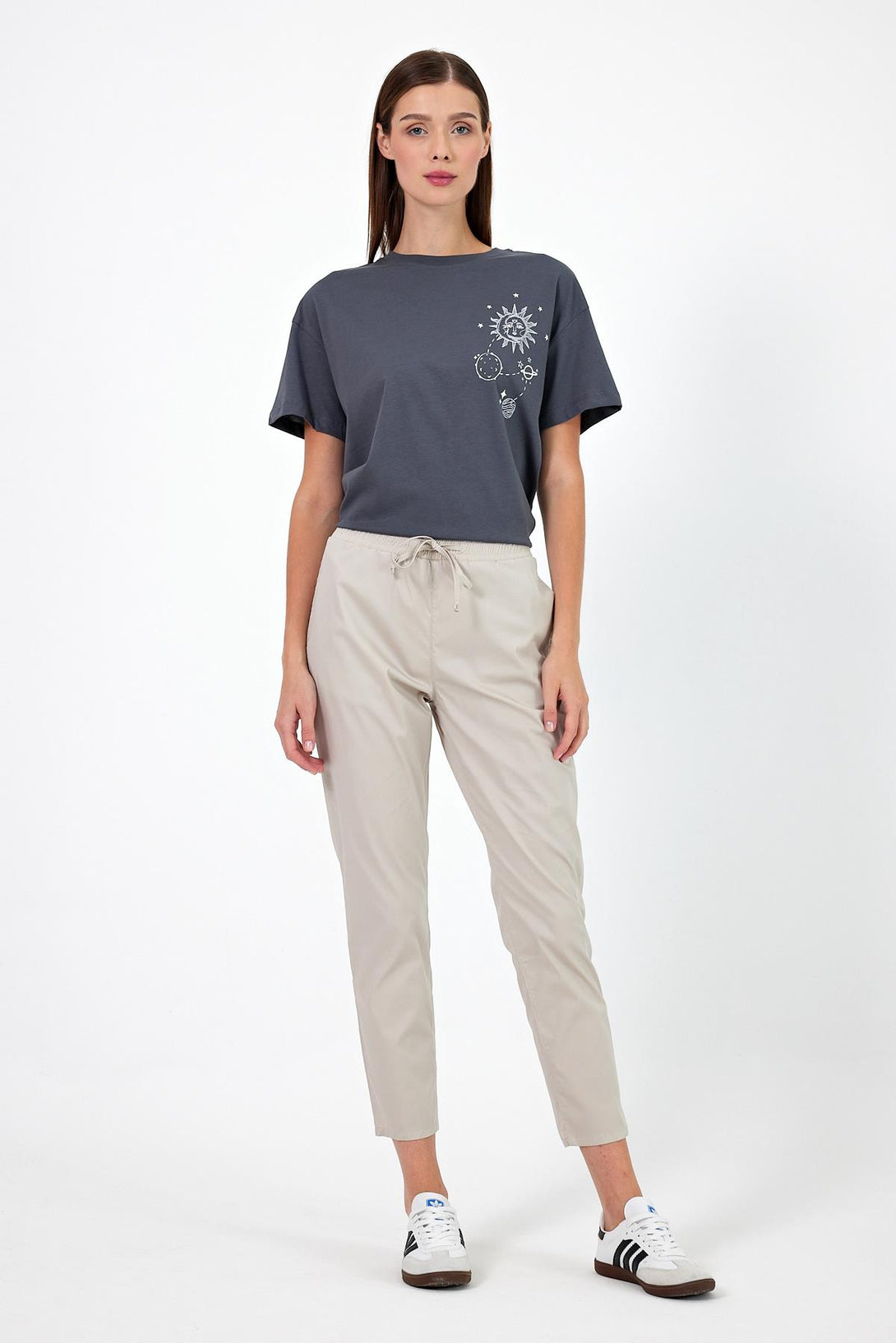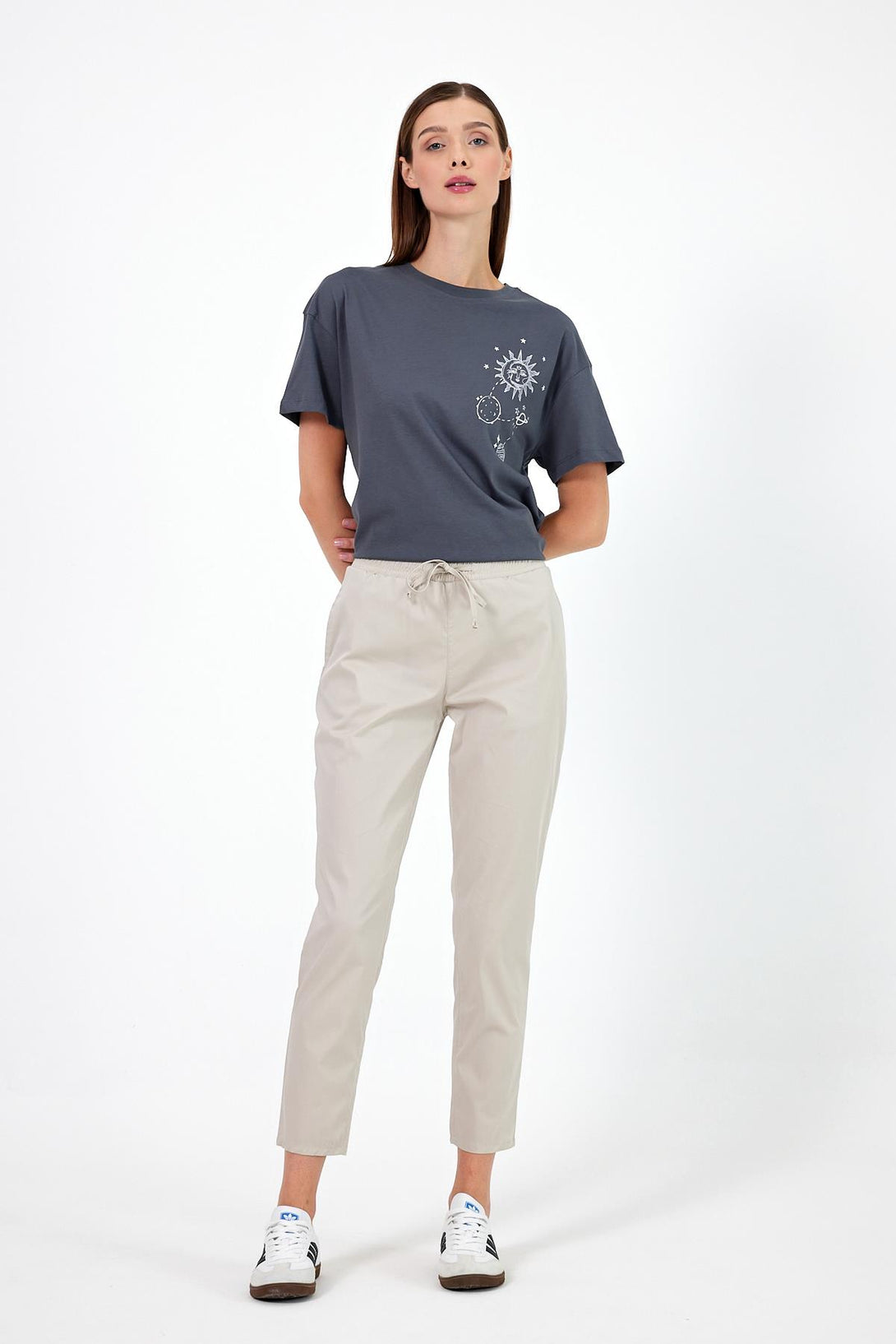 Şık ve rahat lastikli bel tasarımı.