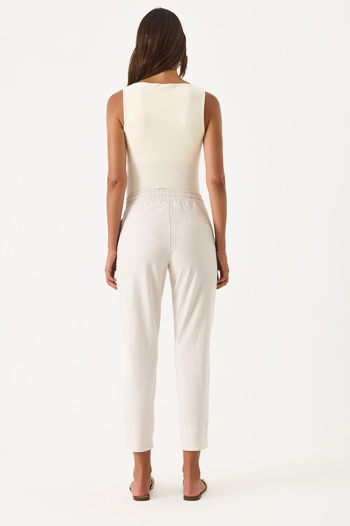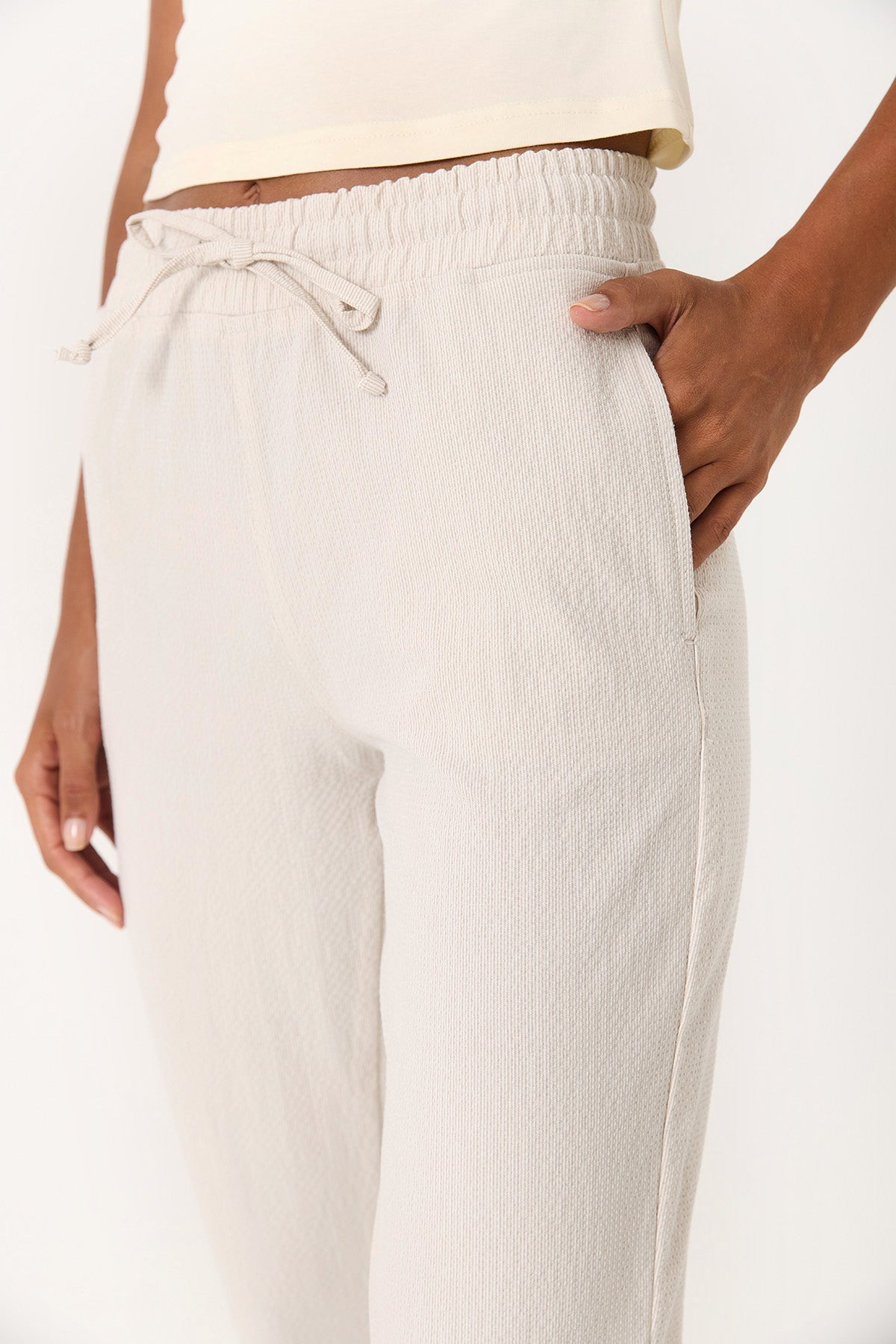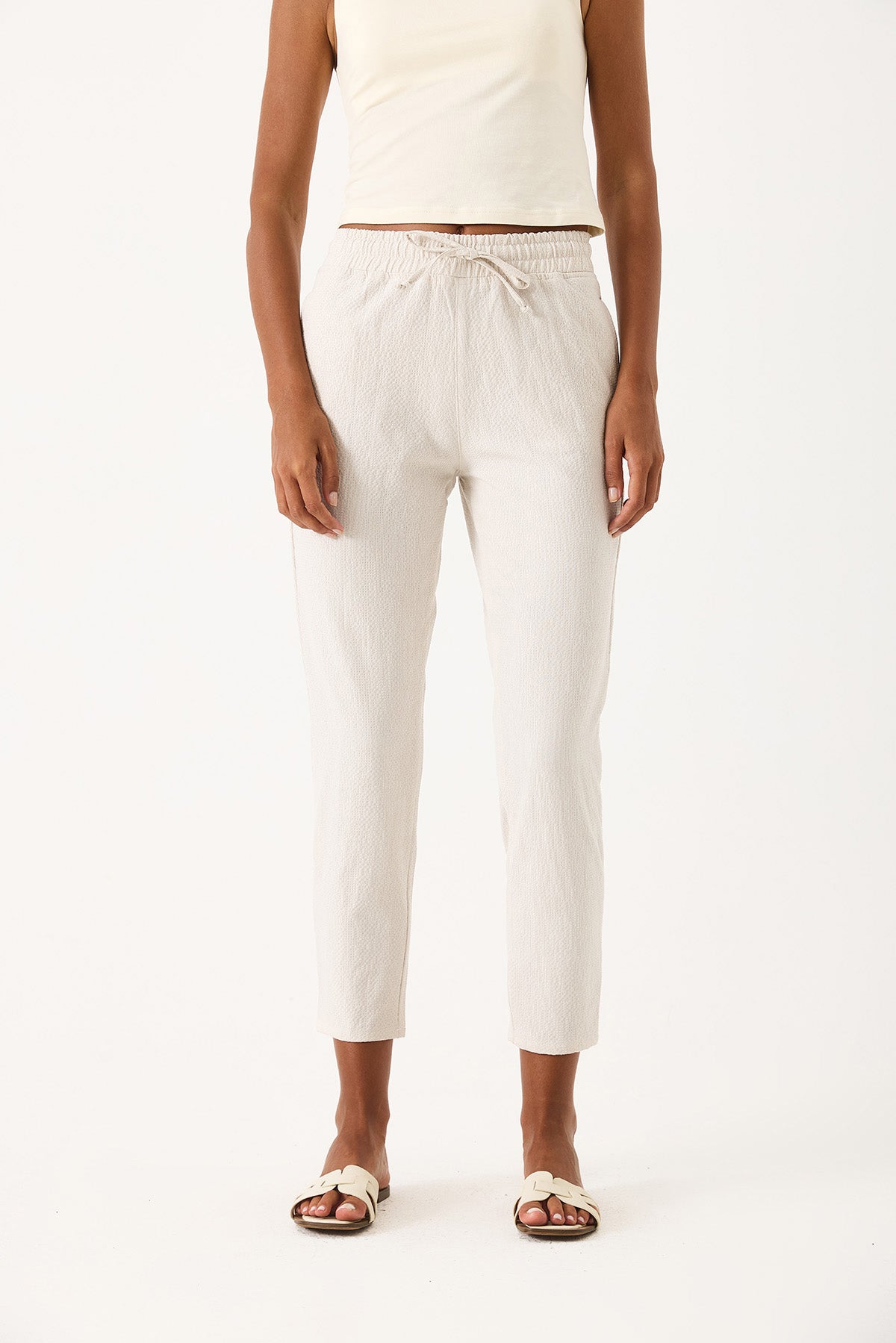 Kadın Alian Beli Lastikli Gofre Çizgili Beach Pantolon - Taş Çizgili