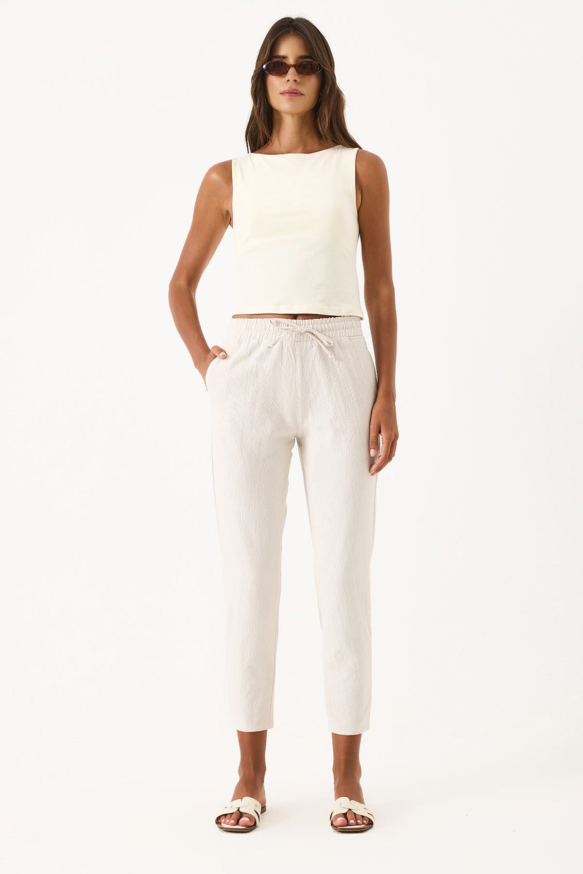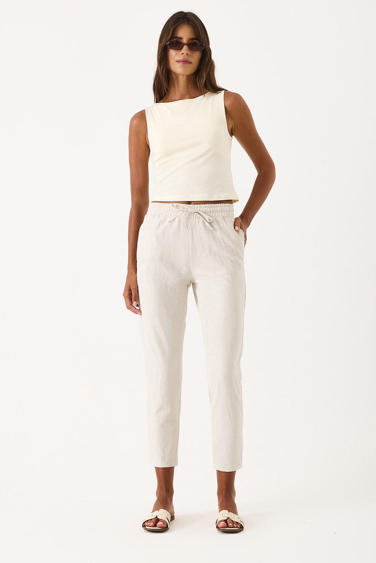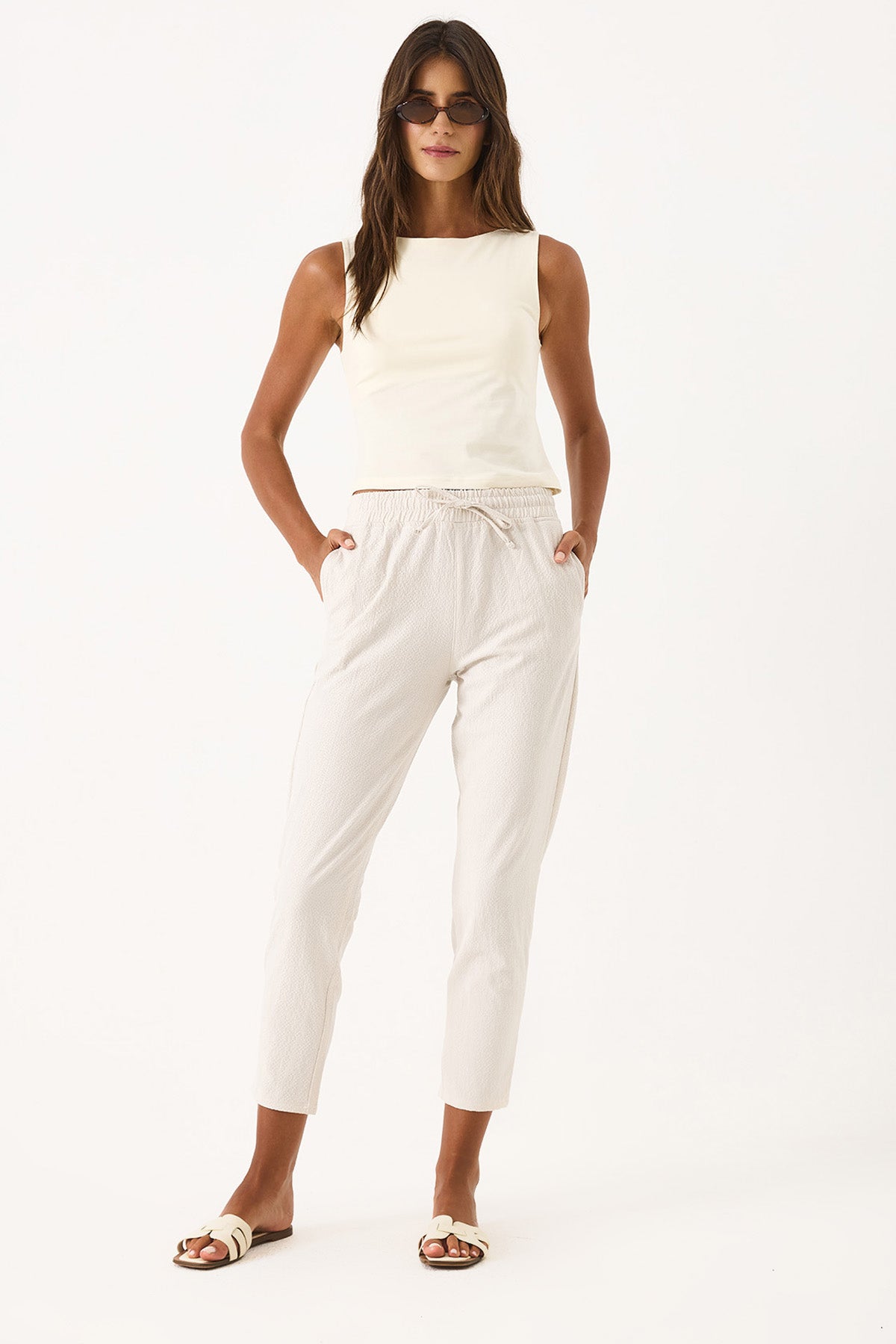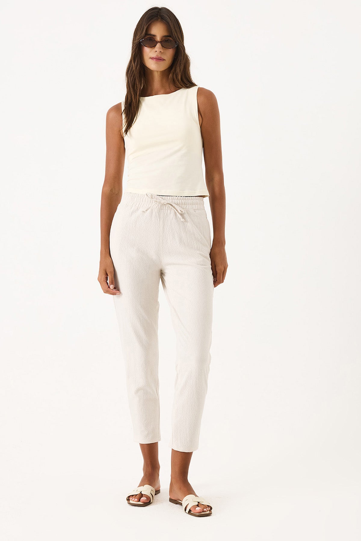 Kadın Alian Beli Lastikli Gofre Çizgili Beach Pantolon - Taş Çizgili