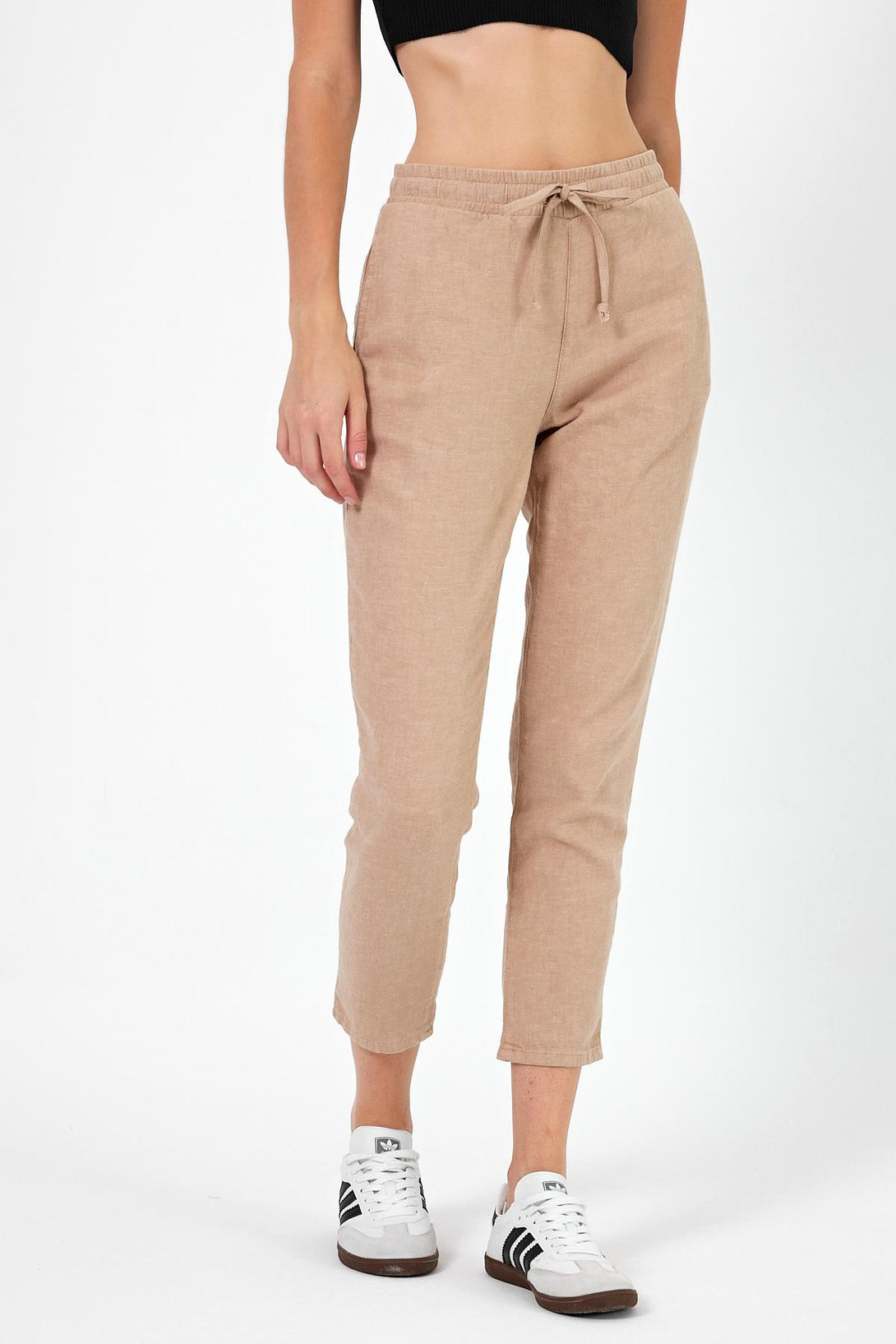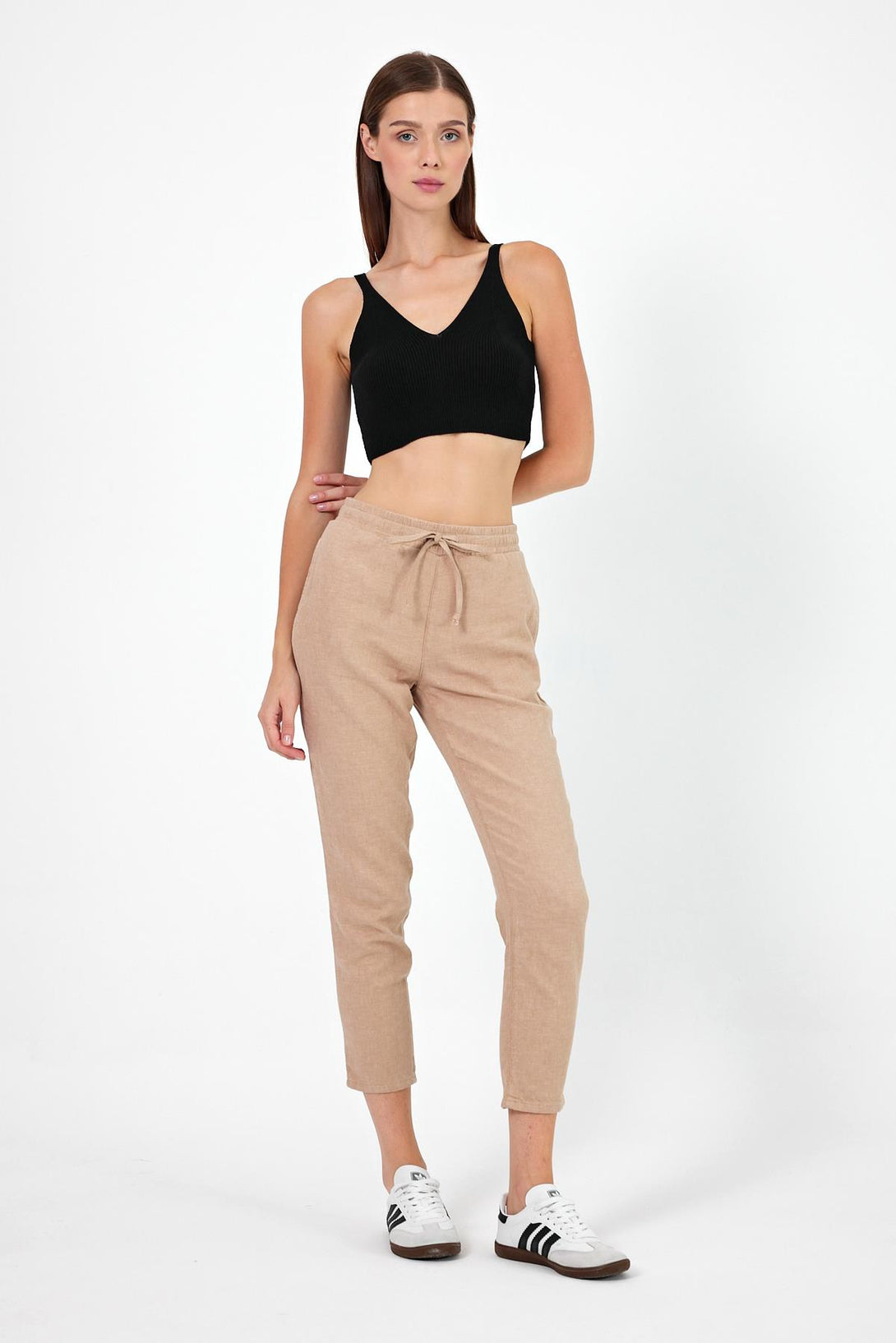 Beli lastikli, keten beach pantolon