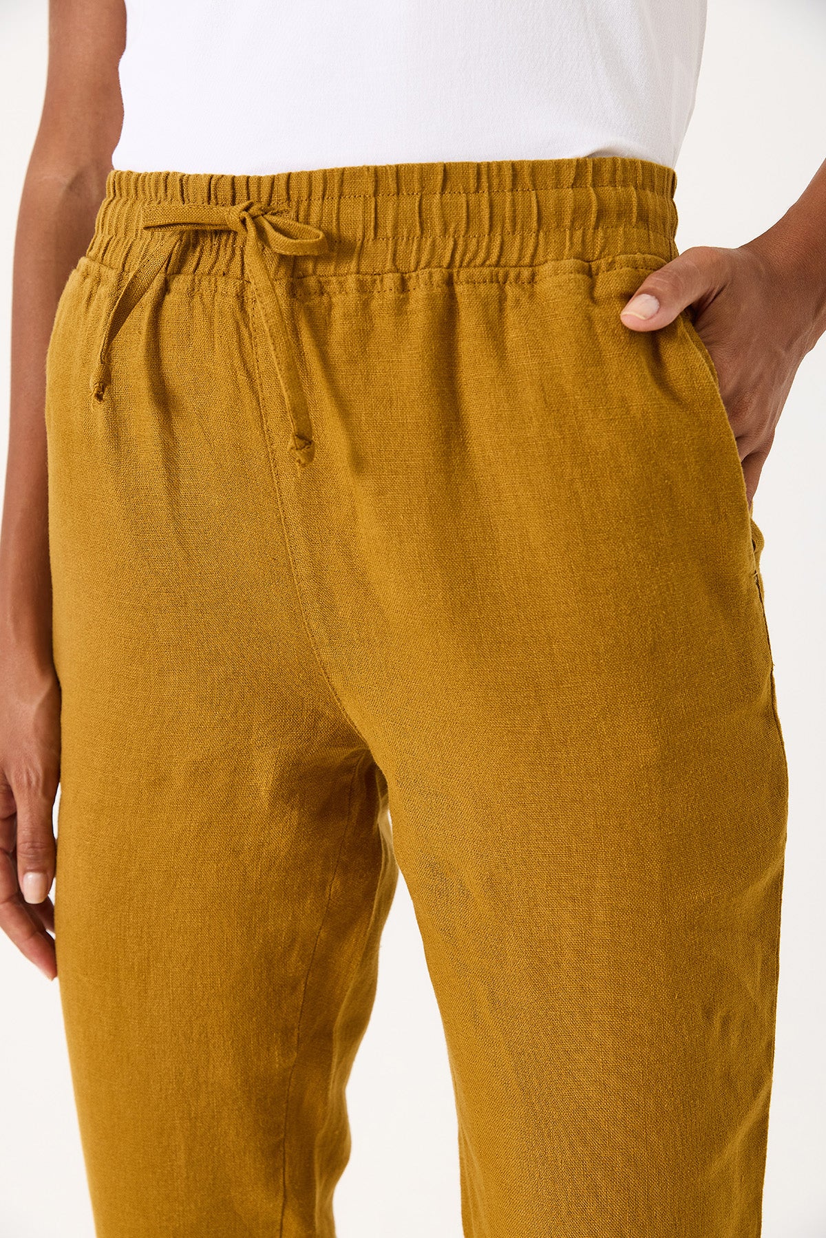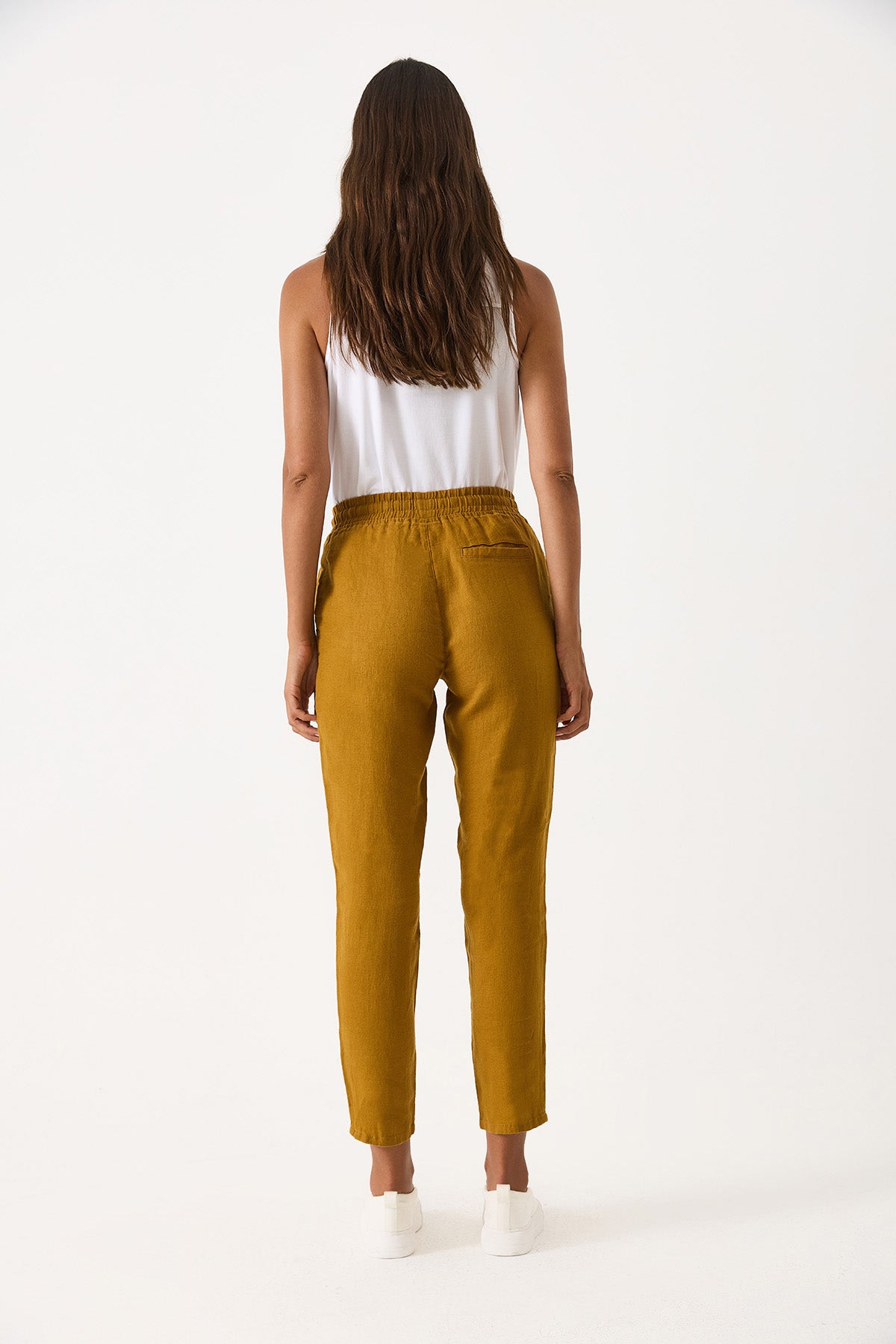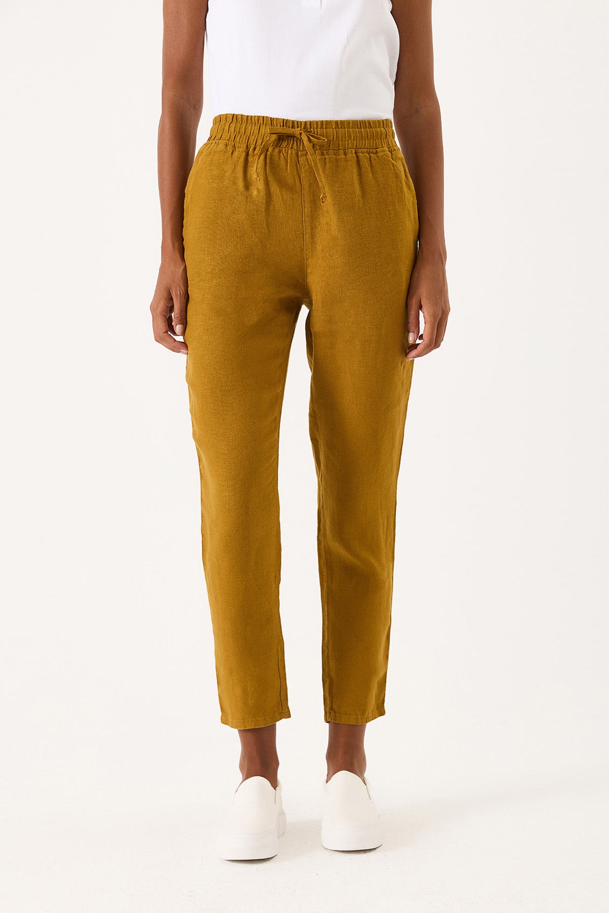 Kadın Alian Beli Lastikli %100 Keten Beach Pantolon - Bakır