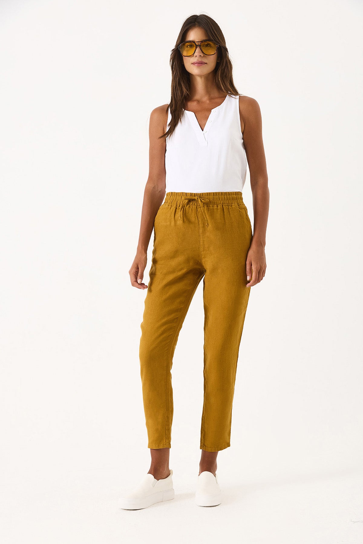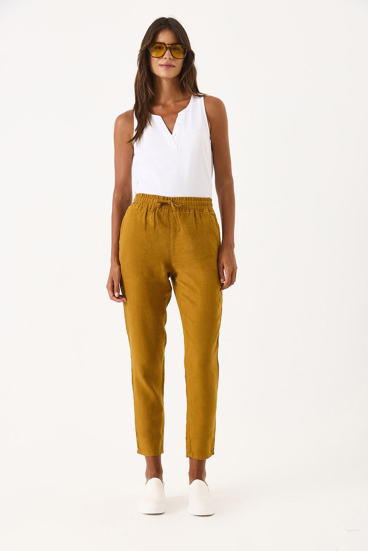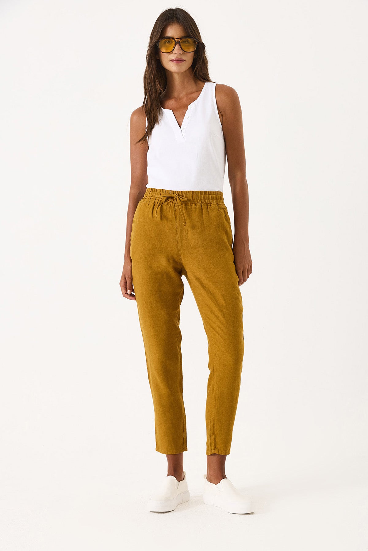 Kadın Alian Beli Lastikli %100 Keten Beach Pantolon - Bakır