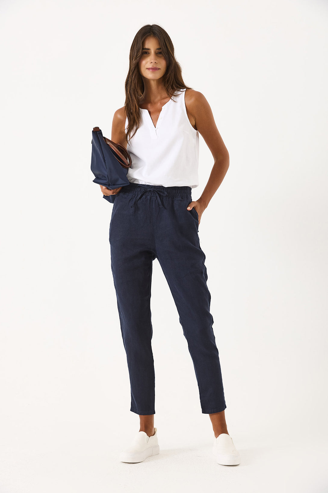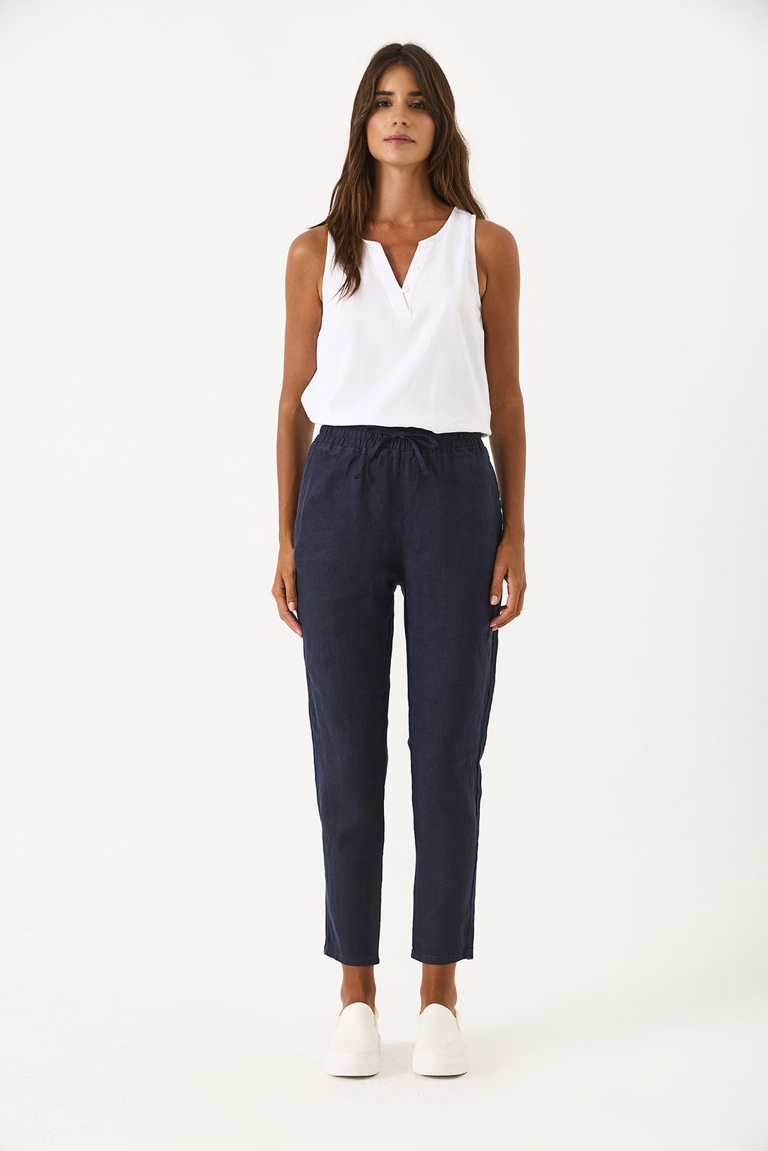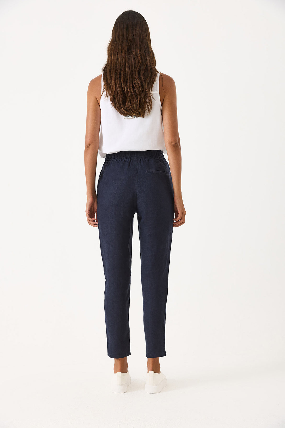 Alian Beli Lastikli Keten Beach Pantolon - LACİVERT