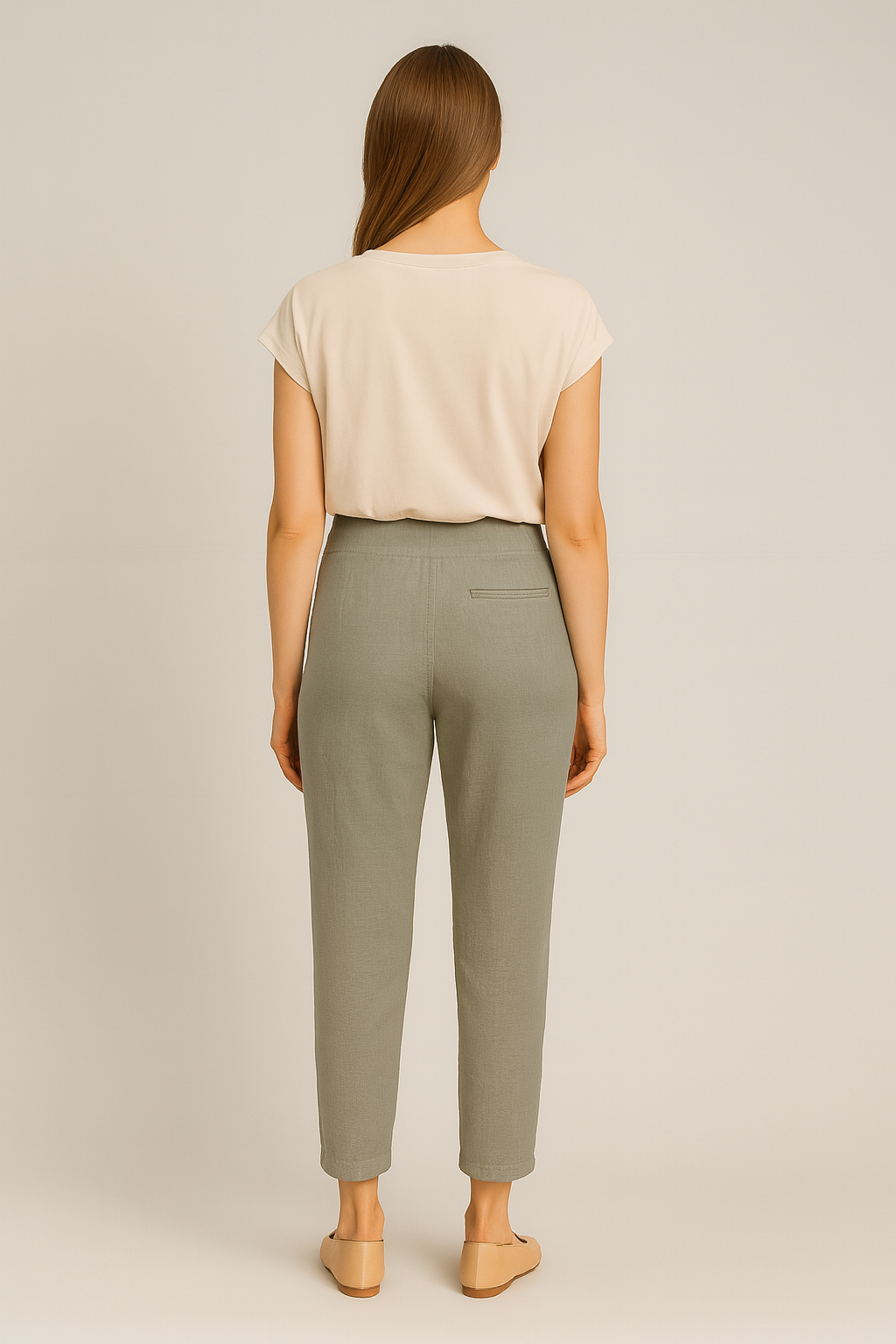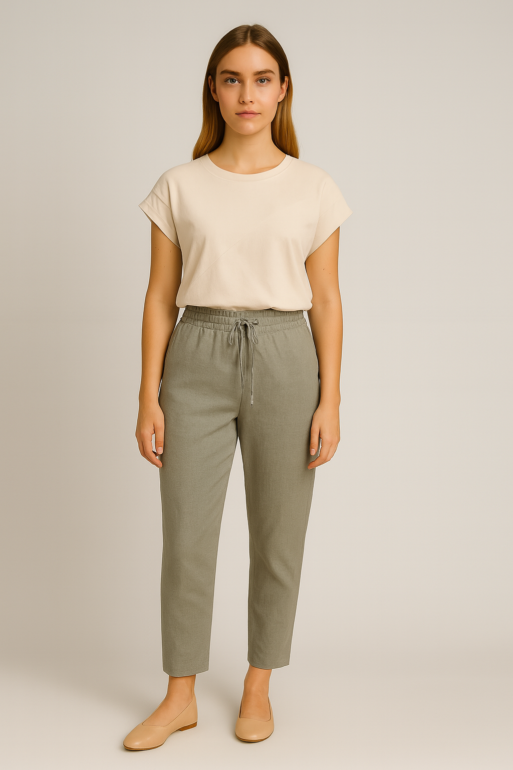 Alian Beli Lastikli %100 Keten Beach Pantolon - NİL YEŞİLİ