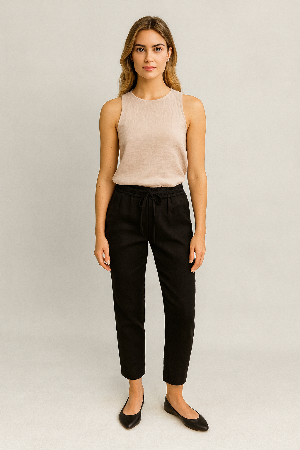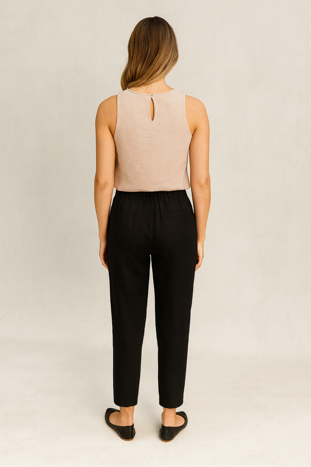 Alian Beli Lastikli %100 Keten Beach Pantolon - SİYAH