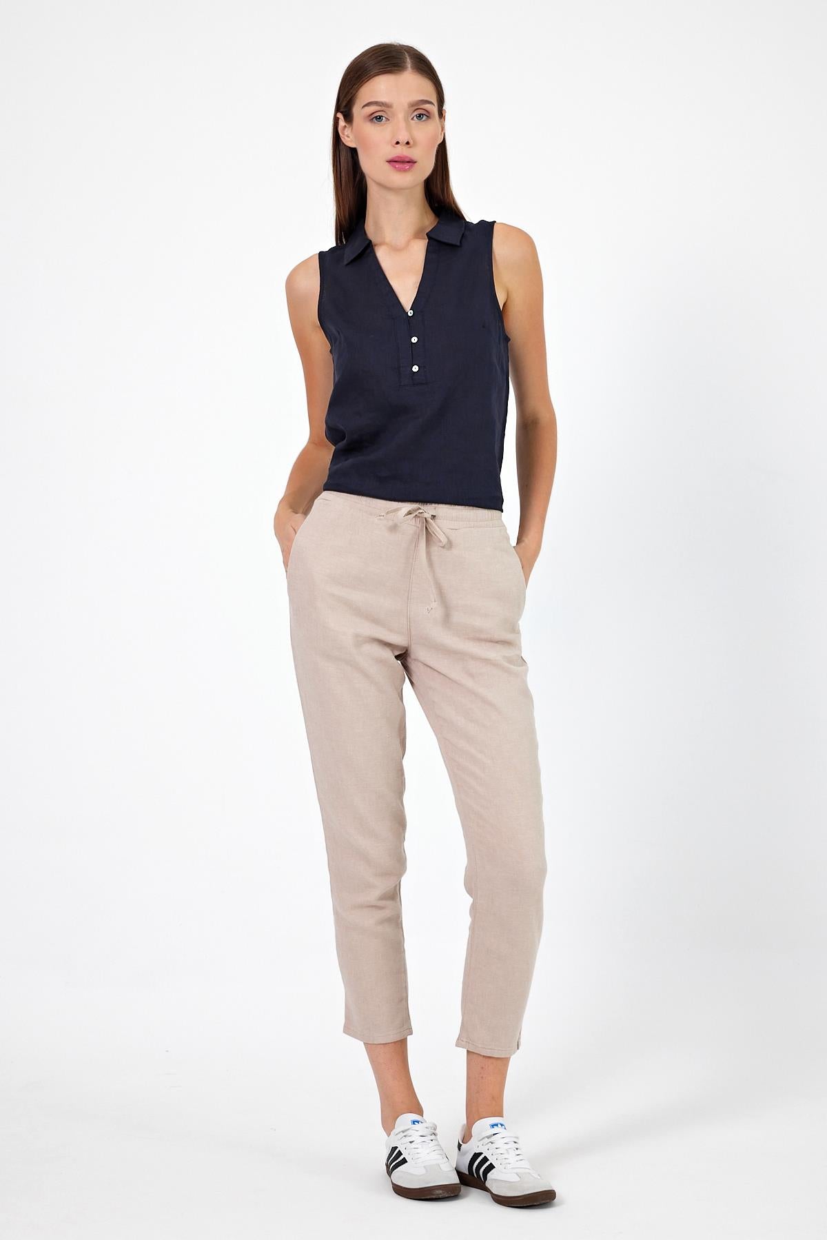 Kadın Alian Beli Lastikli Keten Beach Pantolon - Taş