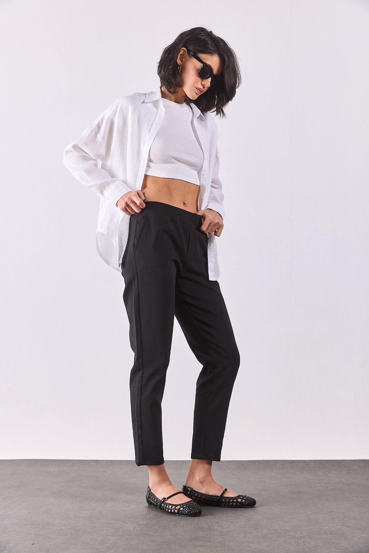 Kadın Alian Beli Lastikli Smart Pantolon - Siyah