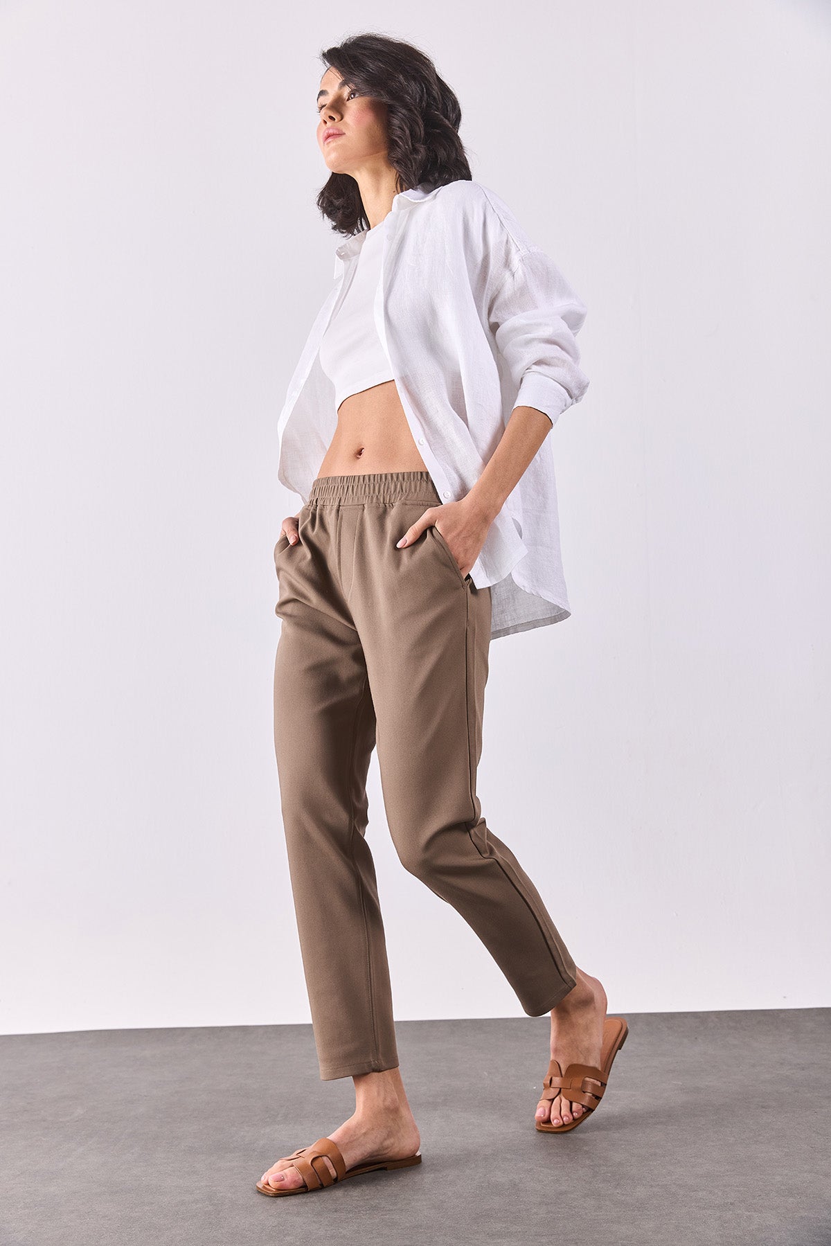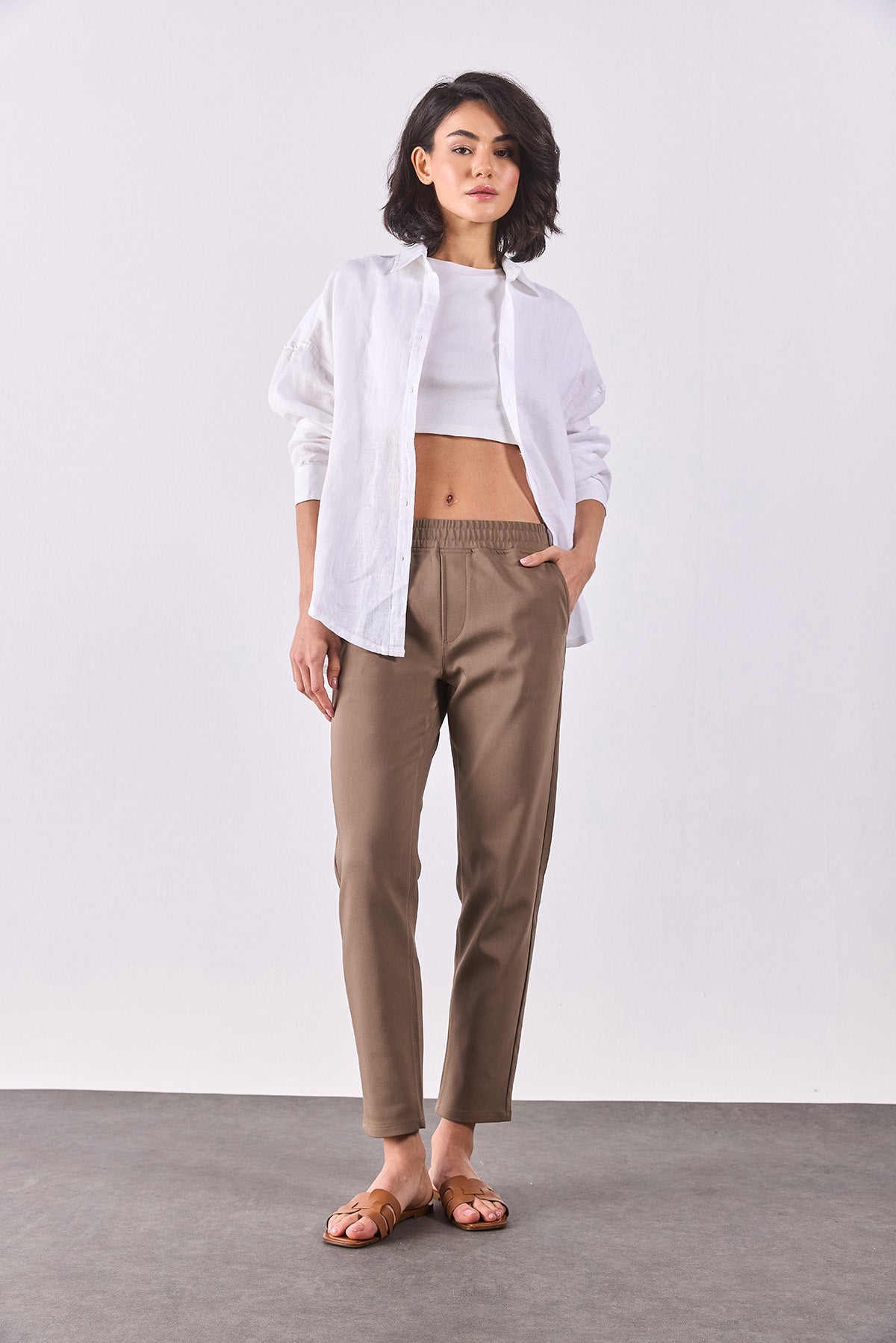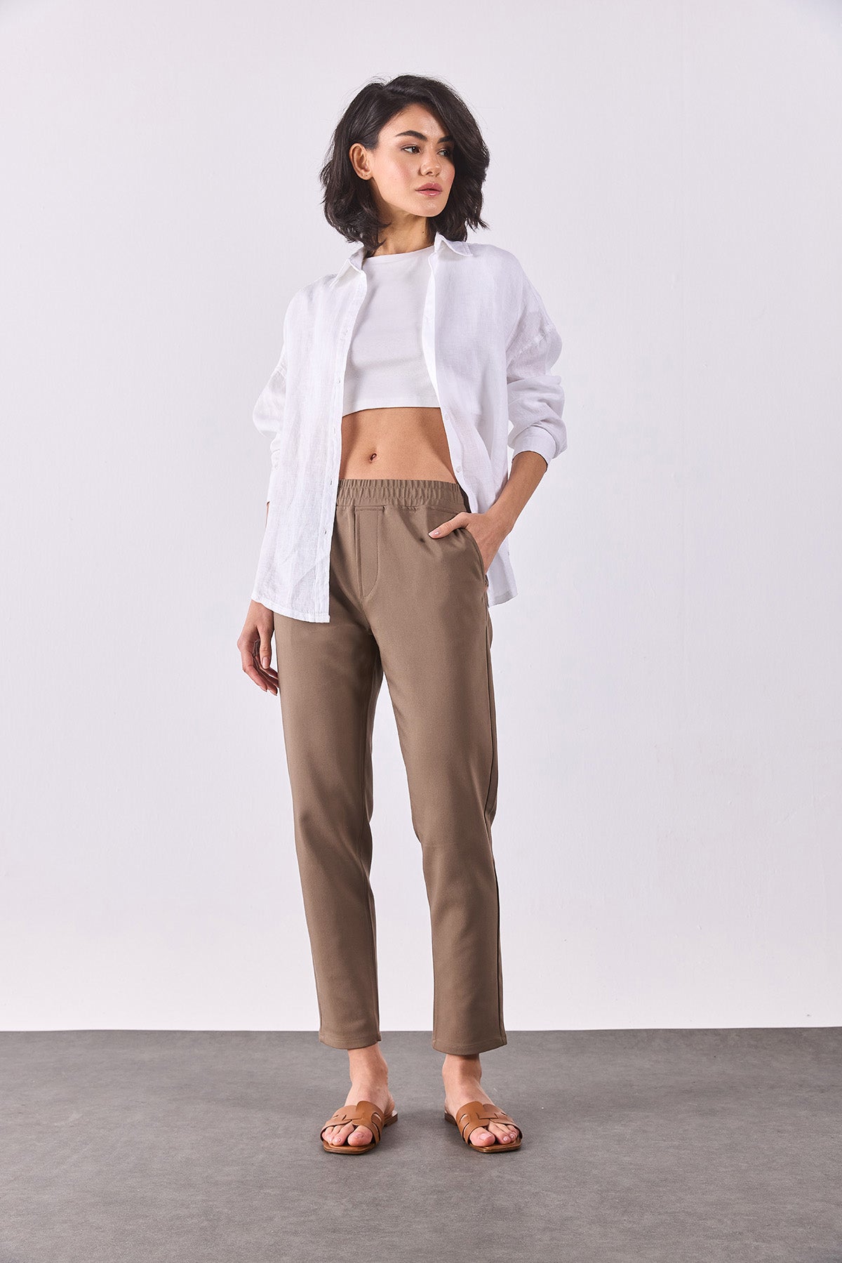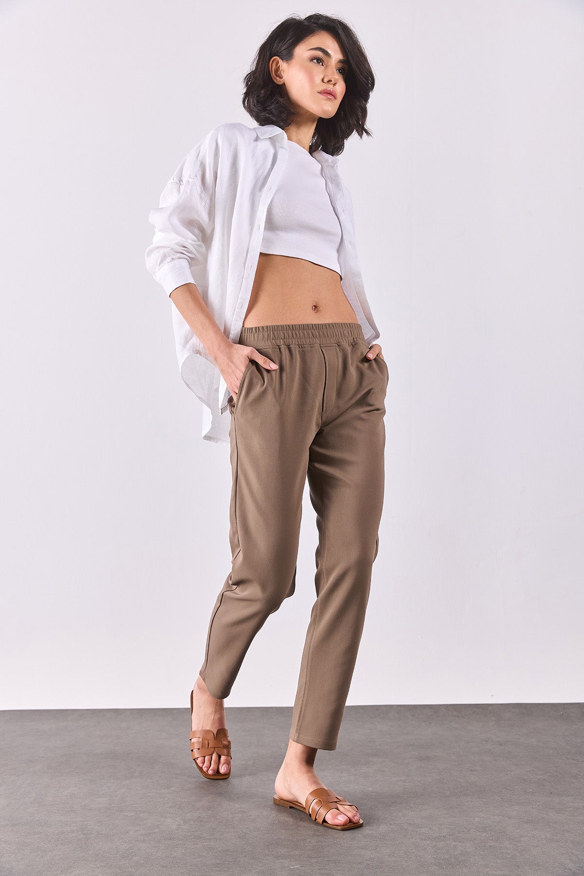 Kadın Alian Beli Lastikli Smart Pantolon - Taş