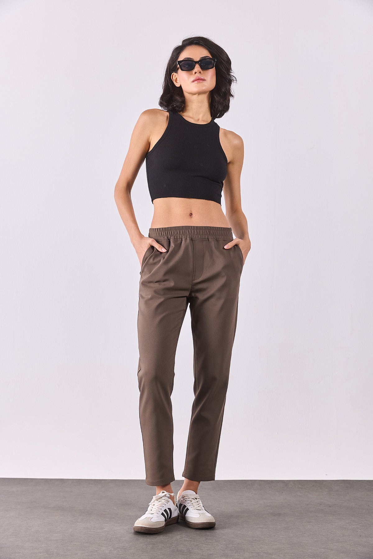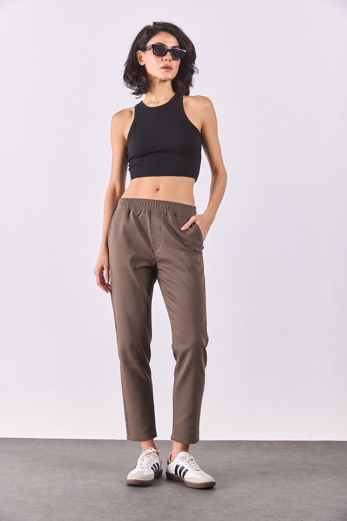 Kadın Alian Beli Lastikli Smart Pantolon - Vizon