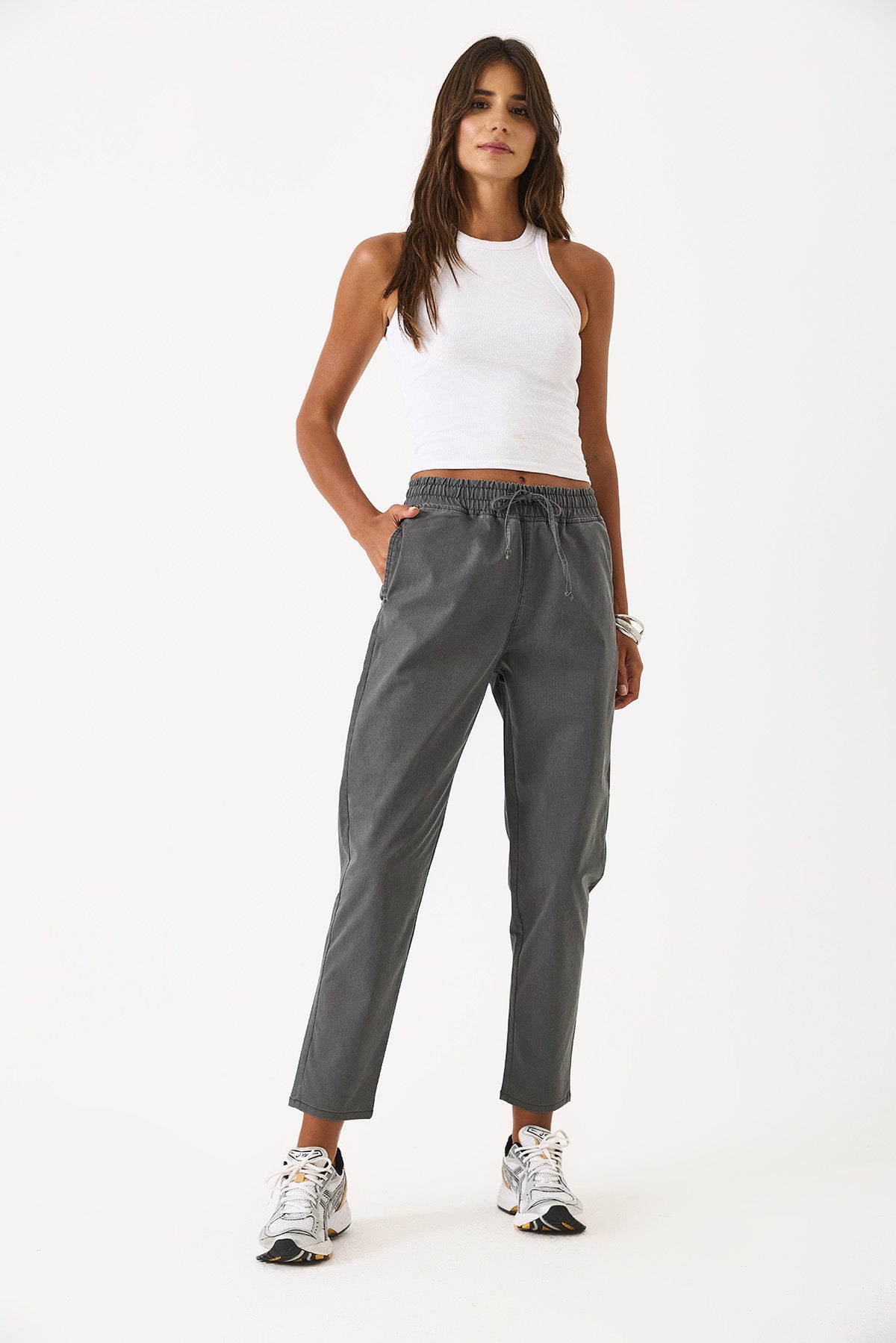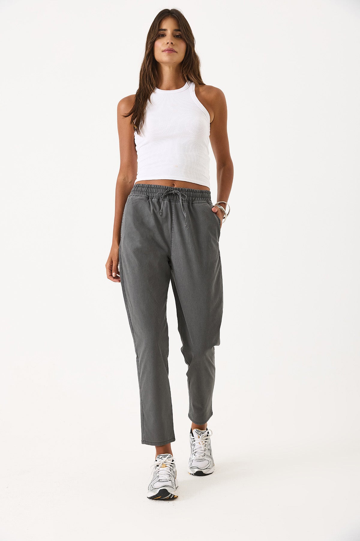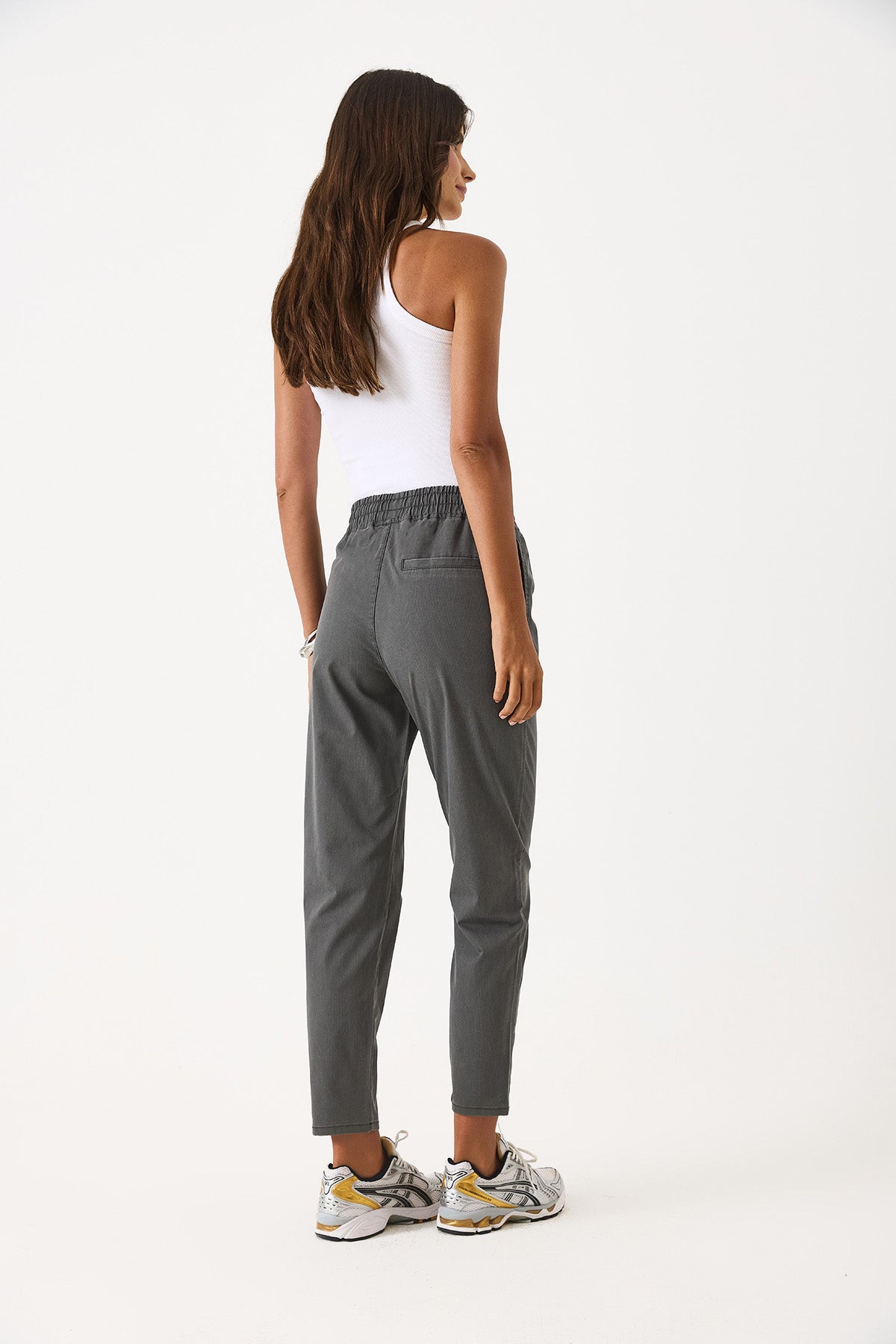 Kadın Alian Beli Lastikli Sülfür Çizgili Pantolon - Antrasit Çizgili