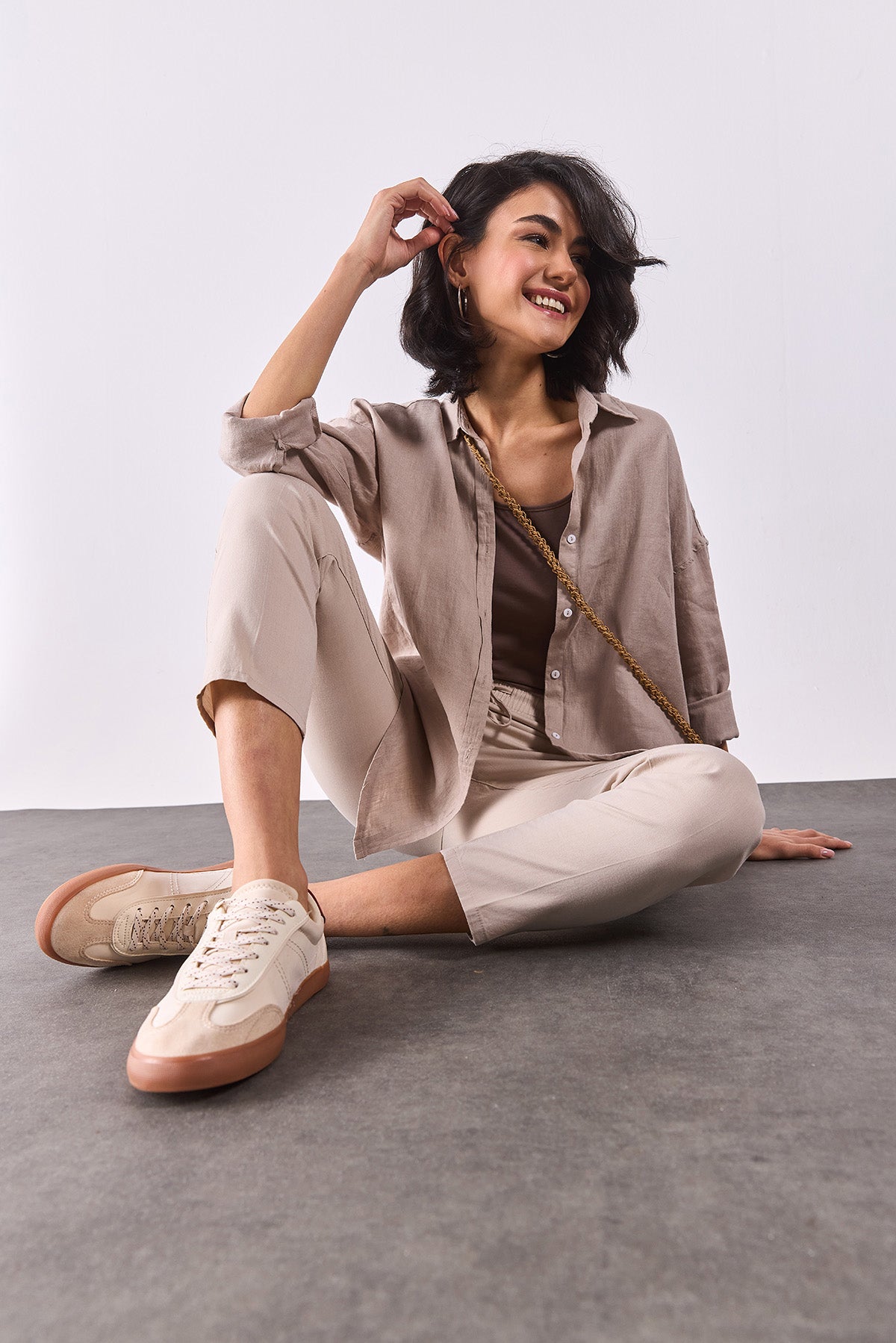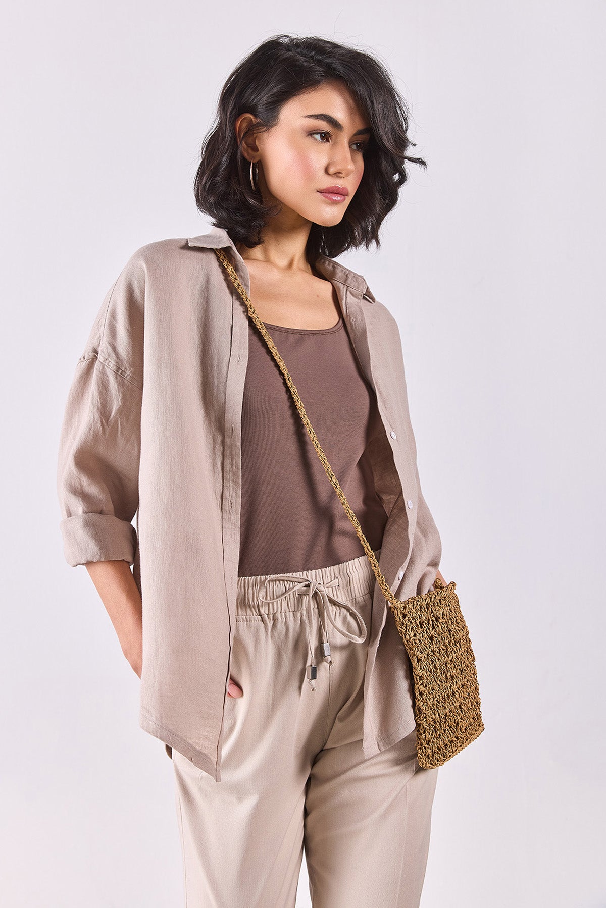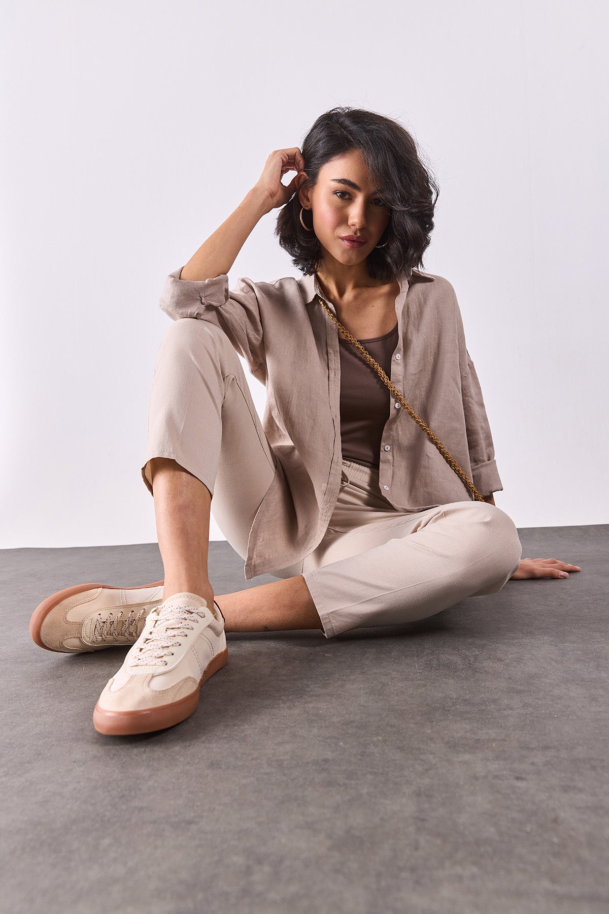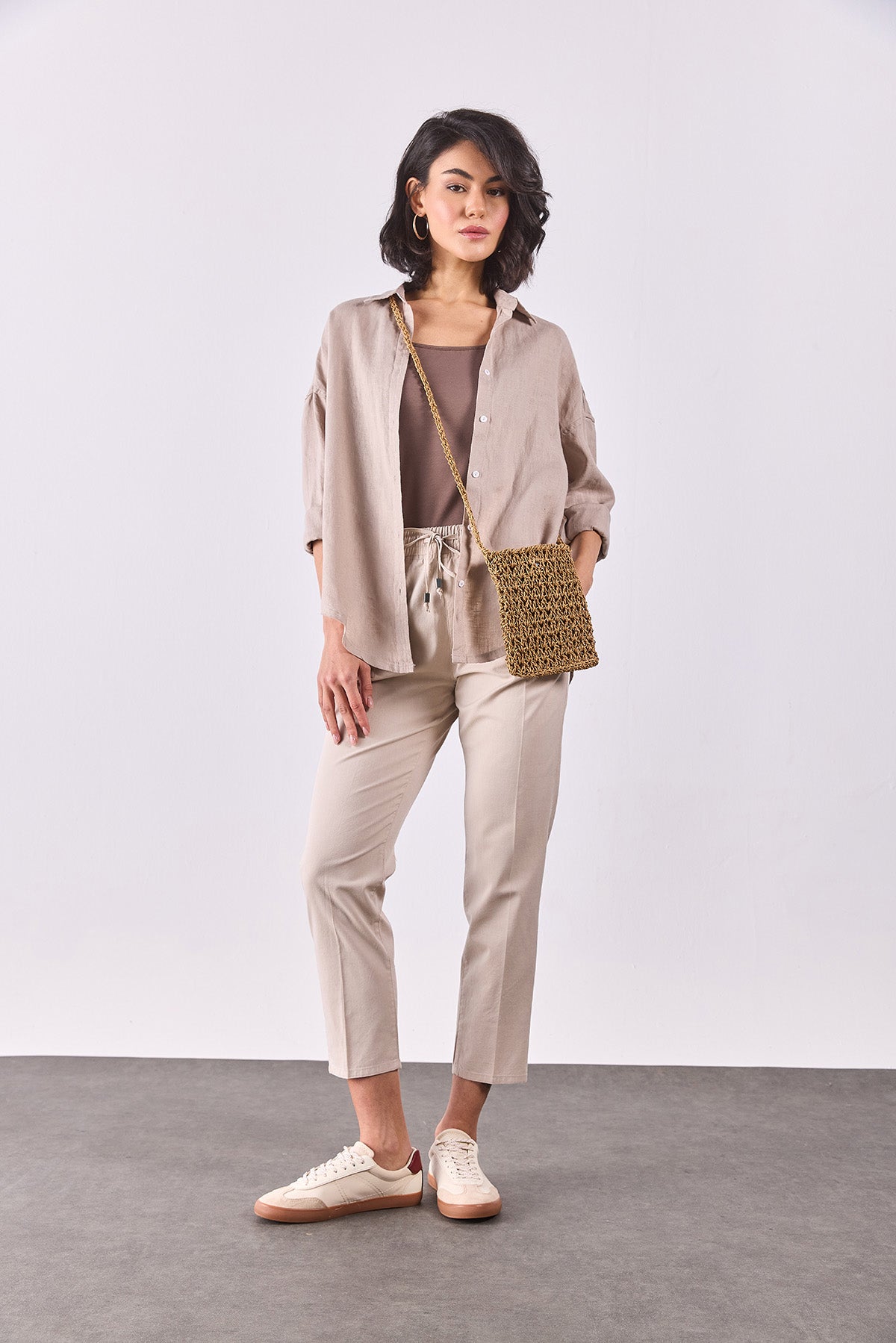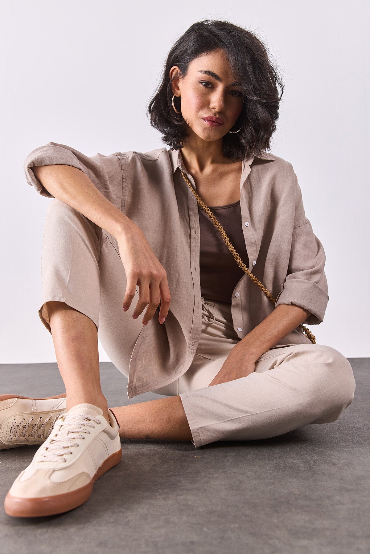 Kadın Alina Oversize Gömlek %100 Keten - Naturel