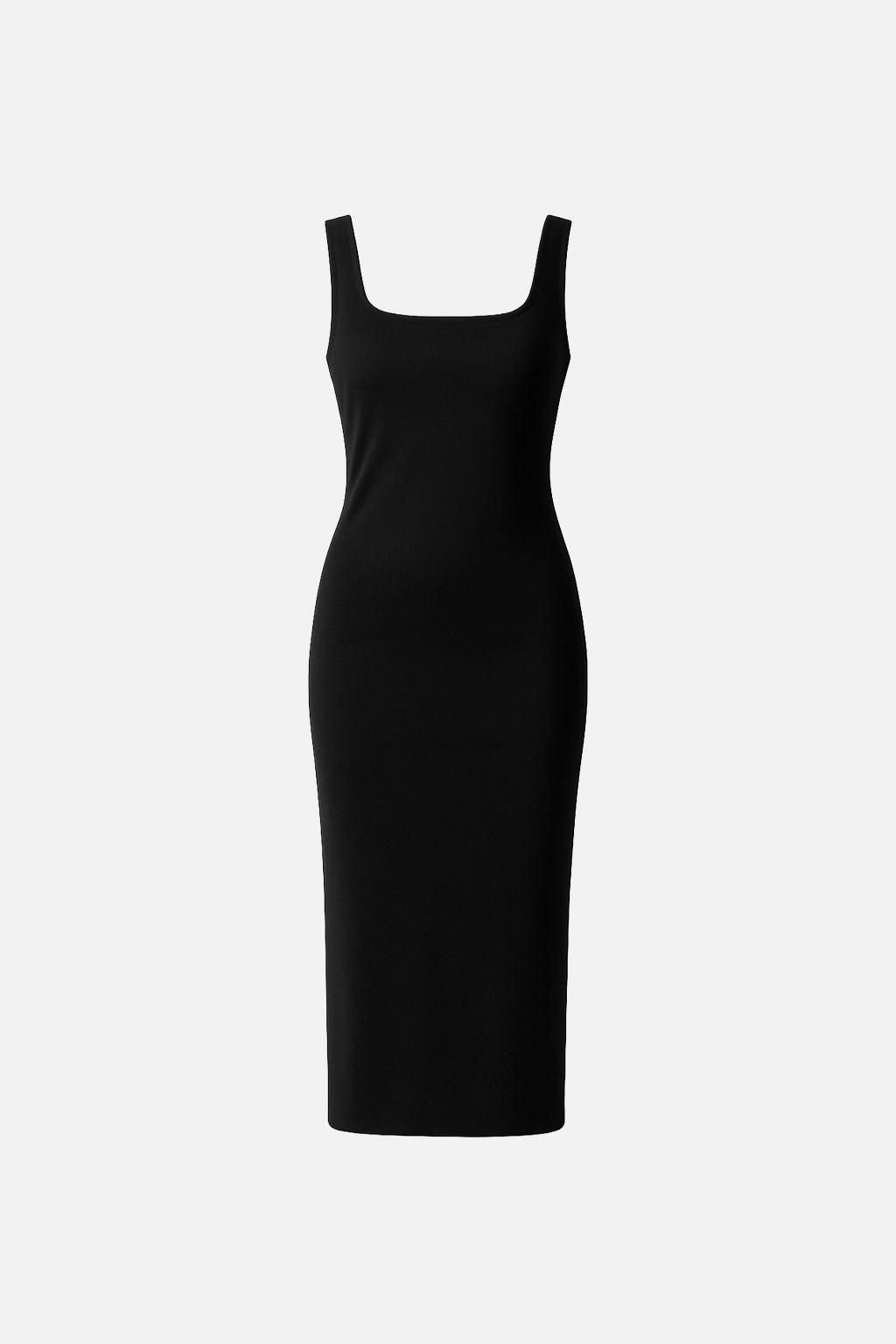 Kadın Amy Kare Yaka Slim Fit Örme Elbise (CUPRO) - Siyah