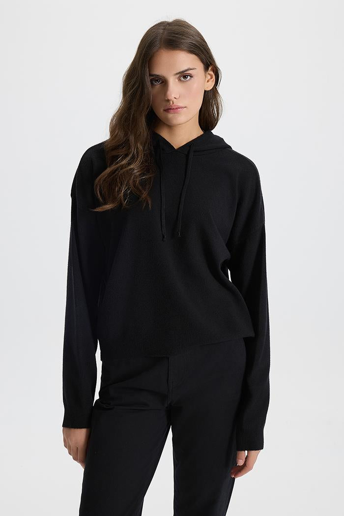Kadın Angelica Kapüşonlu Regular Fit Triko Kazak - Siyah