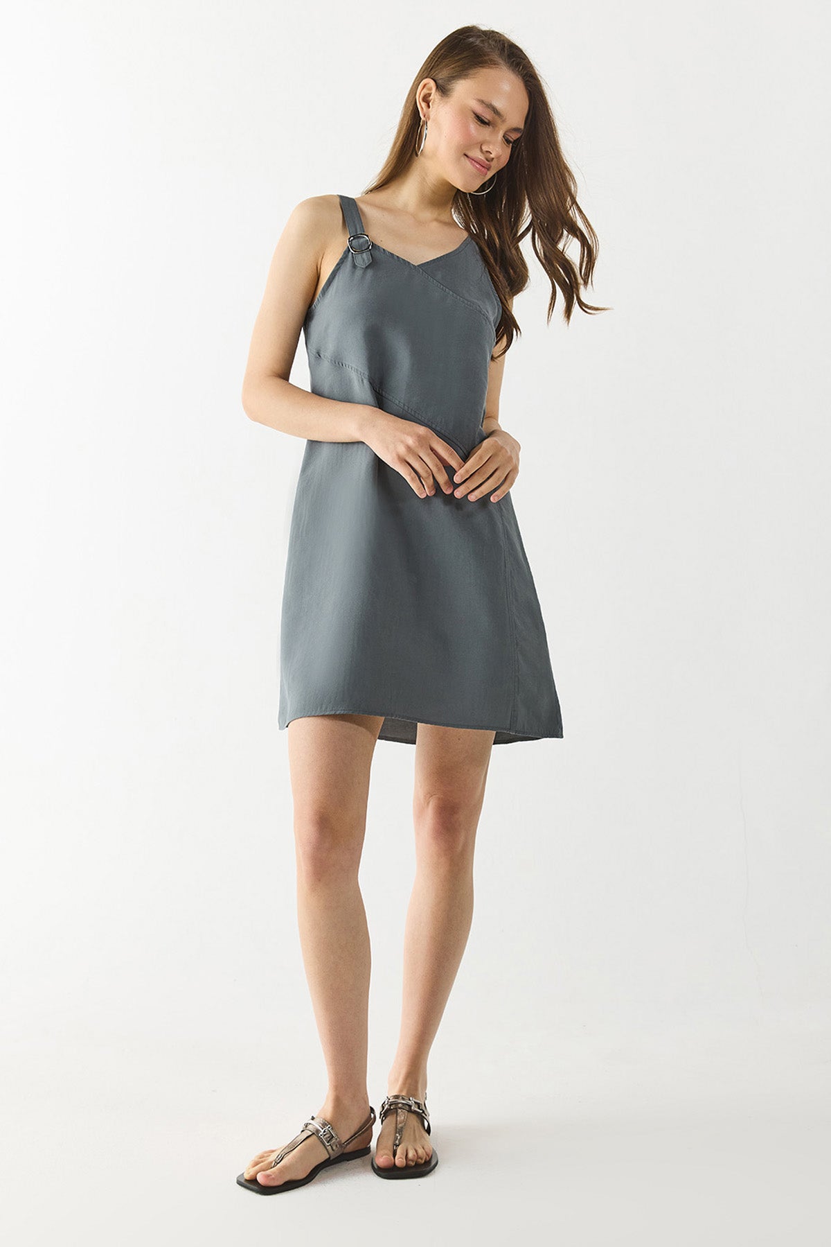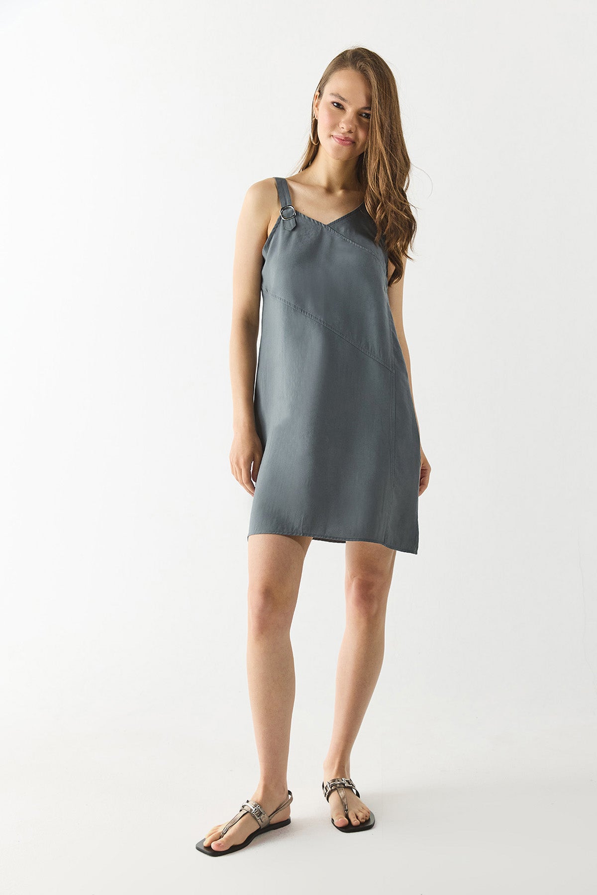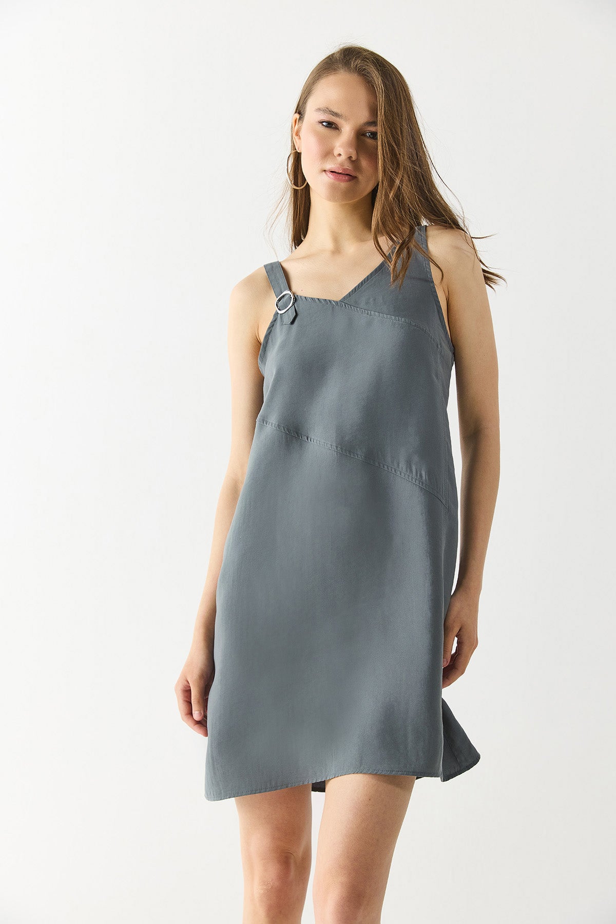 Kadın Angelica Yumuşak Dokulu Regular Fit Elbise (CUPRO) - Antrasit
