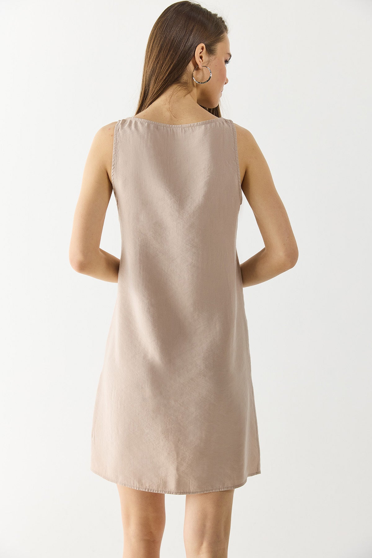 Kadın Angelica Yumuşak Dokulu Regular Fit Elbise (CUPRO) - Taş